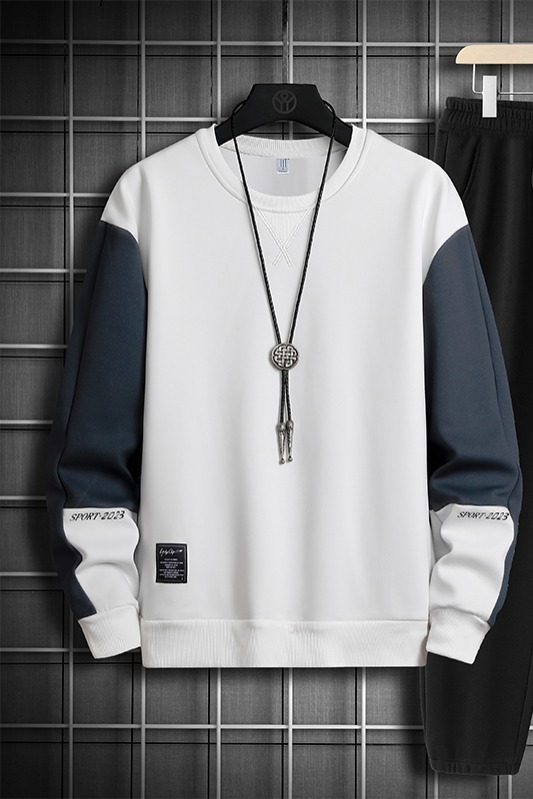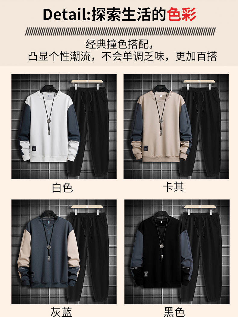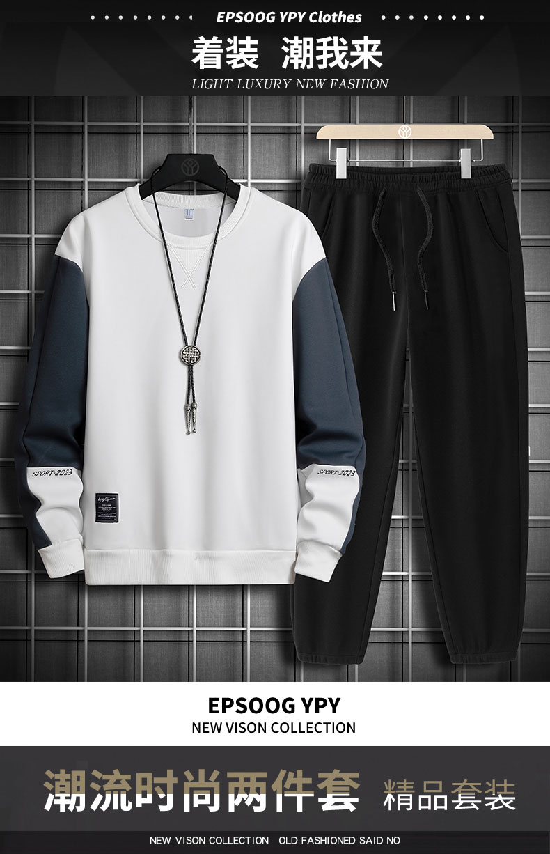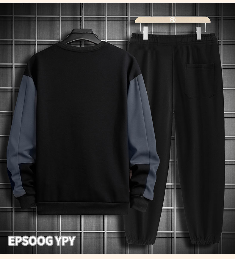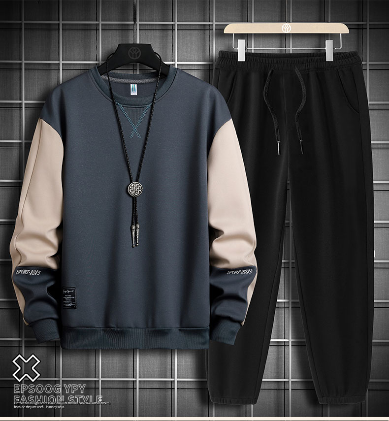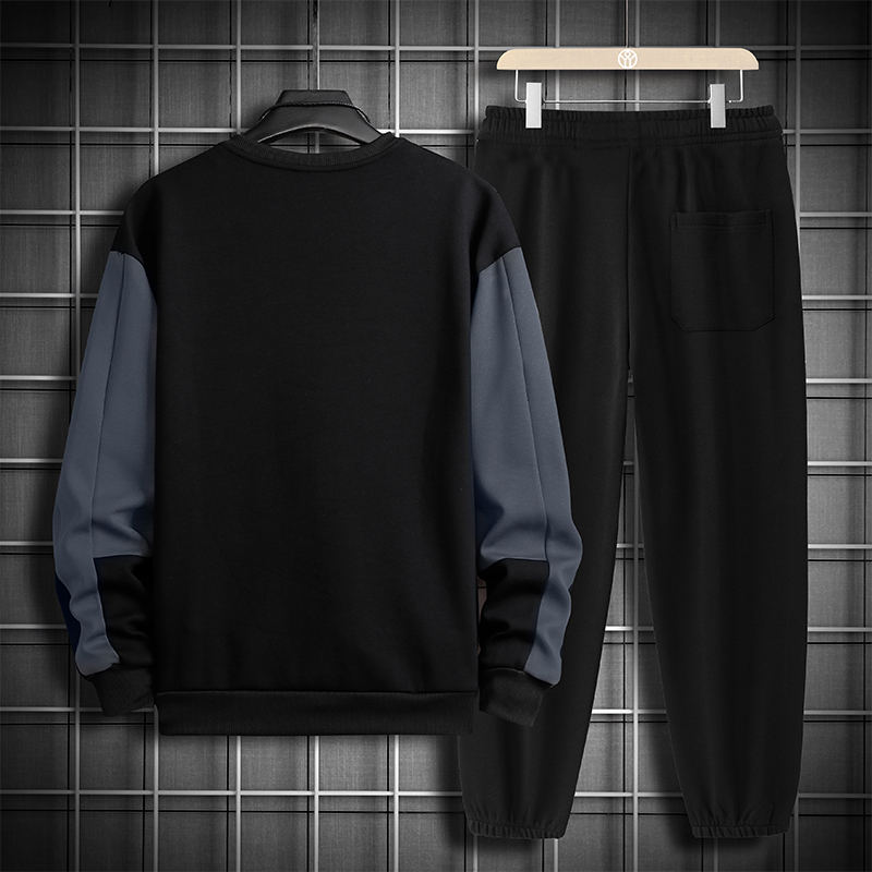 국경 간 봄 가을 겨울 일본식 미니멀리즘 캐주얼 세트 남성 조수 브랜드 루즈핏 다용도 운동 라운드 넥 긴팔 투피스 세트