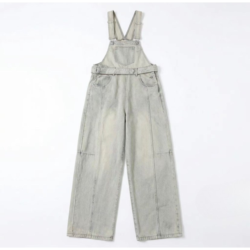 jmj 아메리칸 레트로 높음 거리 워크웨어 데님 멜빵 바지 남녀 루즈핏 캐주얼 디자인 센스 스트레이트 넓은 다리 길이 바지