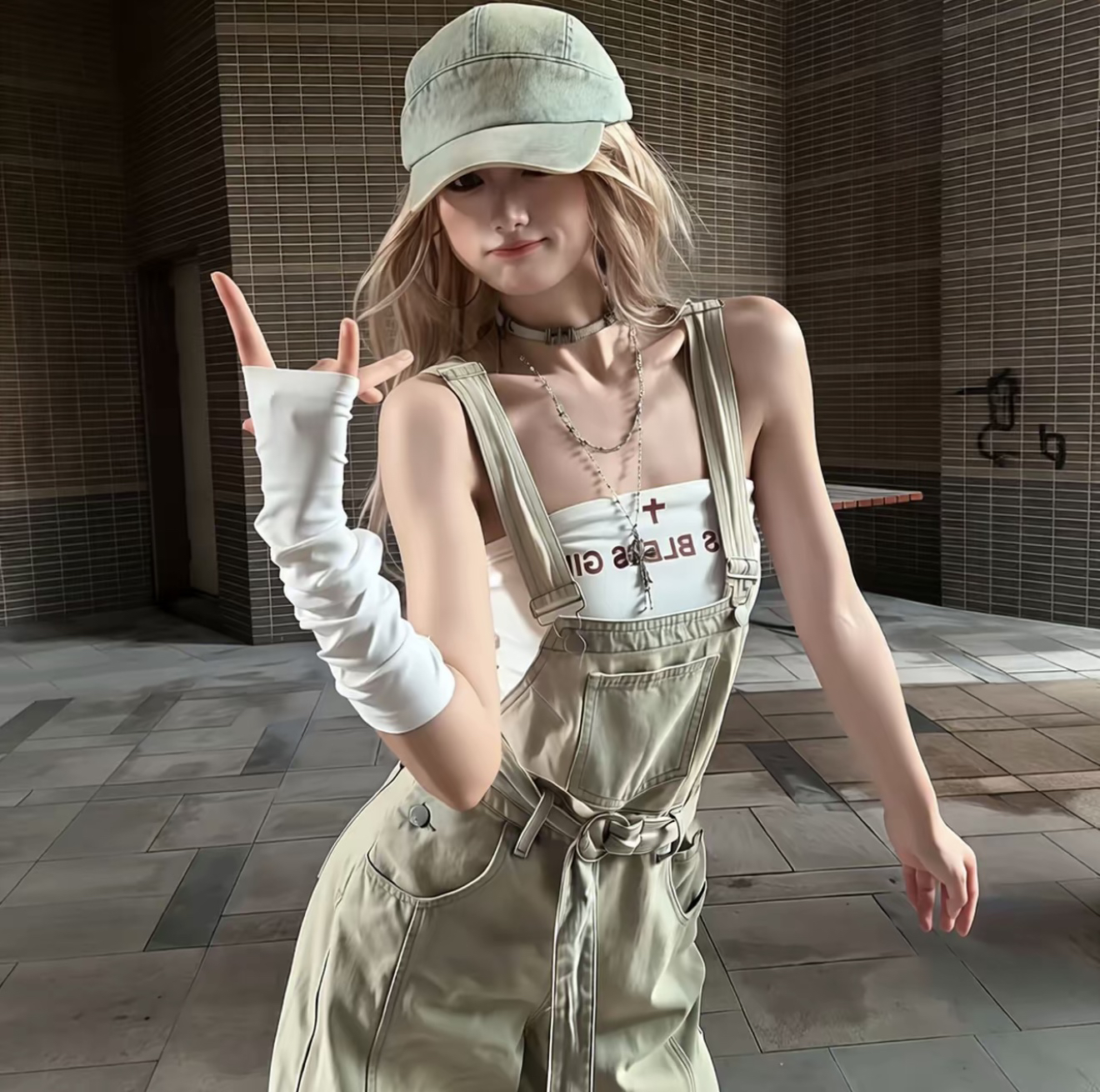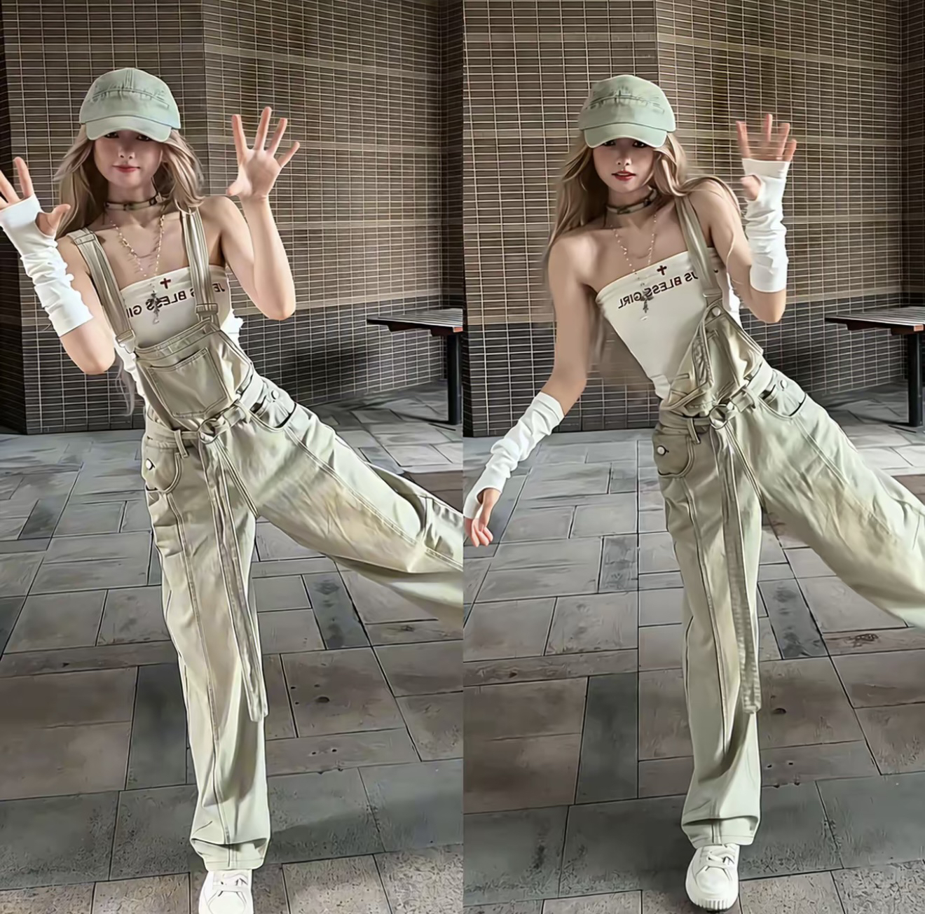 아메리칸 레트로 워싱 워크웨어 멜빵 바지 여성 2026 새로운 디자인 센스 주머니 루즈핏 와이드 레그 팬츠