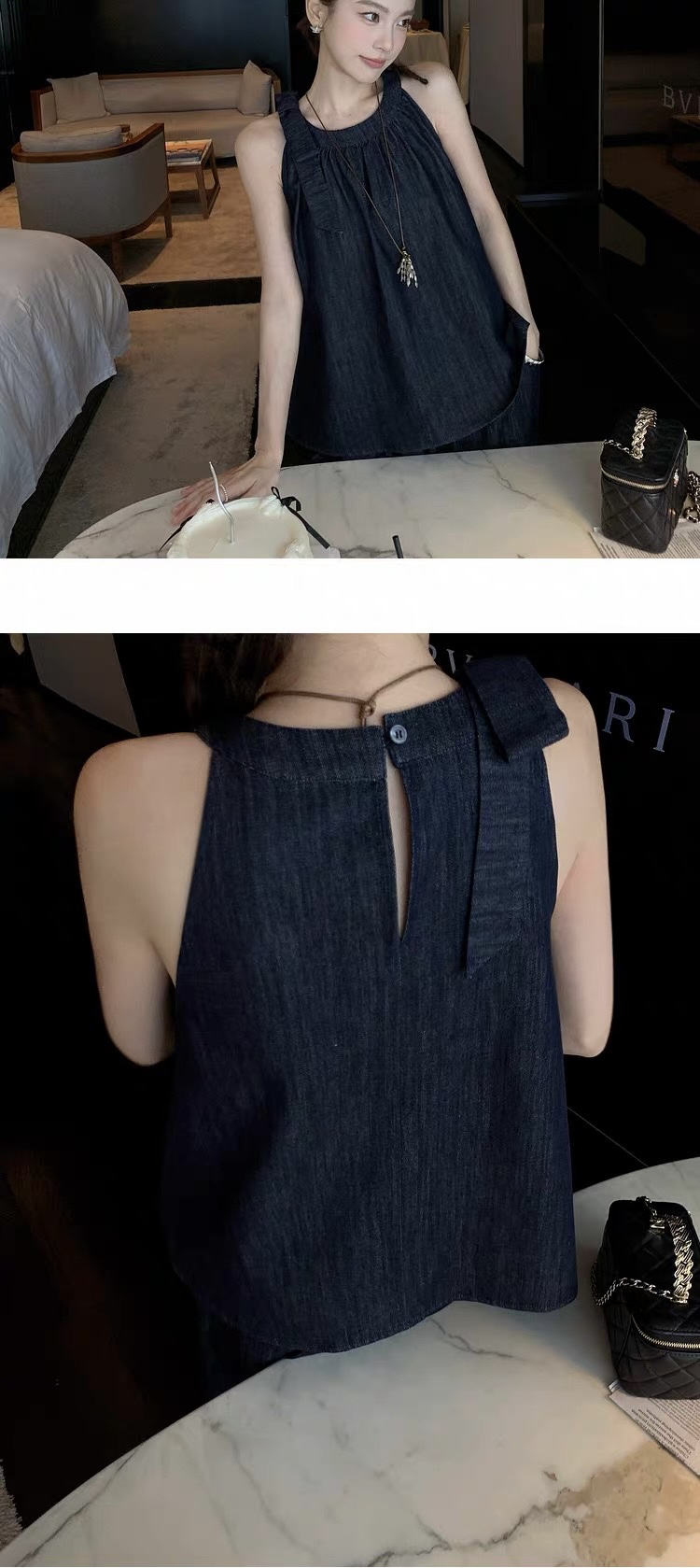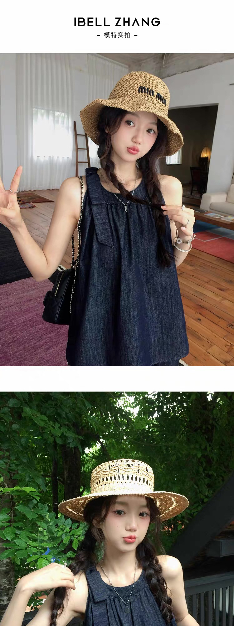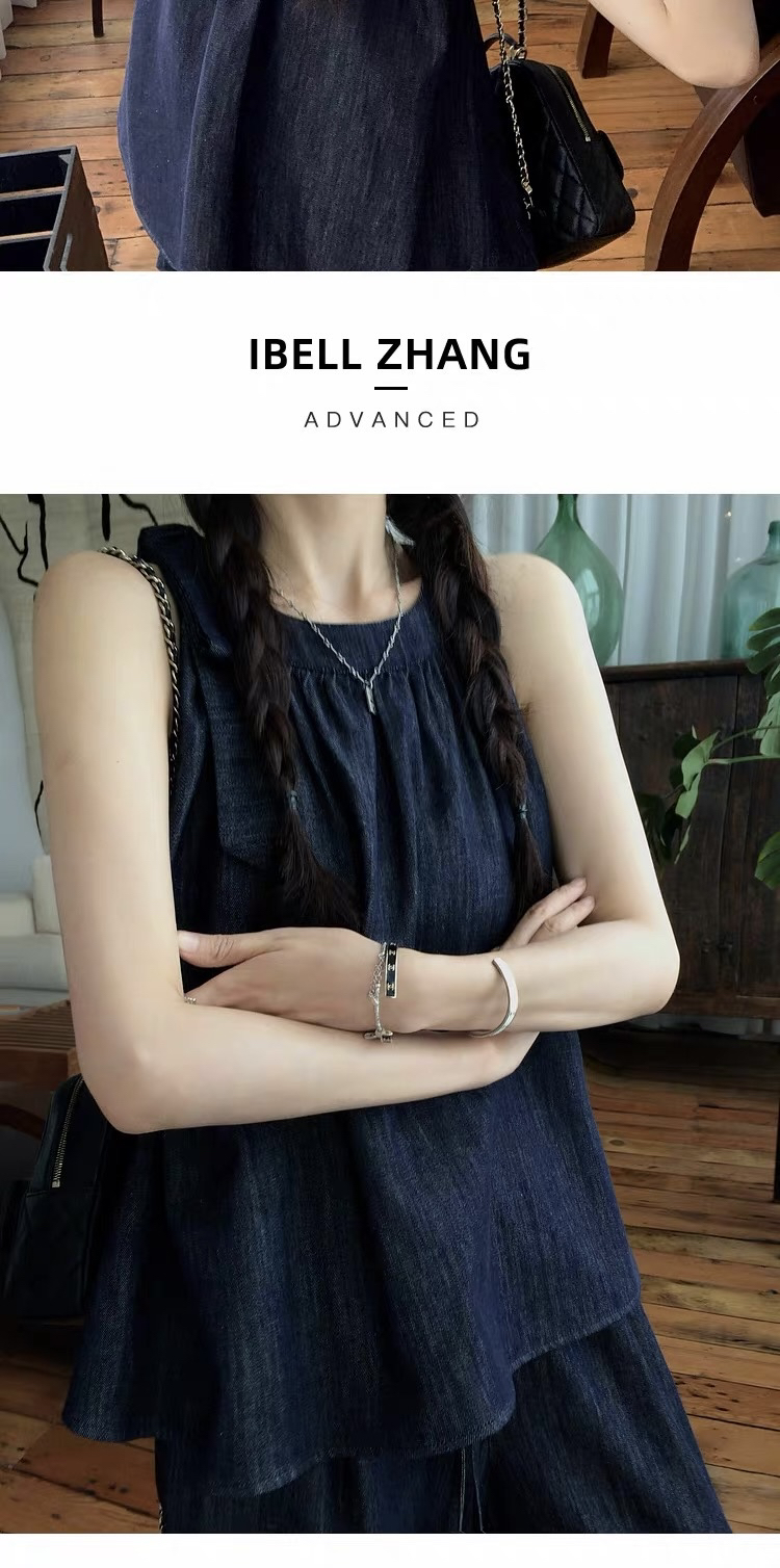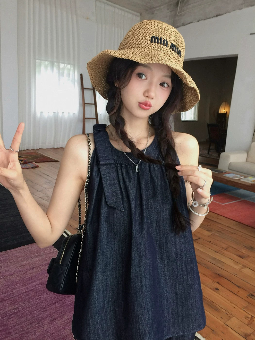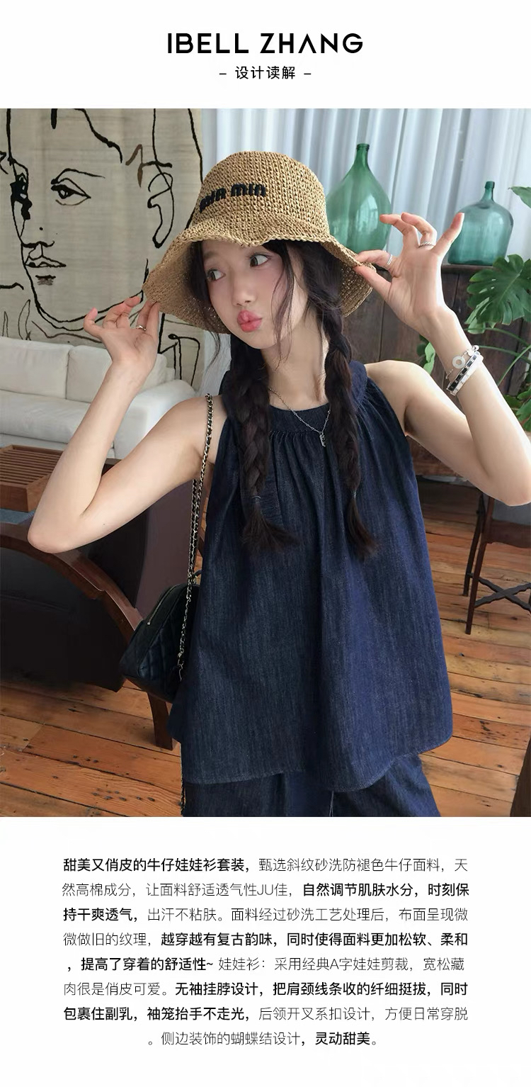 미니멀리즘 품격 연령 감소 작은 대중 디자인 센스 관대 한 점잖은 2026 봄 새로운 파란색 민소매 데님 조끼 스커트