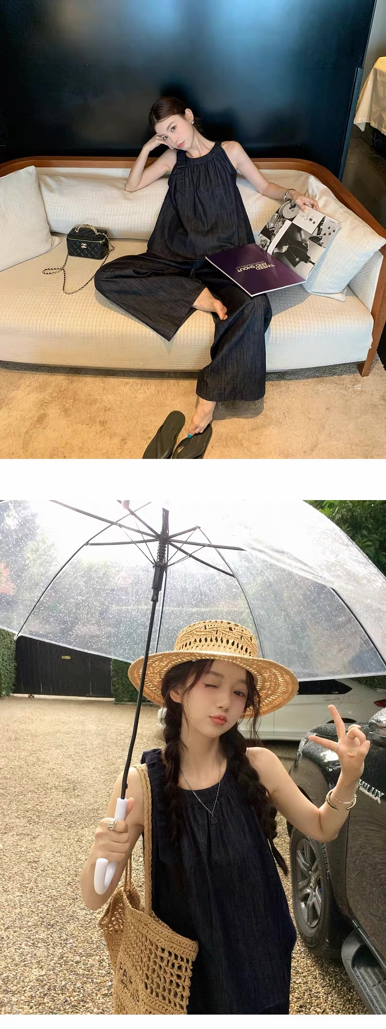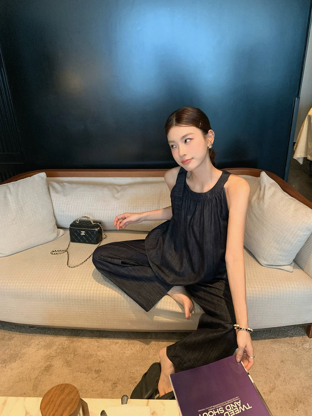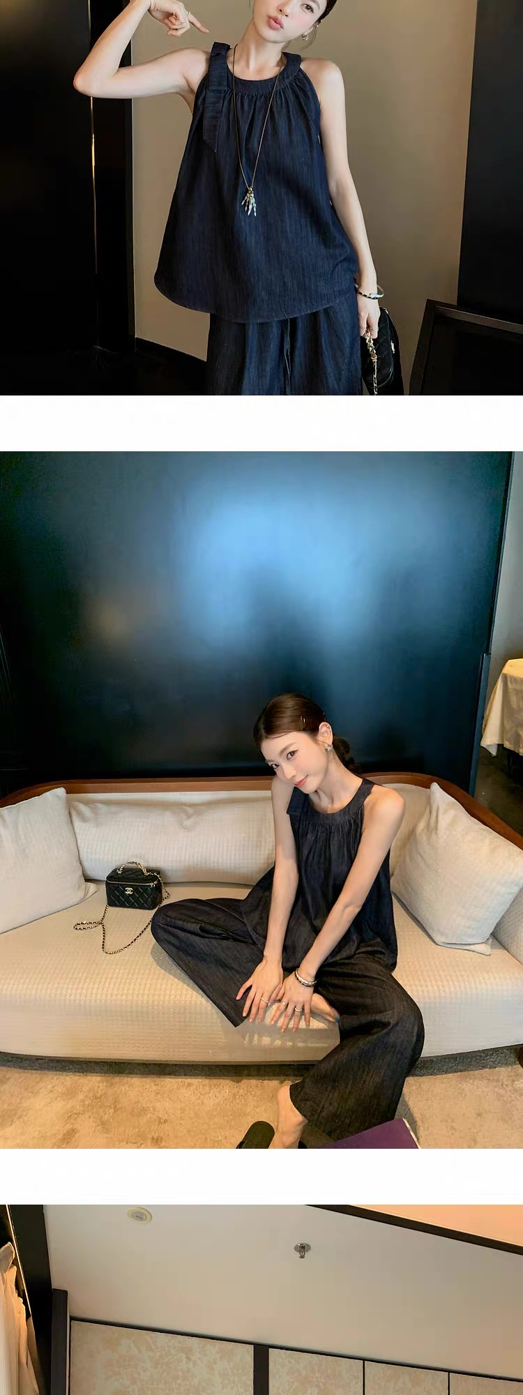 다시 차가운 다시 바람의 소리 데님 올인원 바지 세트 여성 여름 얇은 스타일 슈퍼 화재 잘 생긴 루즈핏 슬림해 보이는 캐주얼 넓은 다리 원피스 의류
