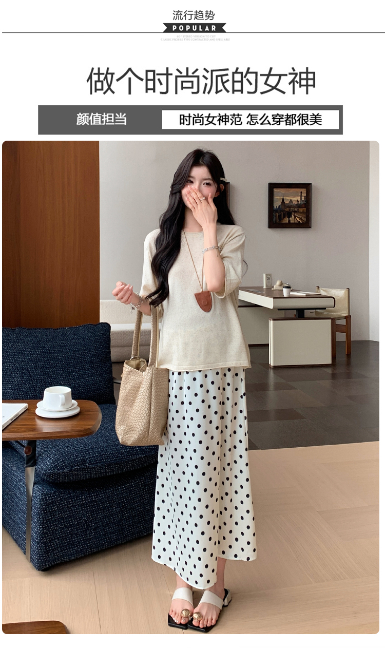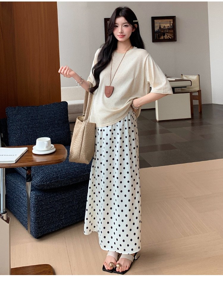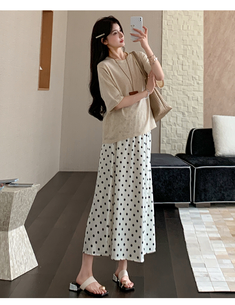 실사 임산부 여름 드레스 새로운 아마 니트 대 에디션 루즈핏 티셔츠 도트 무늬 반 스커트 세트