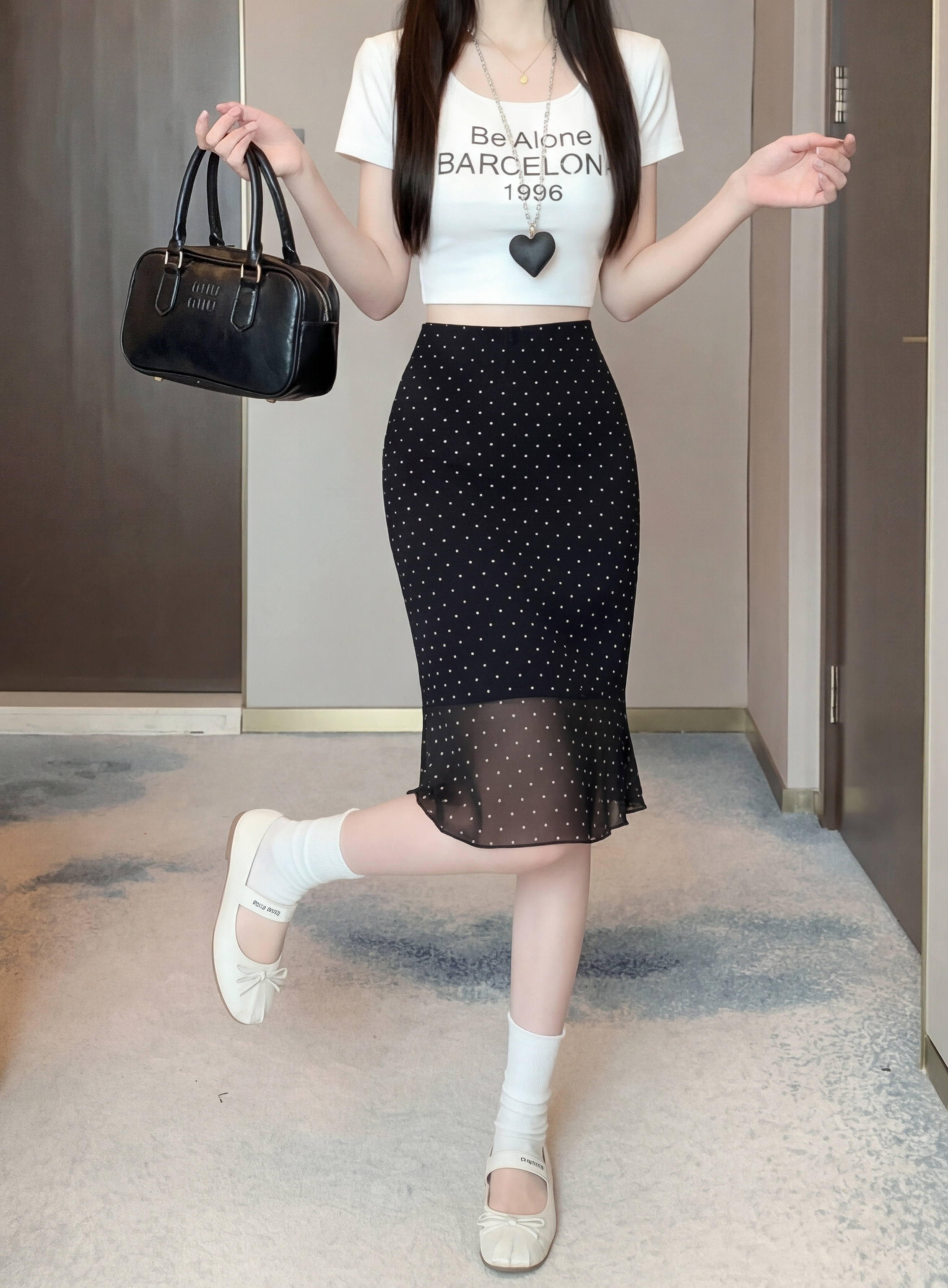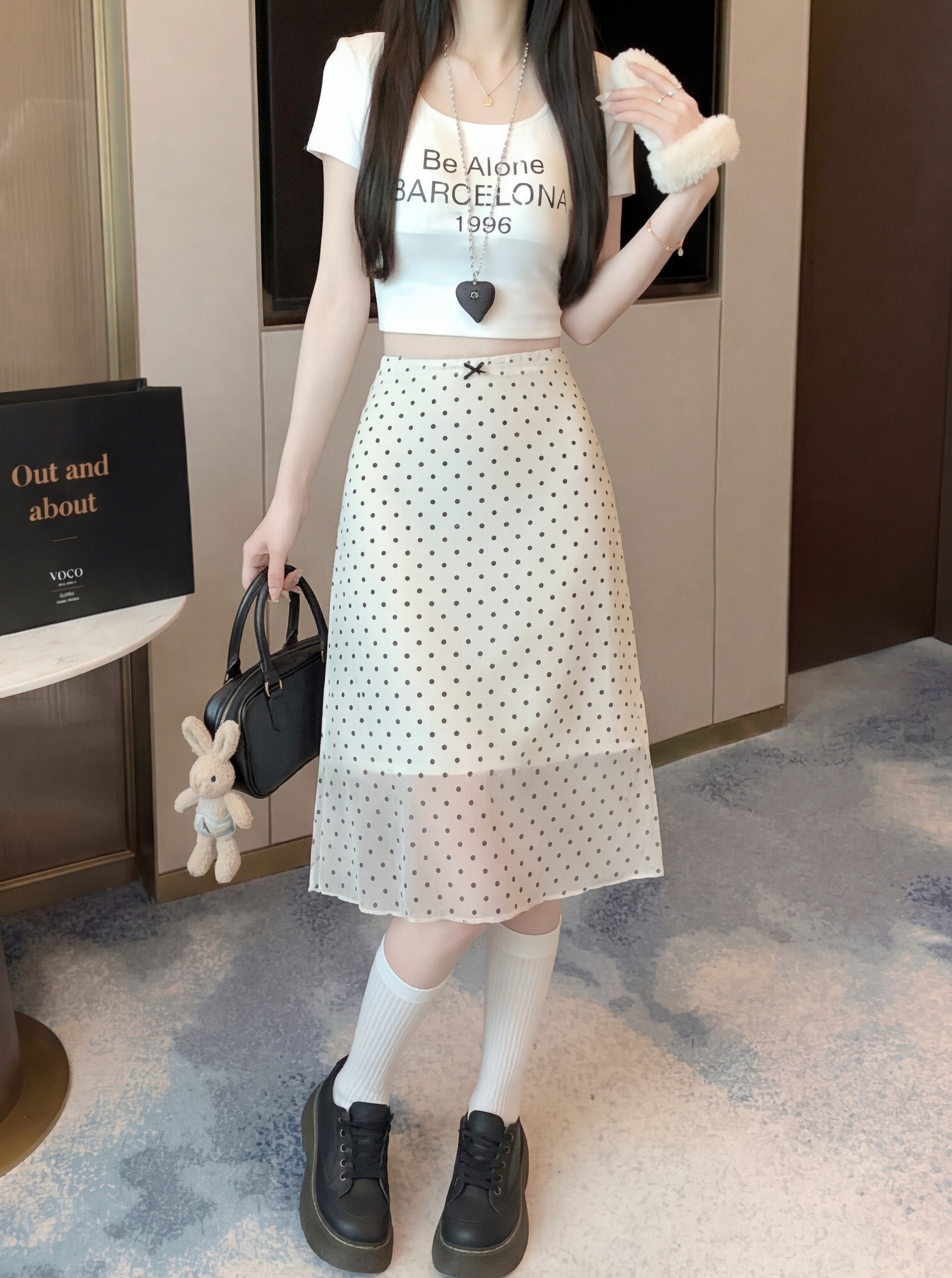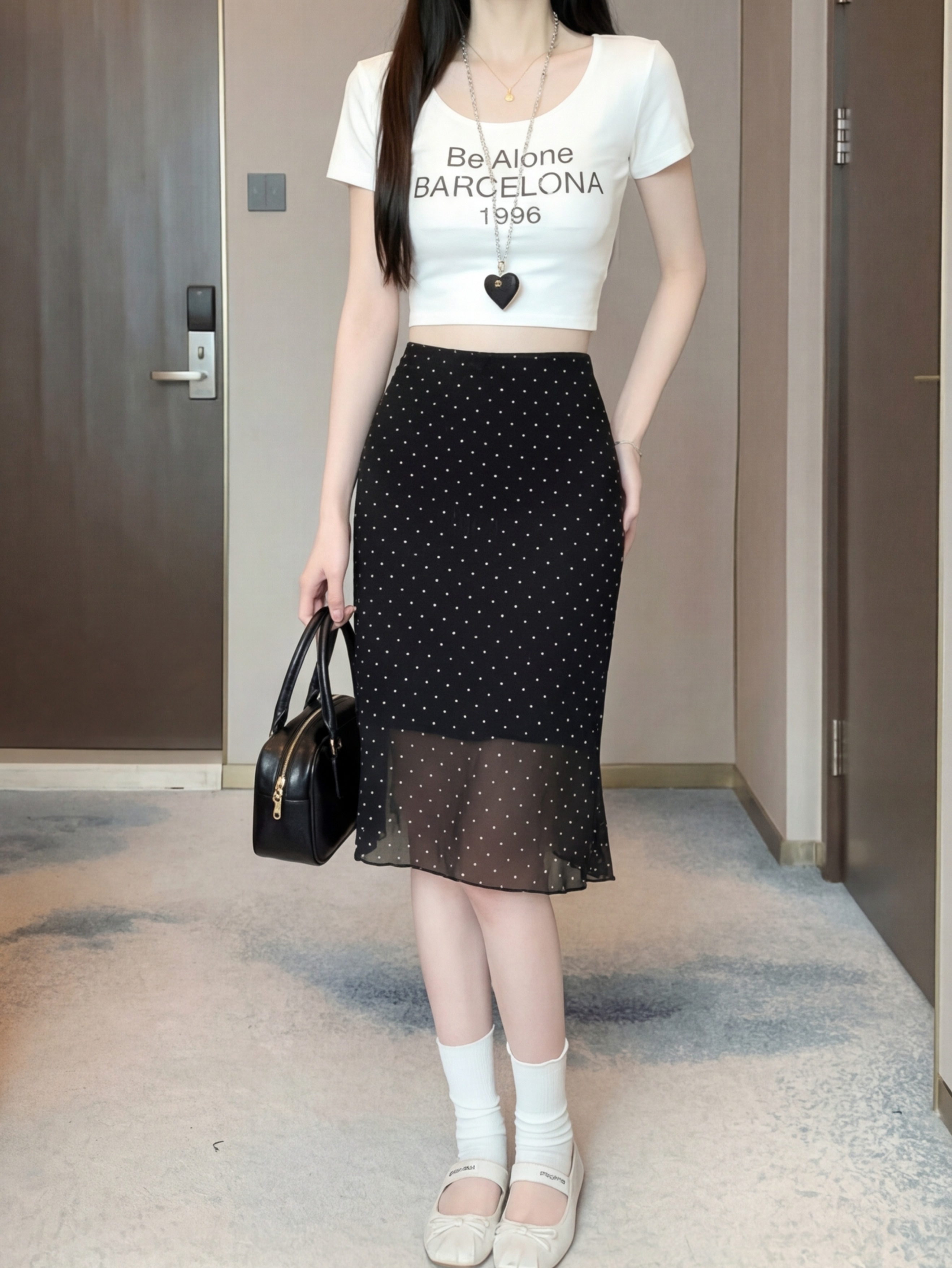 실사 2026 새로운 쉬폰 반신 스커트 패션 도트 무늬 A라인 스커트 몸매 가꾸기 우아한 중간 길이 스커트