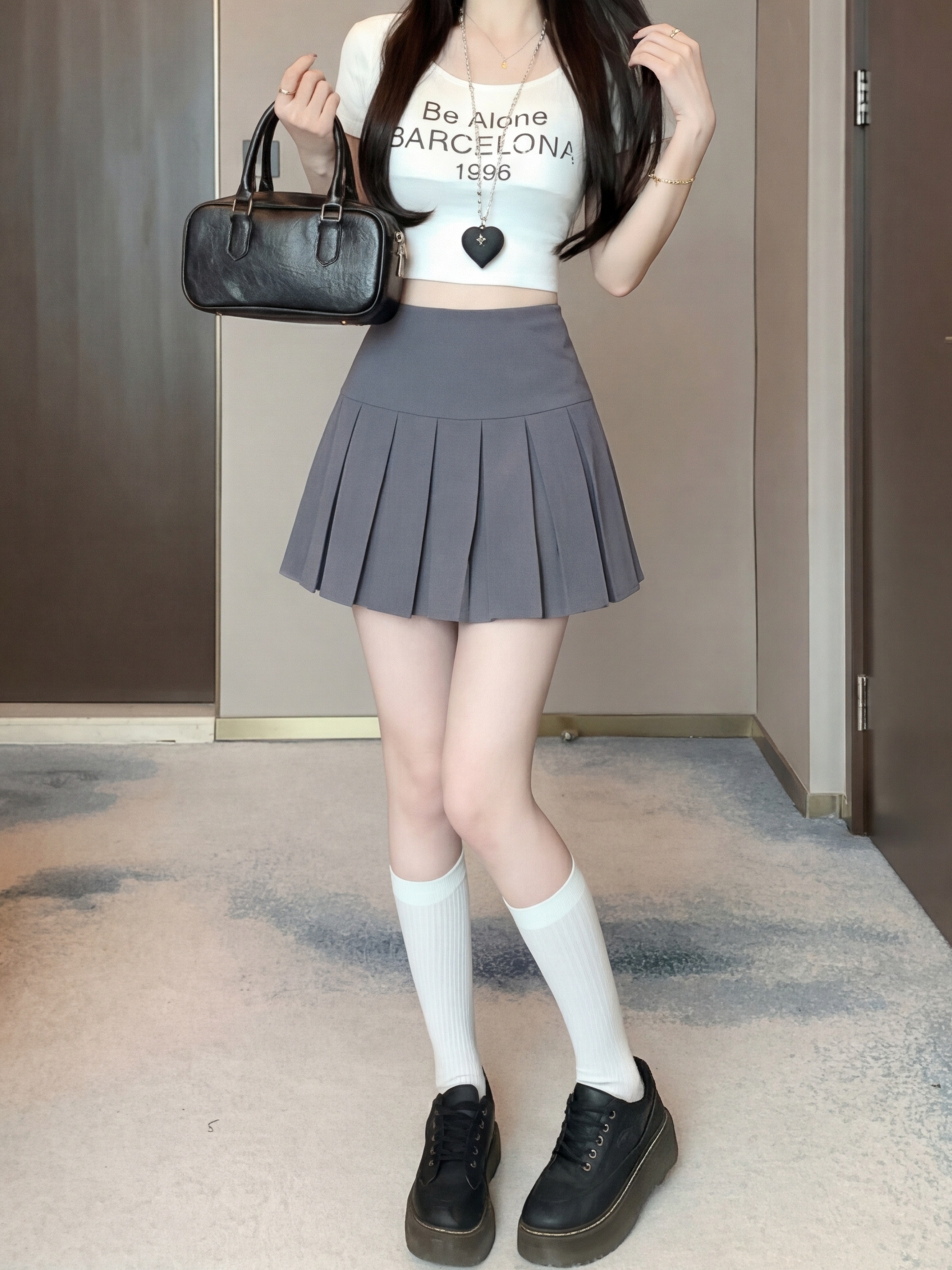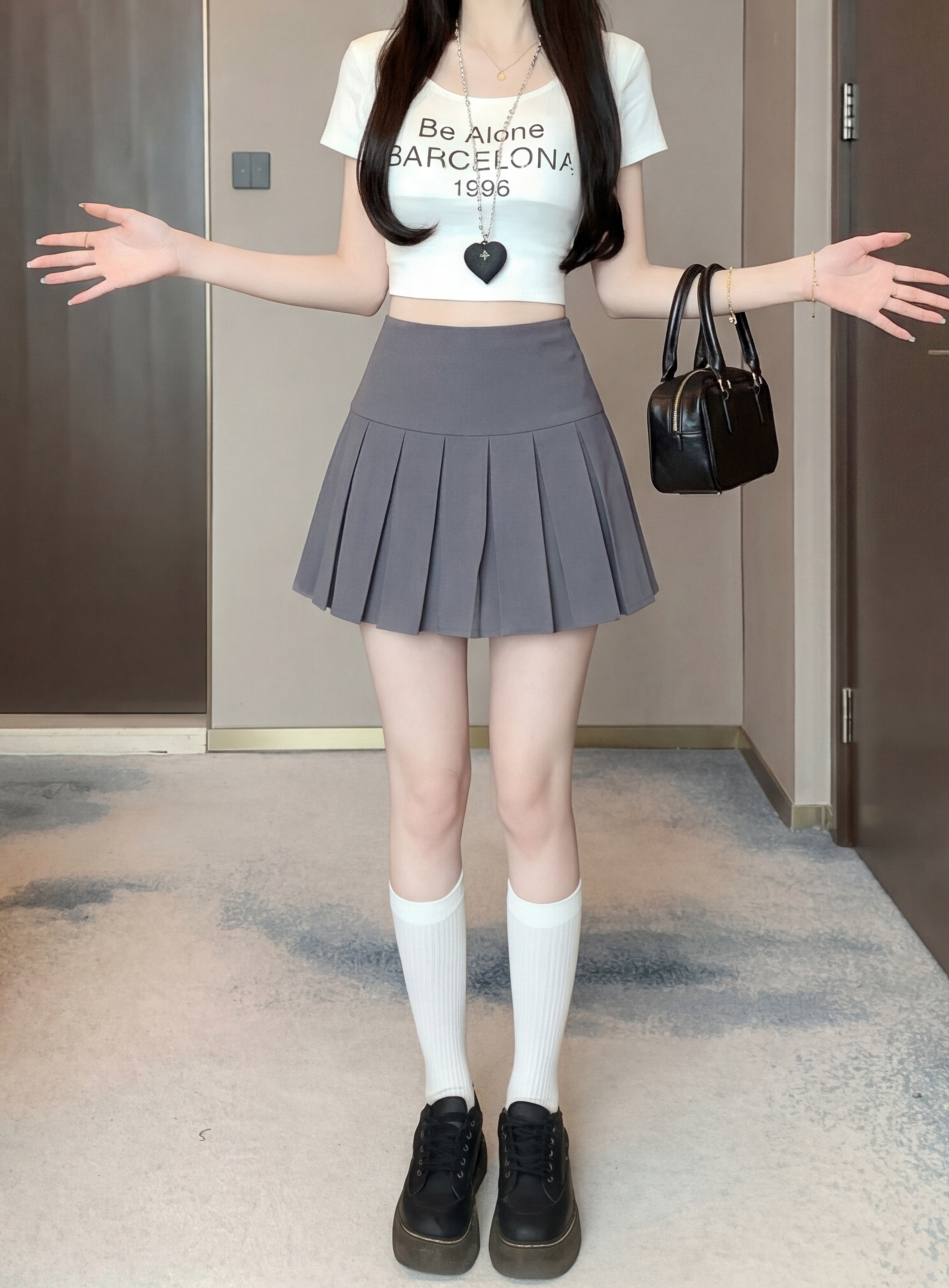 실사 2026 여름 새로운 단색 플리츠 스커트 패션 몸매 가꾸기 슬림해 보이는 A라인 스커트