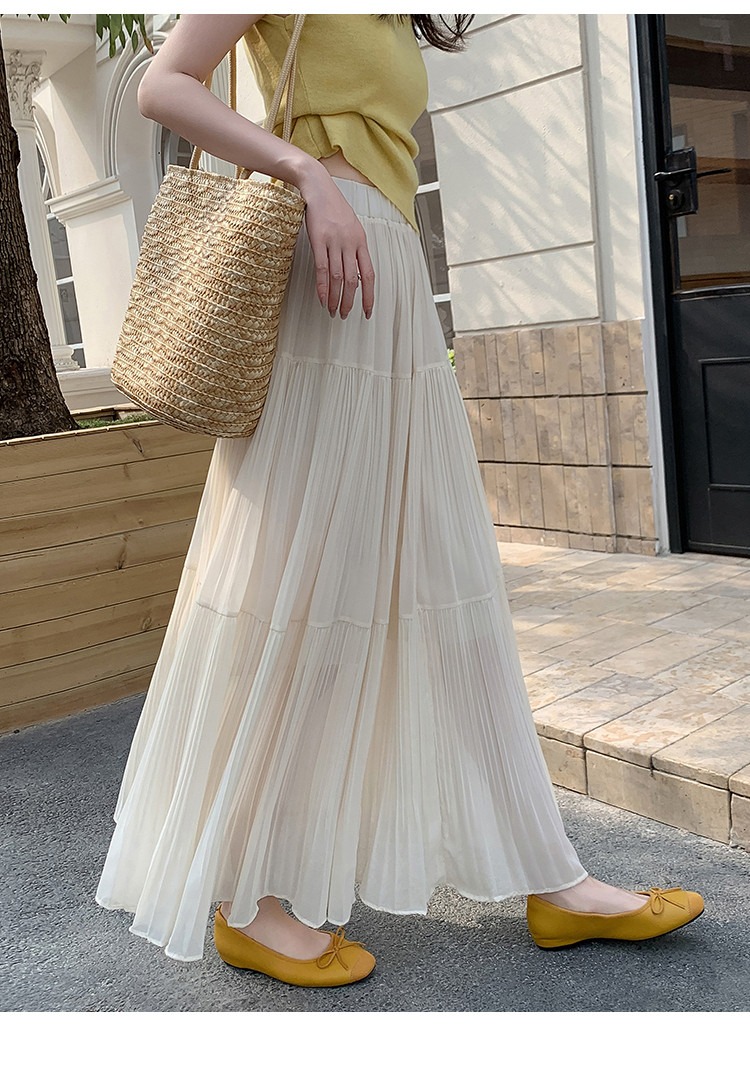 쉬폰 반신 스커트 여성 여름 새로운 화이트 바닥 청소 큰 진자 롱 스커트 표지 십자가 한 마디 플리츠 스커트