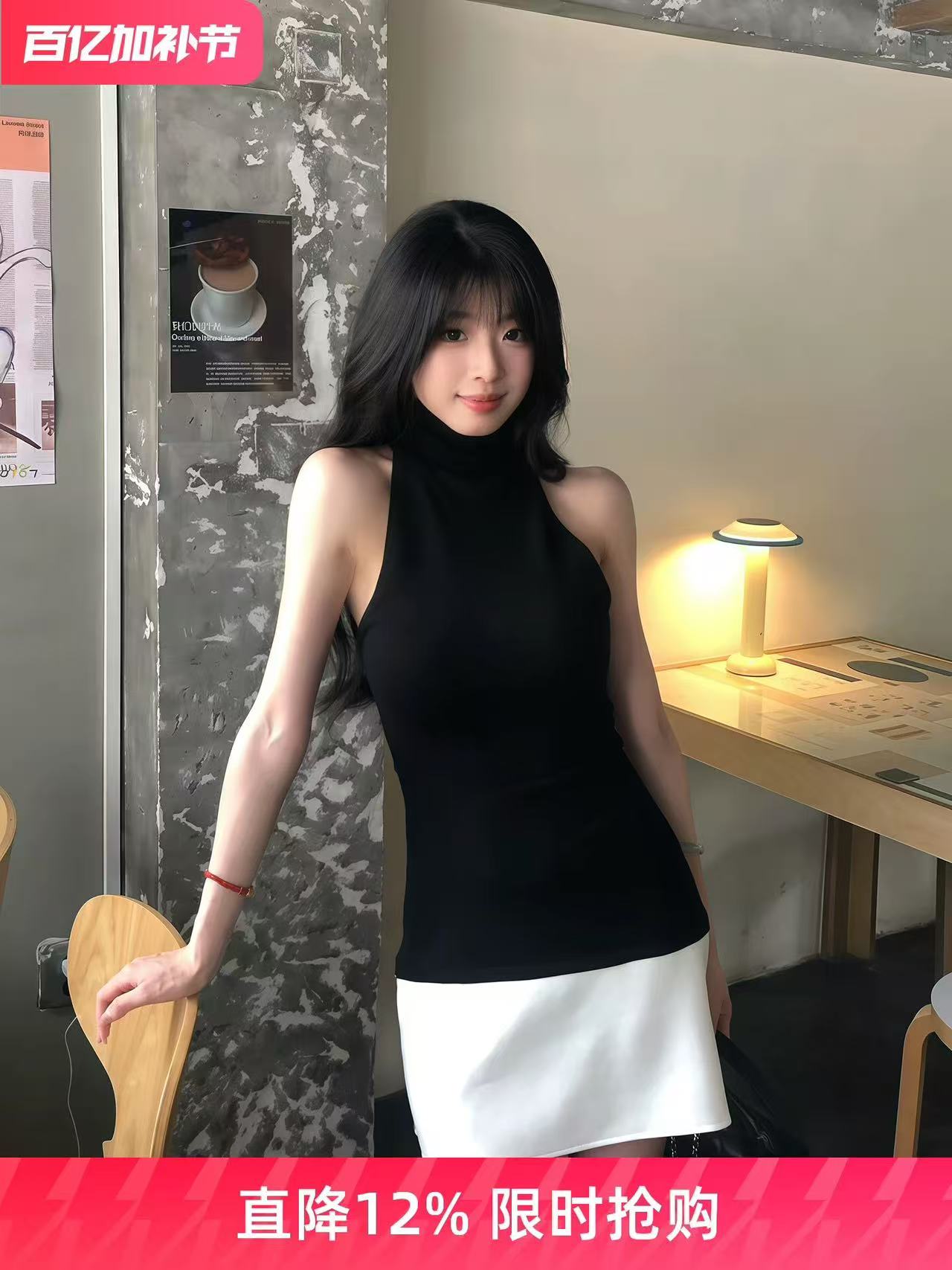 몸매 가꾸기 민소매 행침 목 검정색 맨위 세트 여성 의류 여름 2026 새로운 섹시함 핫걸 반신 스커트 투피스 세트