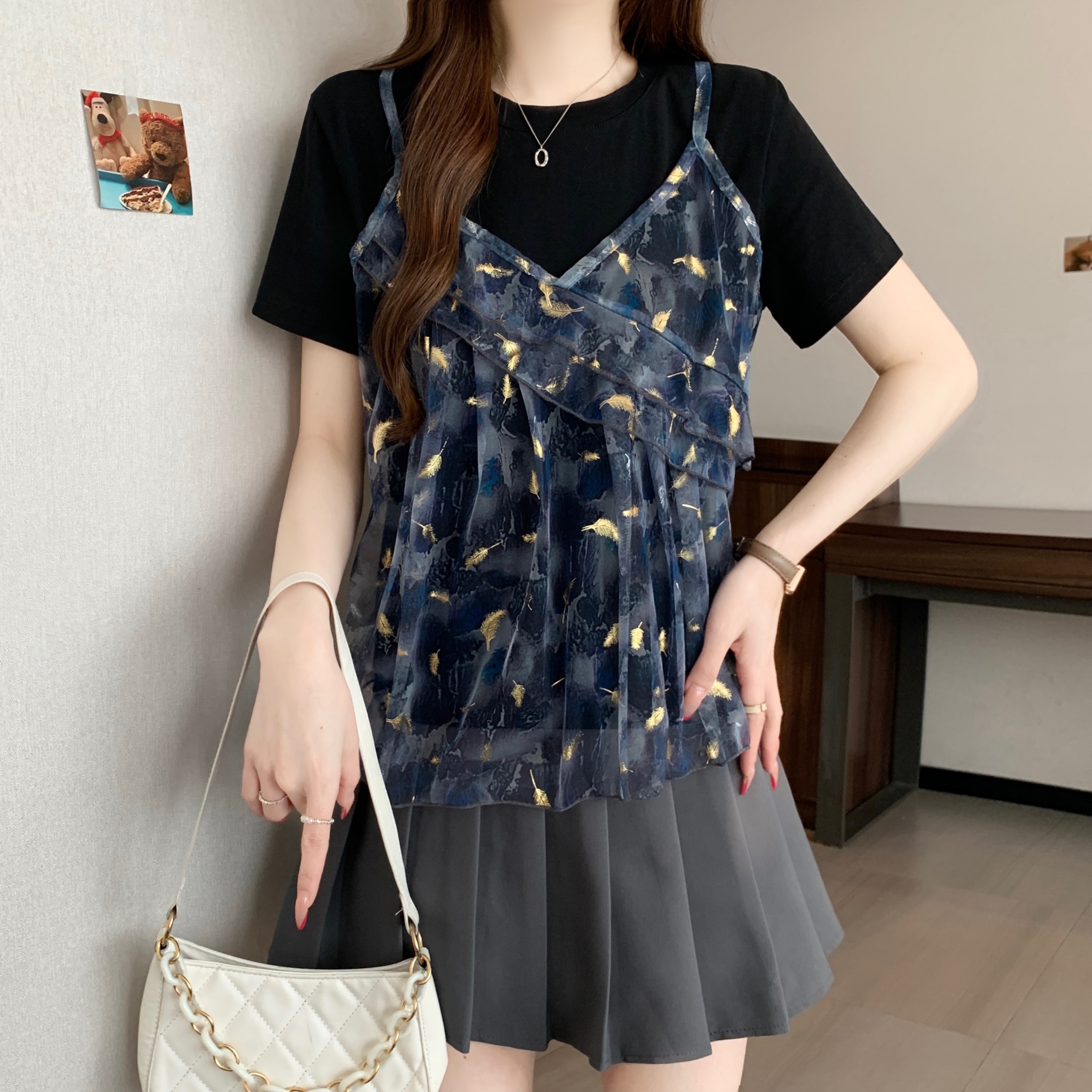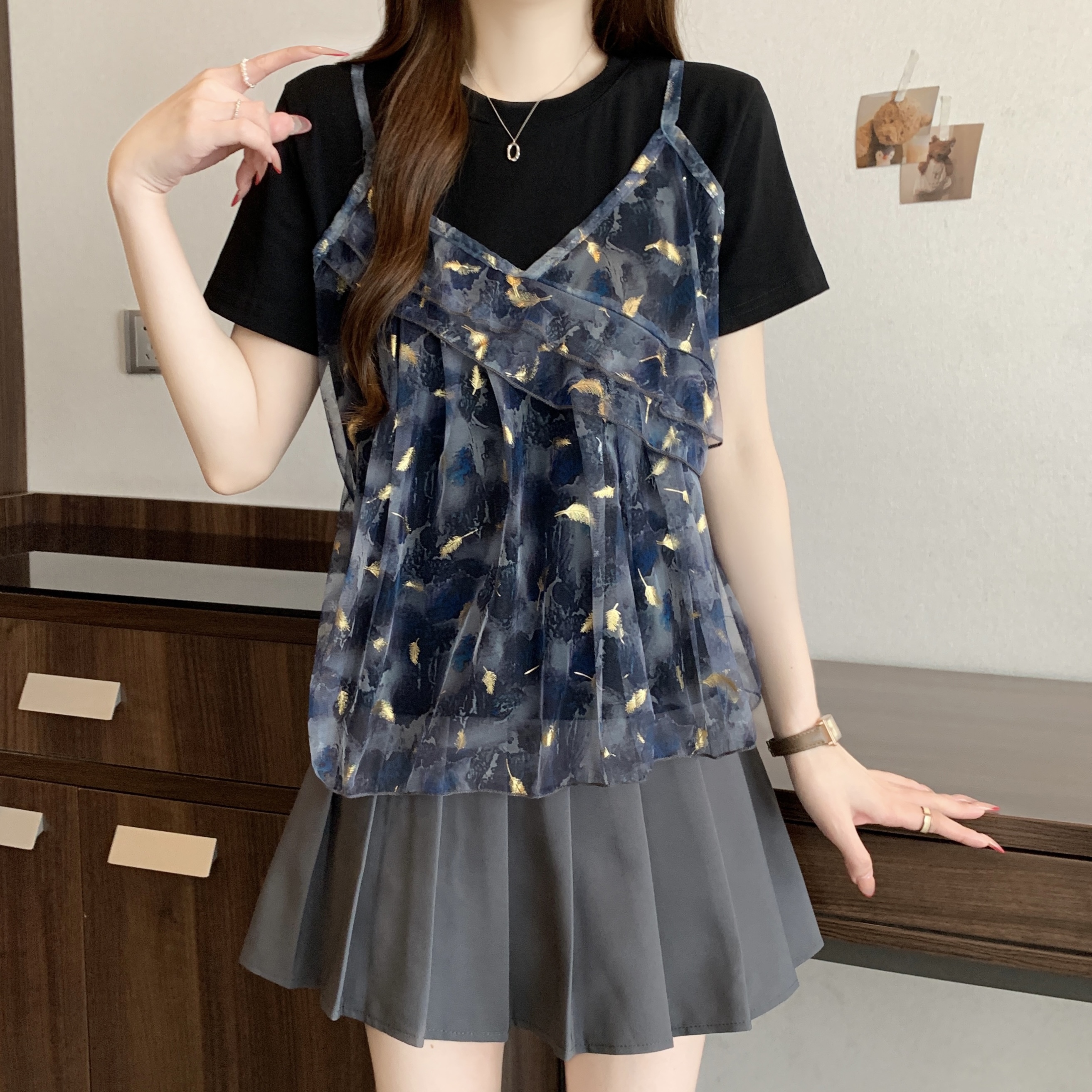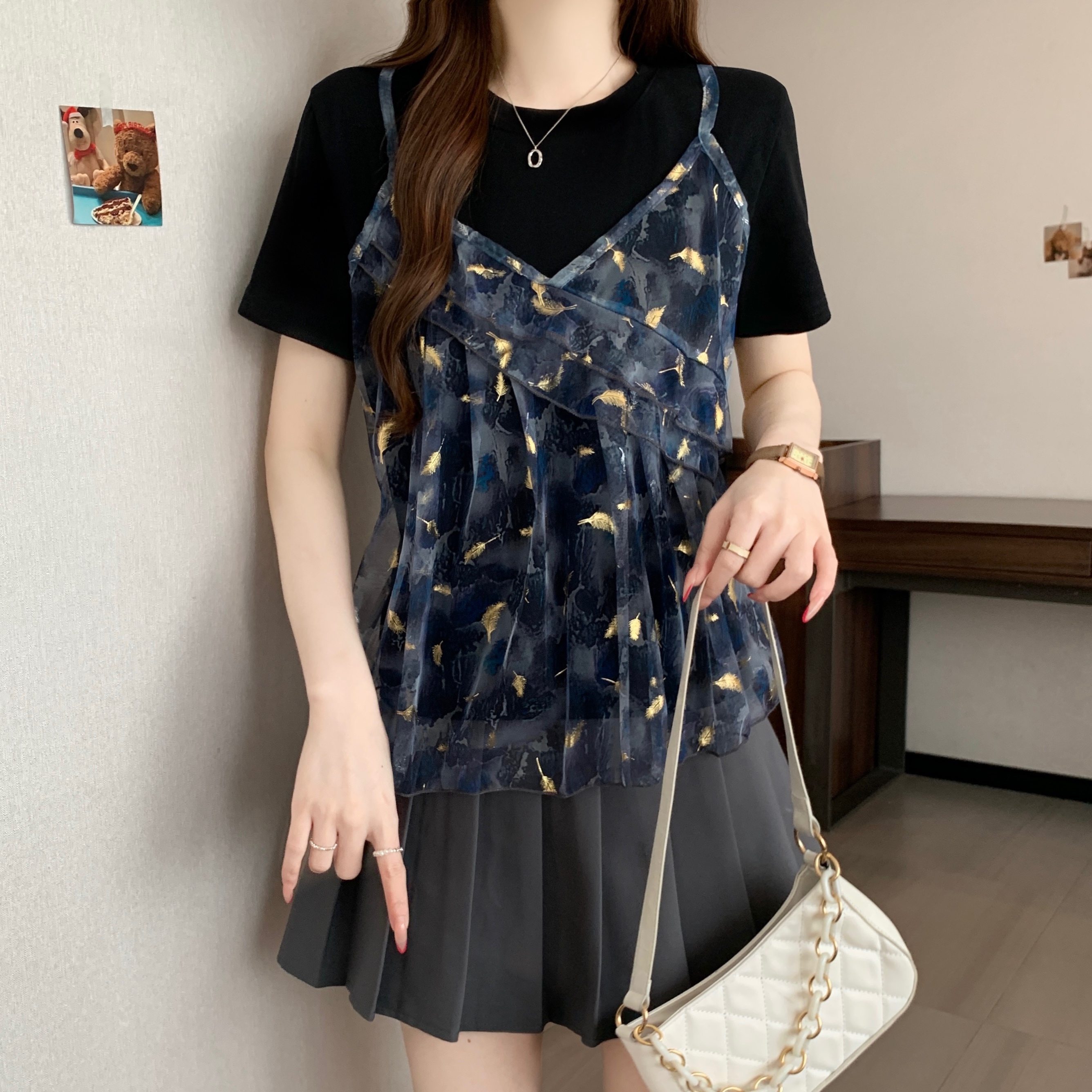 실사 2026 새로운 빅 사이즈 지방 mm 여름 섹션 디자인 센스 페이크 레이어드 비즈 박기 연령 감소 표지 배 슬림해 보이는 다용도 맨위