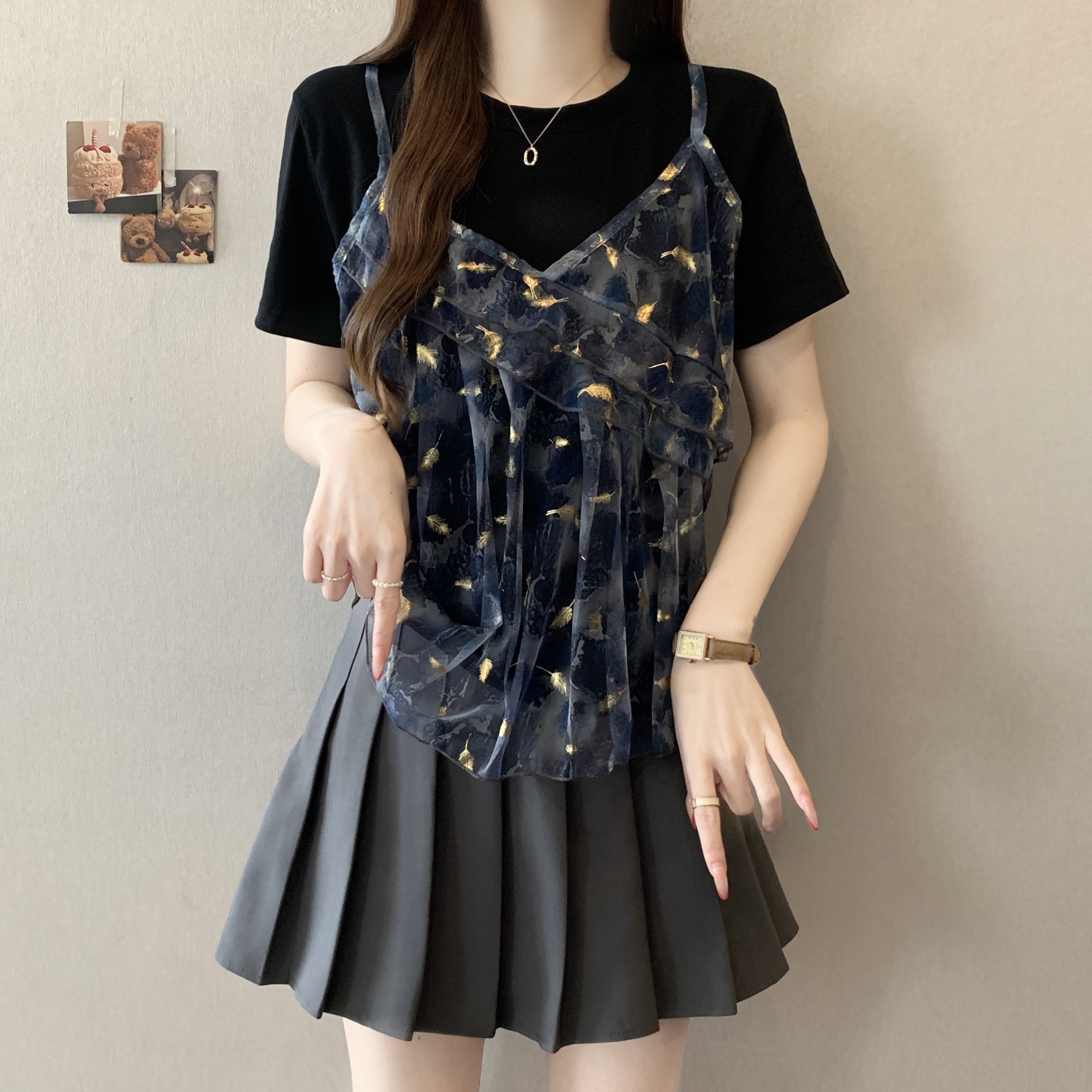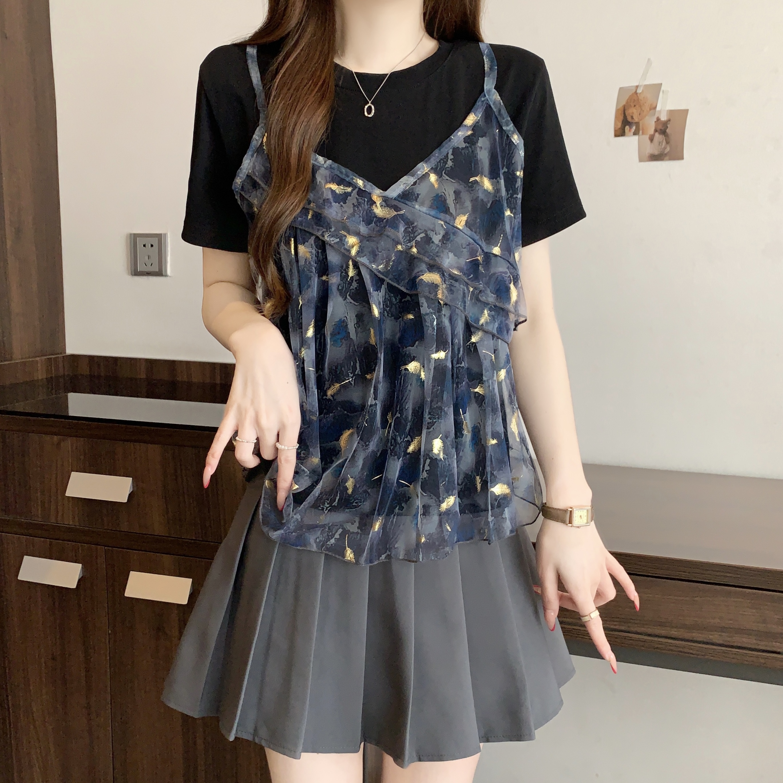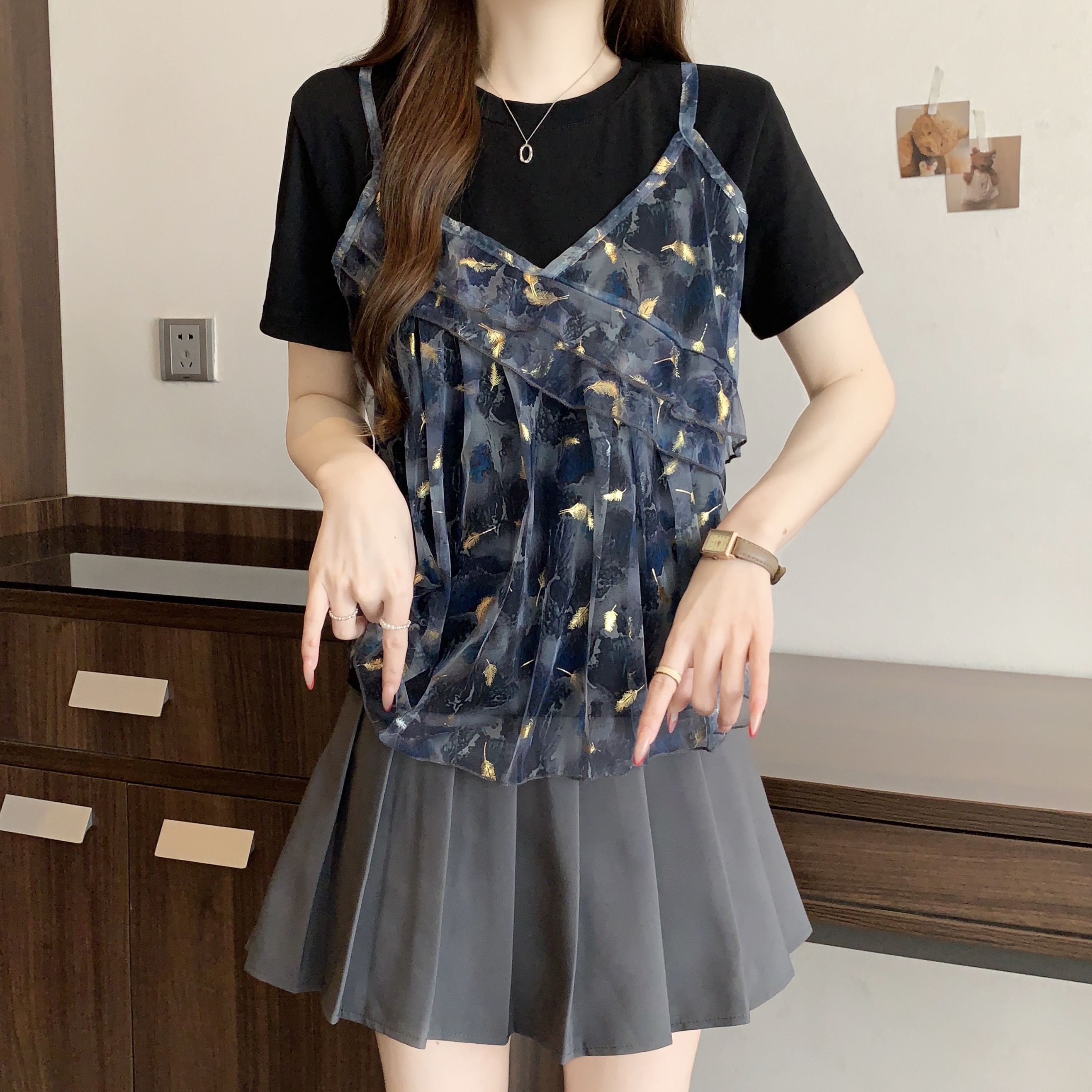 실사 2026 새로운 빅 사이즈 지방 mm 여름 섹션 디자인 센스 페이크 레이어드 비즈 박기 연령 감소 표지 배 슬림해 보이는 다용도 맨위