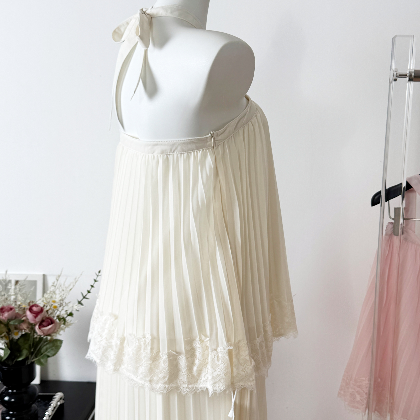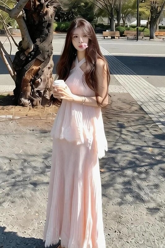 cloudsweet 흰 구름 달콤한 Breeze 향수 품격 행침 목 쉬폰 여성 드레스 플리츠 스커트 민소매 롱 스커트