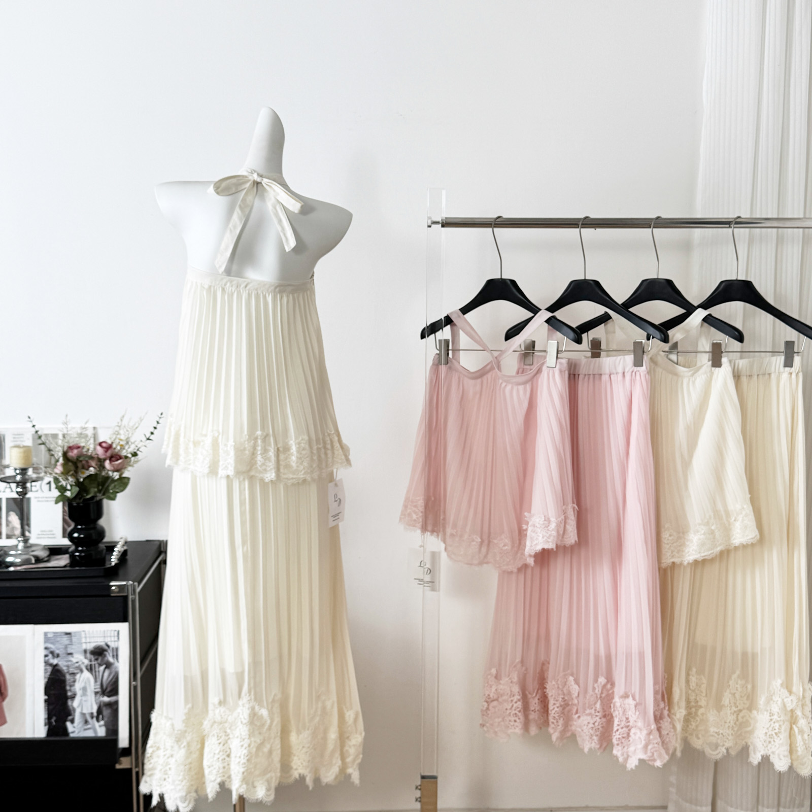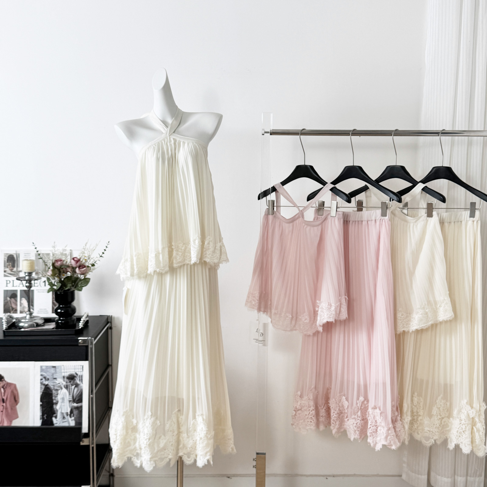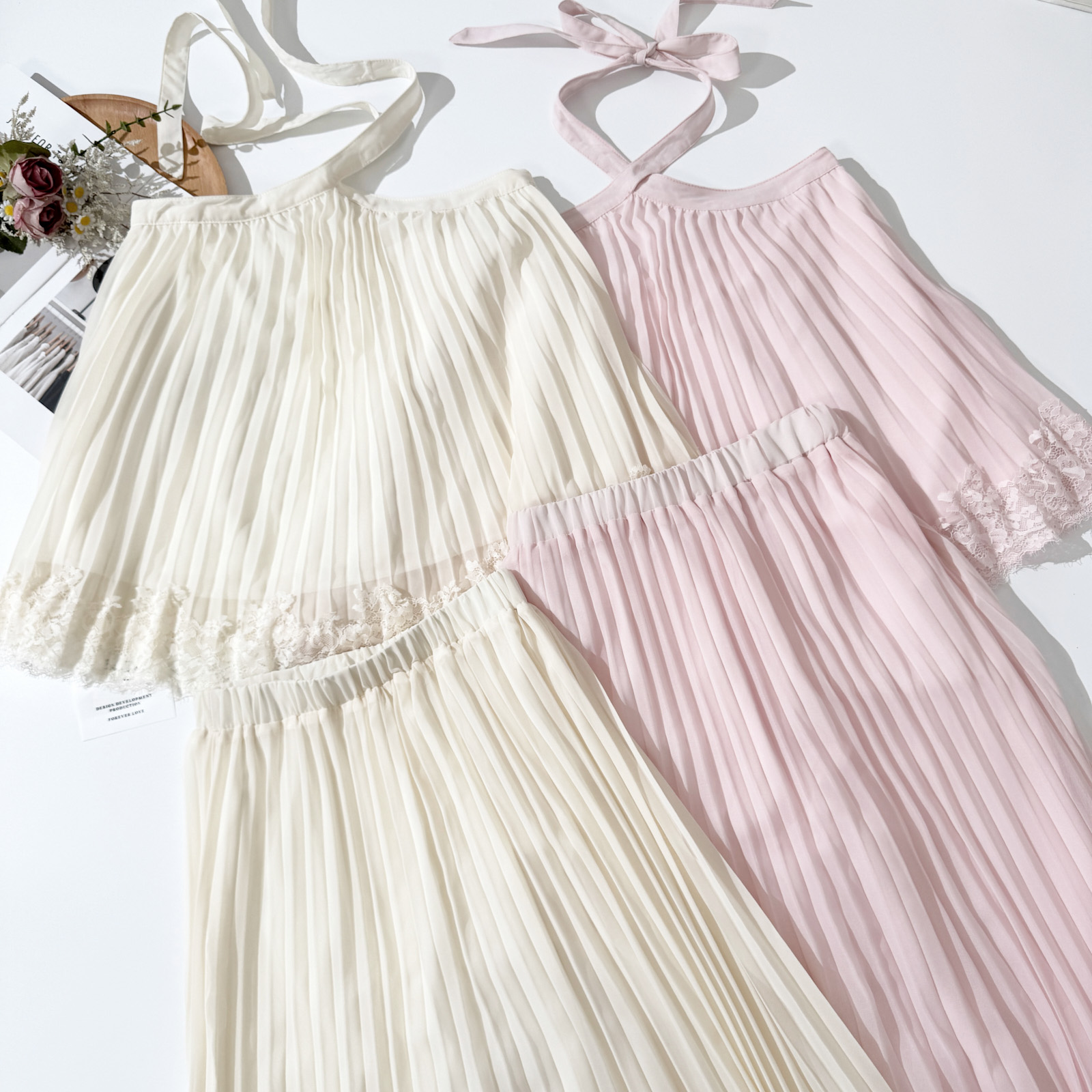1개 다곤 1z1zgun 달빛 화이트 장미 디자인 센스 요정 가스 펄럭 이는 무거운 작업 짜임 드레스 투피스 세트 치마