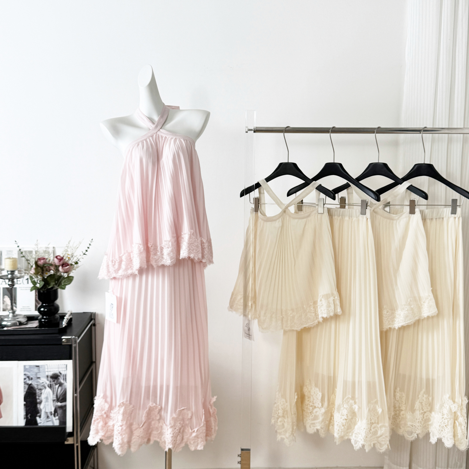 cloudsweet 흰 구름 달콤한 Breeze 향수 품격 행침 목 쉬폰 여성 드레스 플리츠 스커트 민소매 롱 스커트