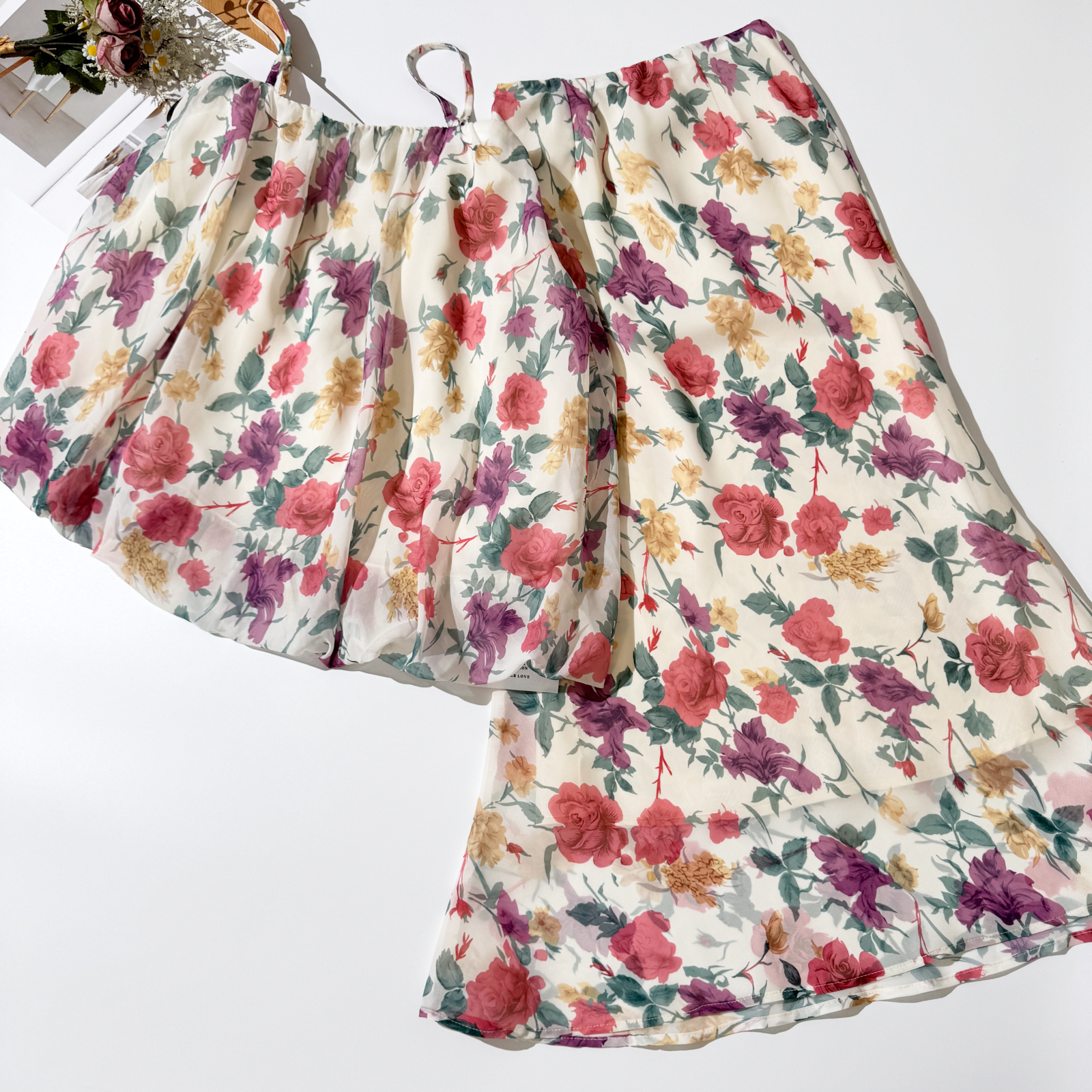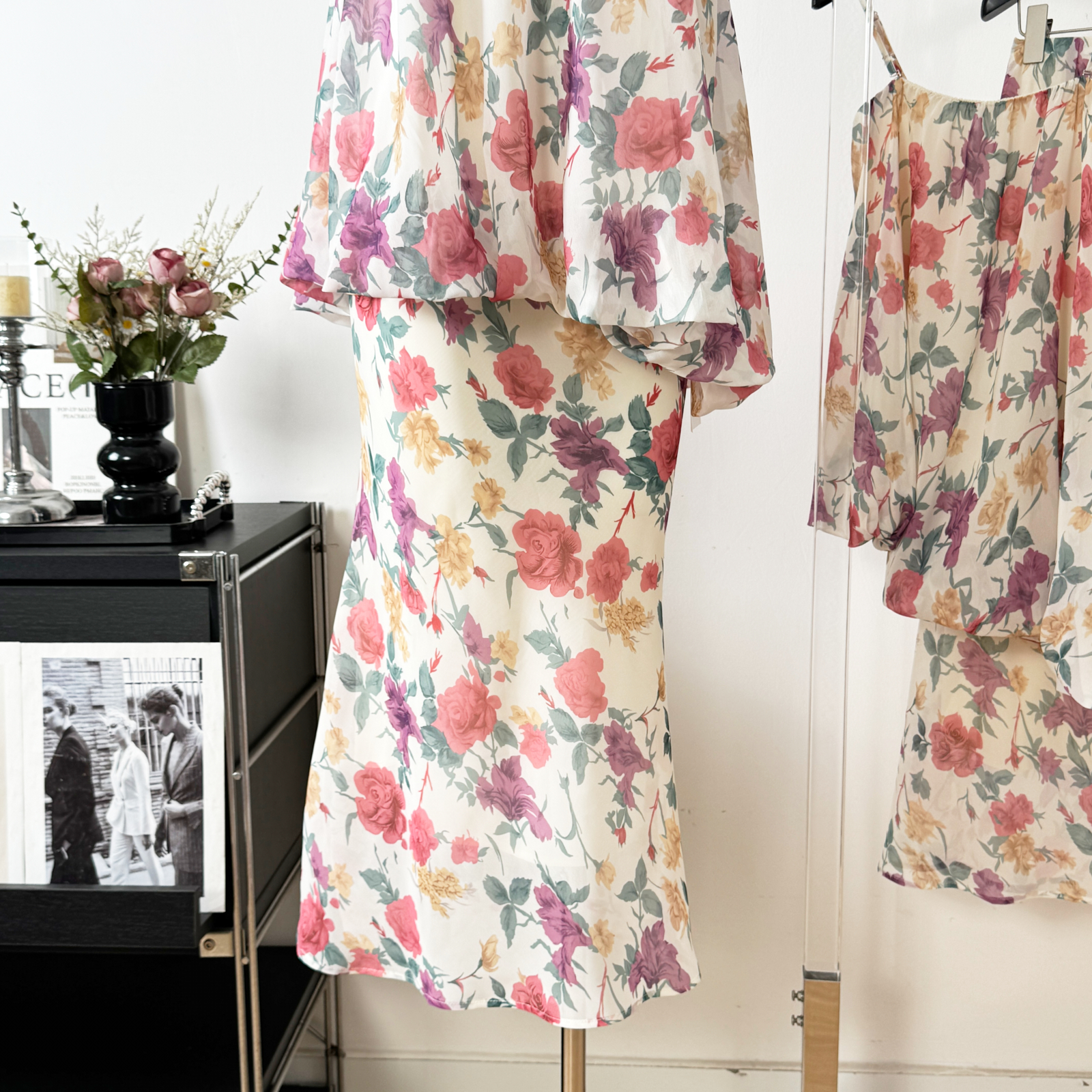 sya 크 사이 작은 웨스트 모네 정원 레트로 꽃무늬 튜브탑 세트 여성 여름 부드러운 인어 꼬리 반 스커트 투피스 세트