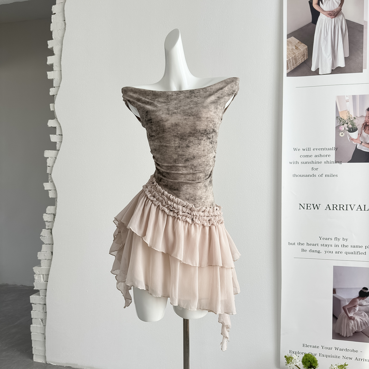 huohuo 안개 염색 리플 달콤하지만 끈적 거리지 않음 2026 봄 여름 새로운 여성 불규칙 리본 몸매 가꾸기 드레스