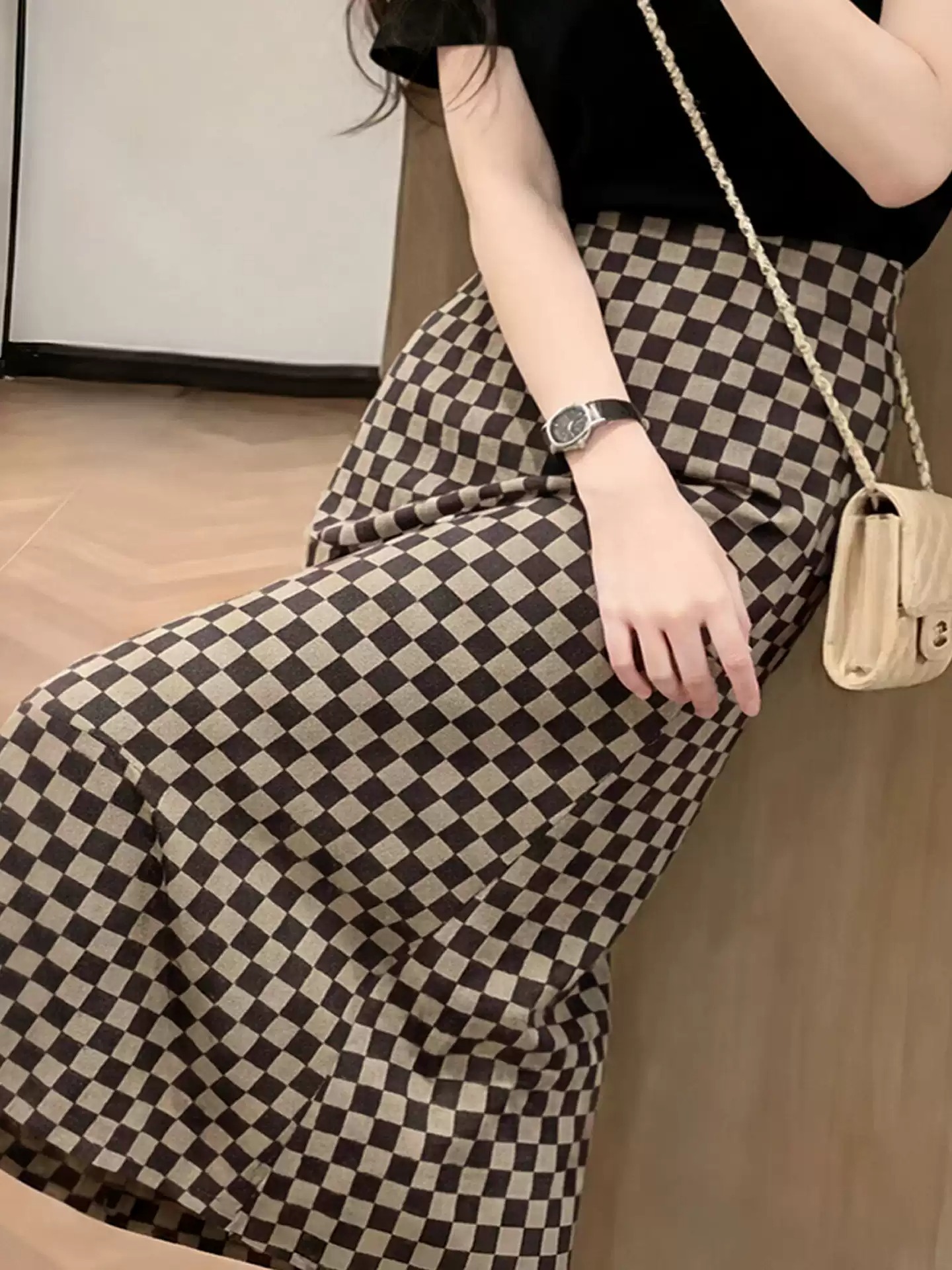 한 부서 패션 검정색 순수한 욕망 슬립 맨위 여성 의류 2026 여름 새로운 도루 가을 센스 부츠컷 롱 바지 세트