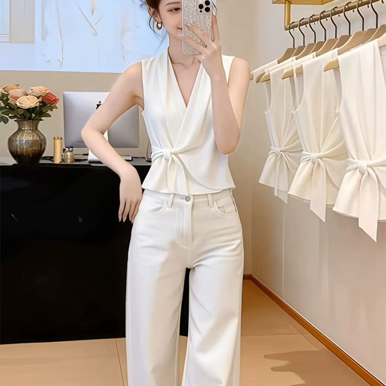 holder 열세 개 2026 여름 새로운 프랑스식 순수한 욕망 작은 여자 레이스 조각 V넥 조끼 맨위 여성