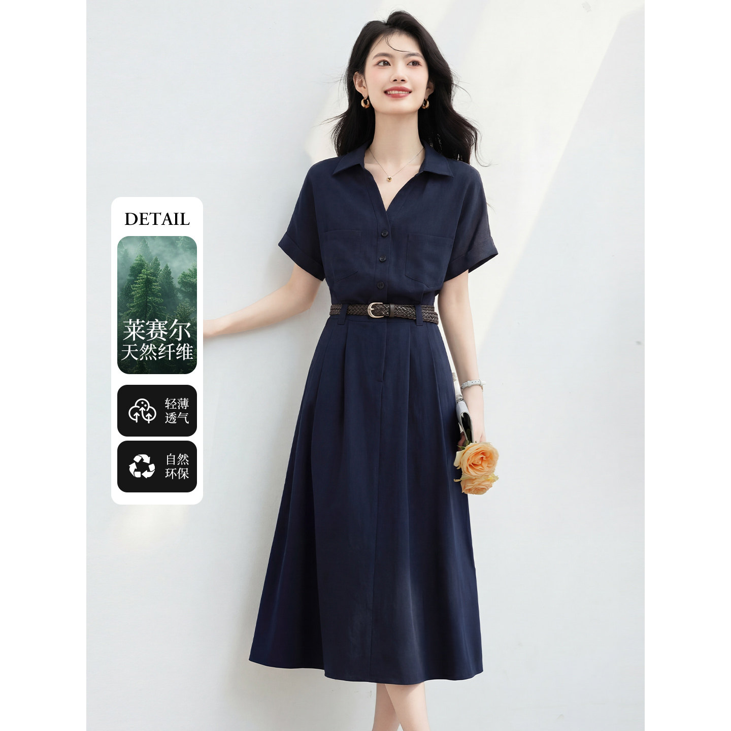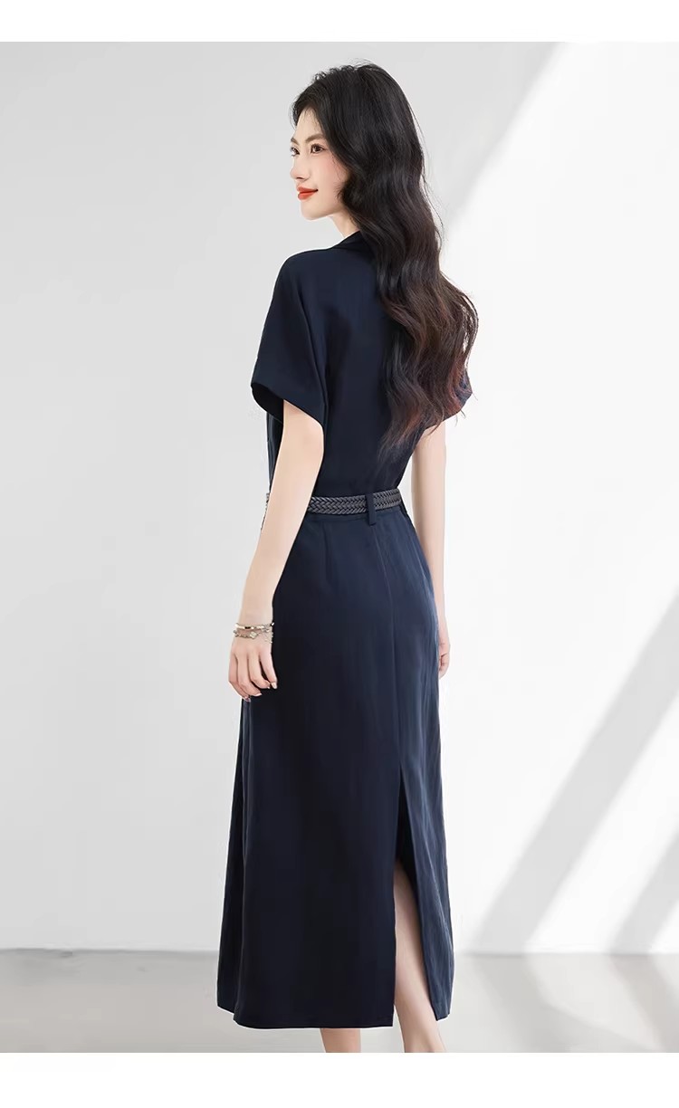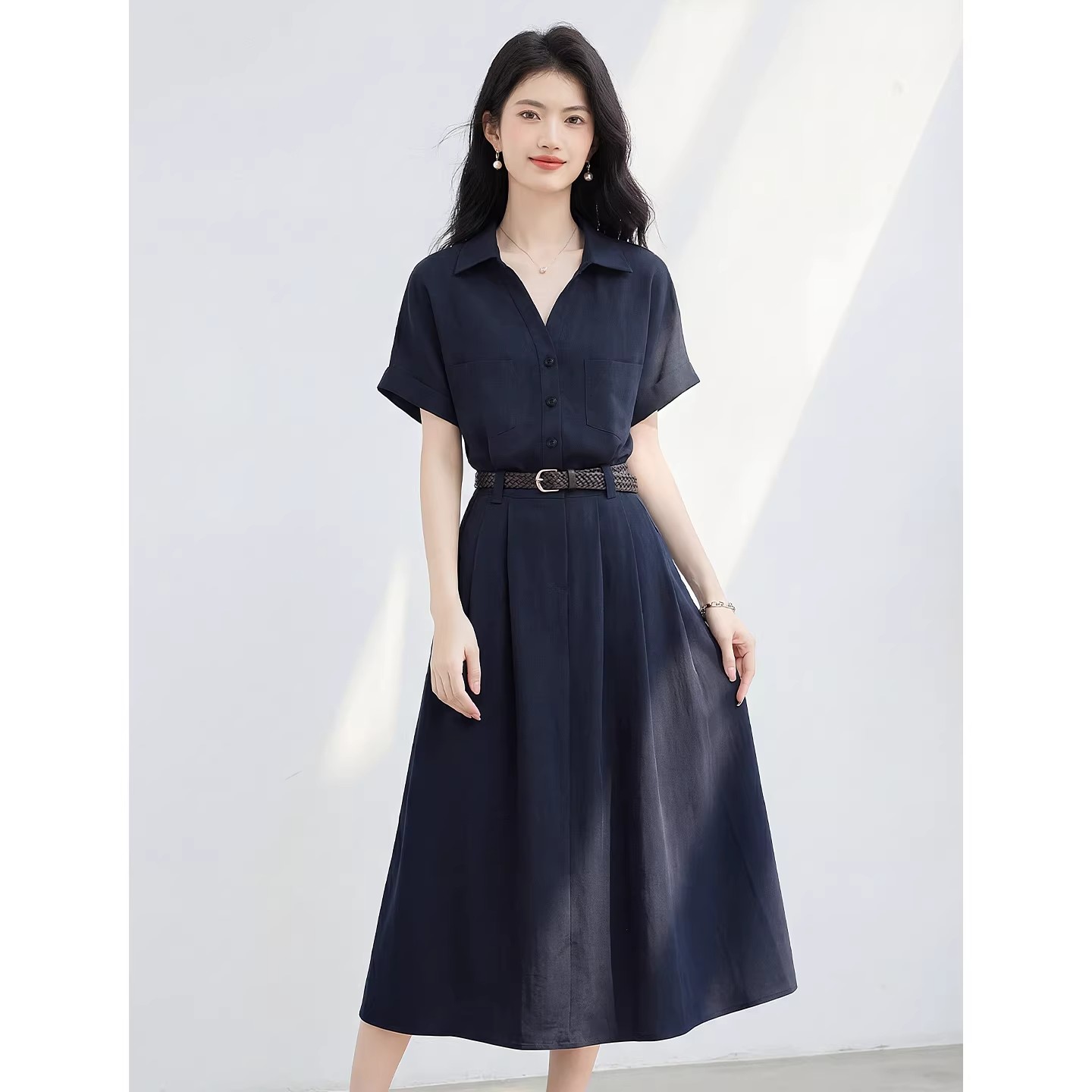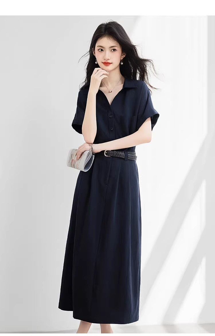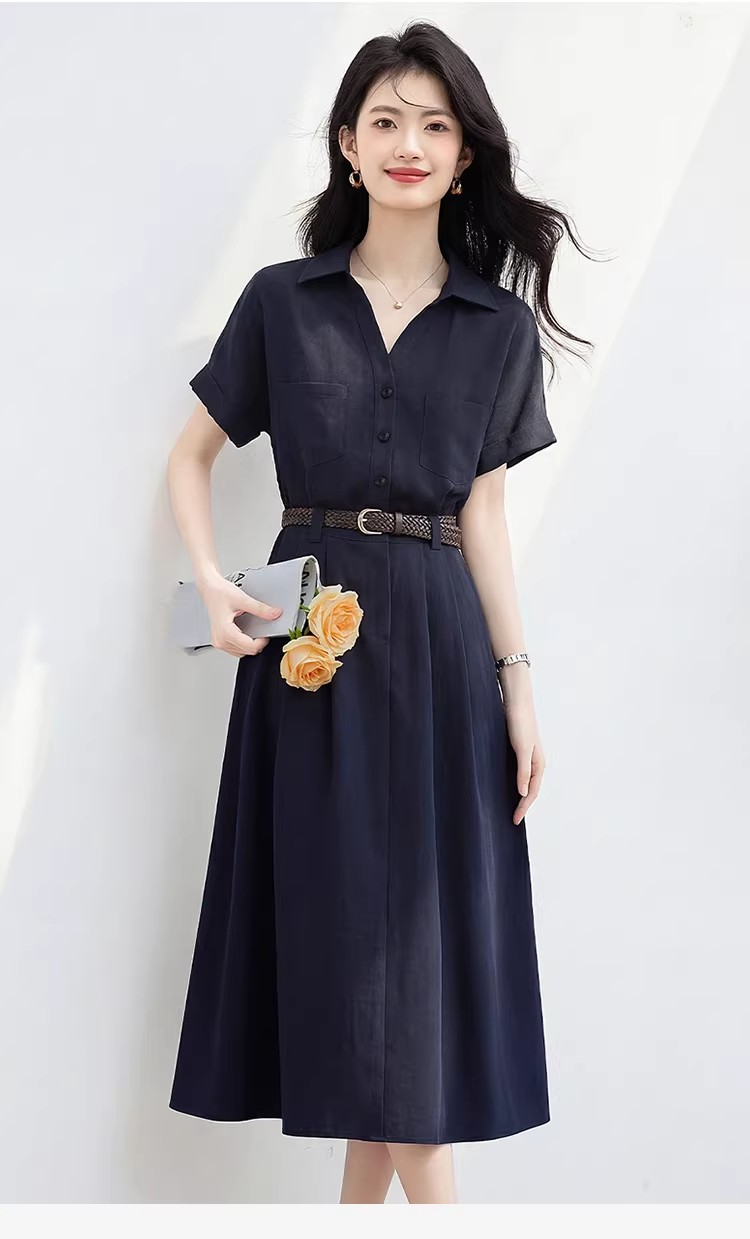 라이 경기 서울 반팔 아마 셔츠 여성 드레스 2026 여름 새로운 품격 몸매 가꾸기 중간 길이 치마