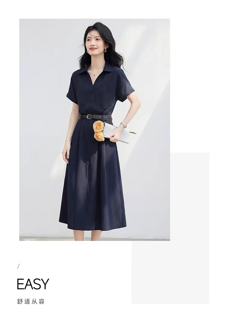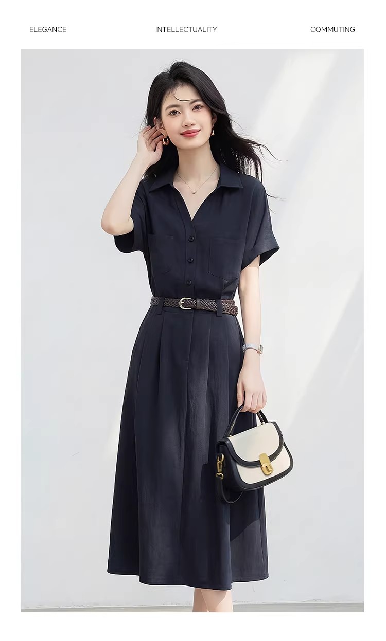반팔 여성 드레스 중간 길이 2026 여름 새로운 빛 사람들 슬림해 보이는 부드러운 바람 품격 셔츠 치마