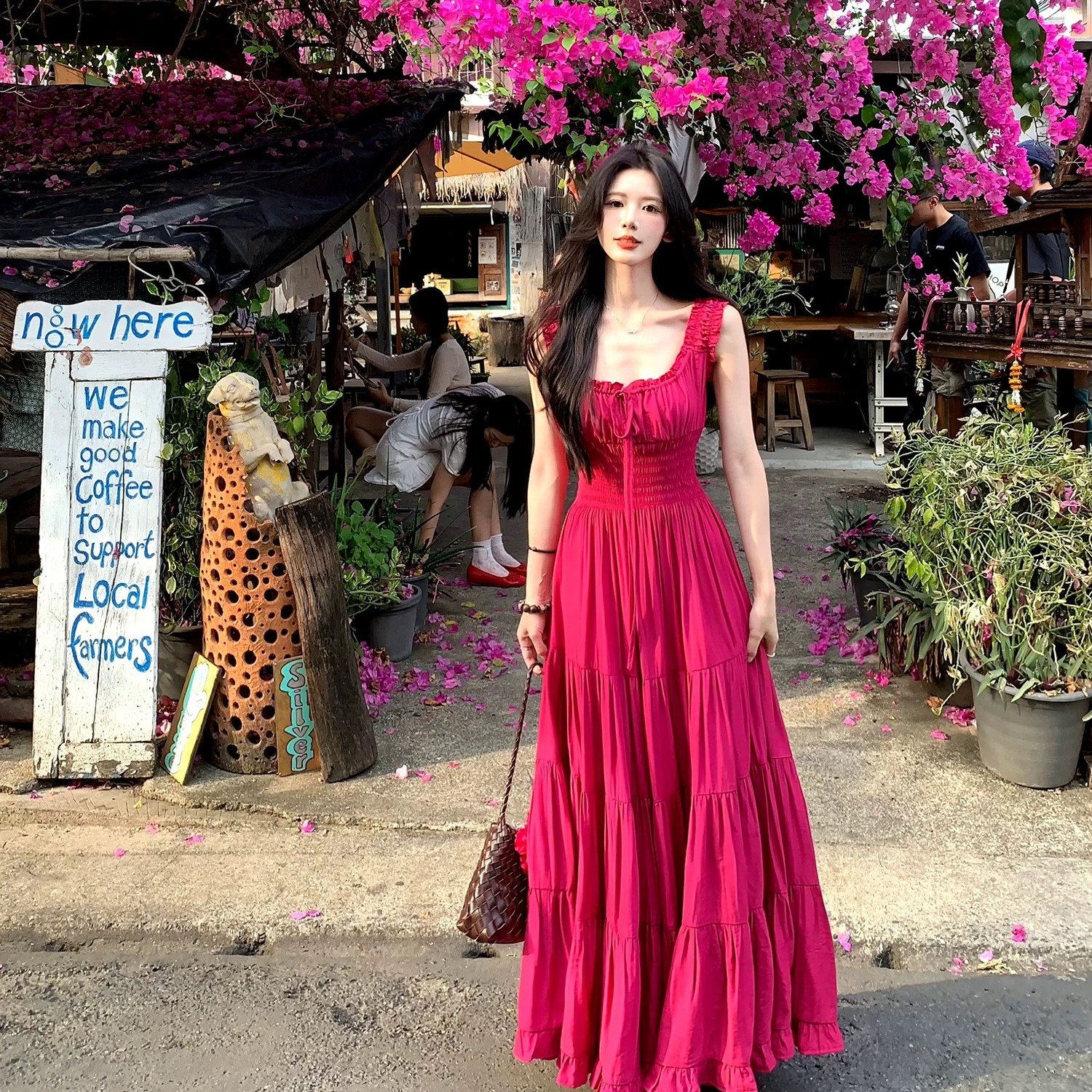 하나 달콤한 복숭아 yikett 플러그 Na 꽃 집 해변가 착용 가져 가라. 꼬집기 허리 슬립 여성 드레스 여름 원피스 치마