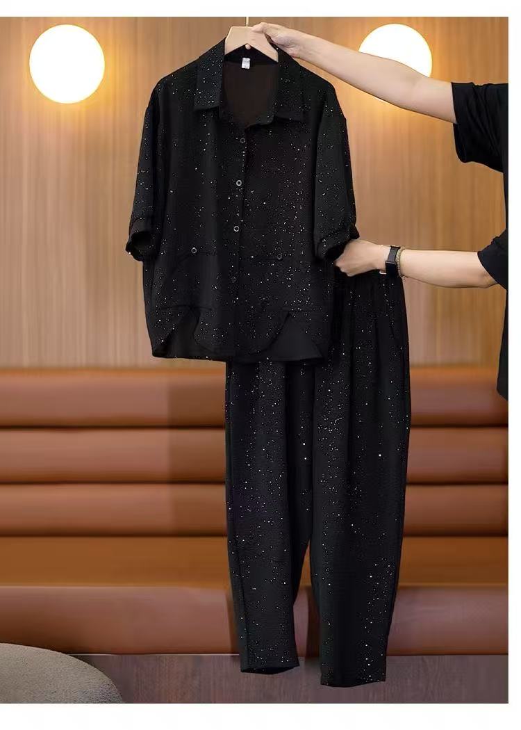 2026 여름 새로운 빅 사이즈 외국 가스 세트 패션 루즈핏 표지 고기 슬림해 보이는 연령 감소 투피스 세트