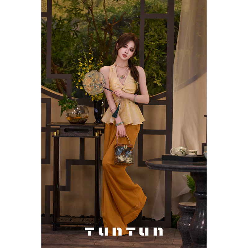 삼키기 tunt 봄 여름 20 치파오 새로운 중식 개선 다림질 금박 자카드 작은 스탠드 칼라 민소매 드레스