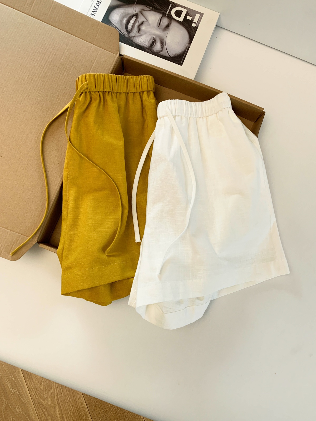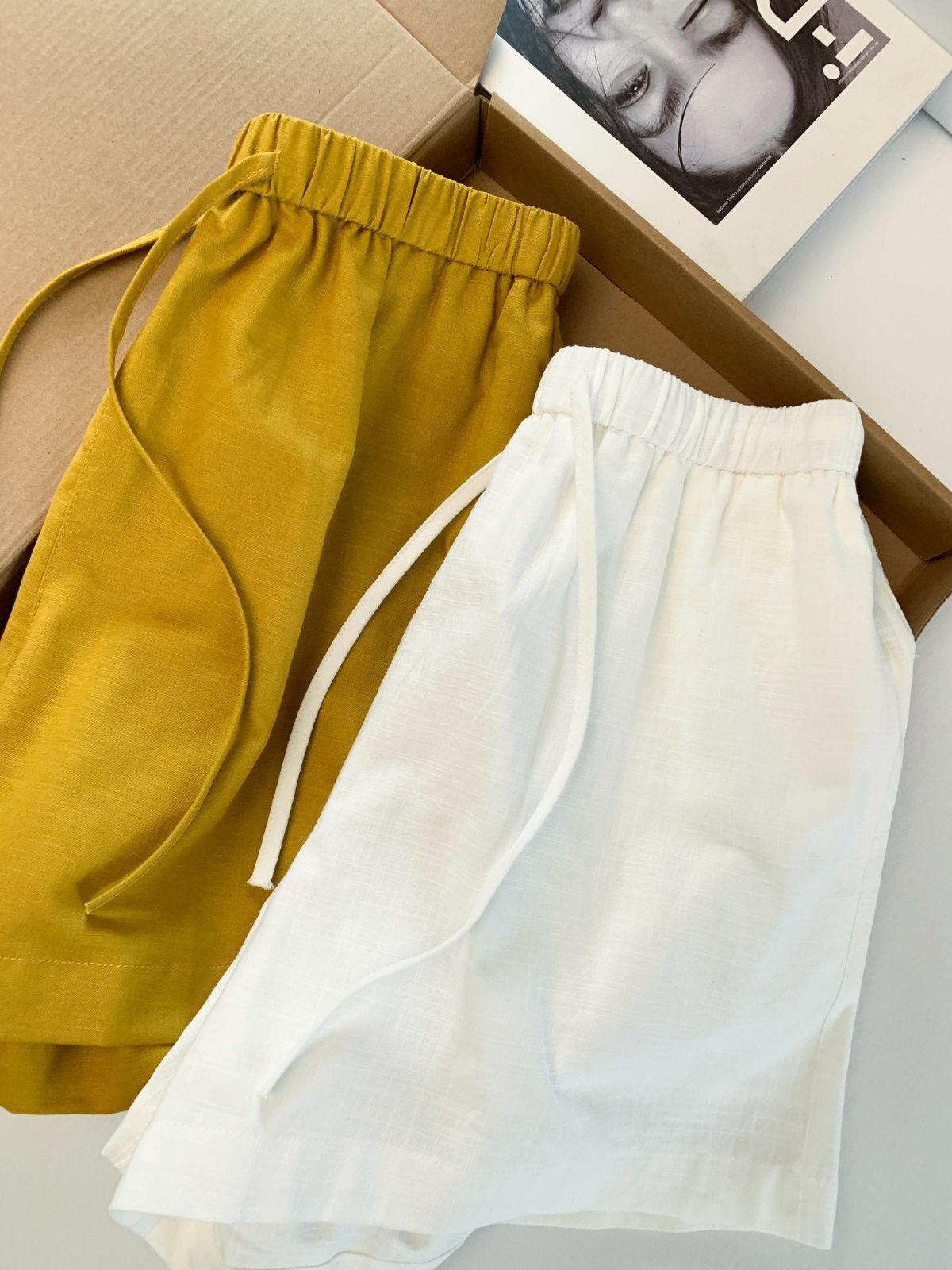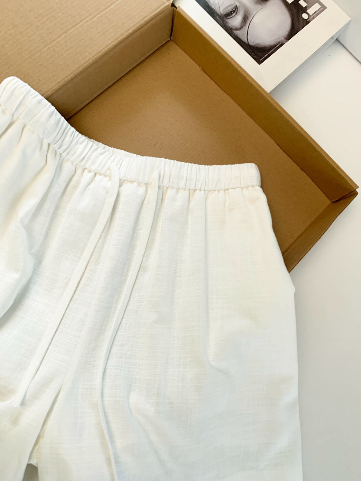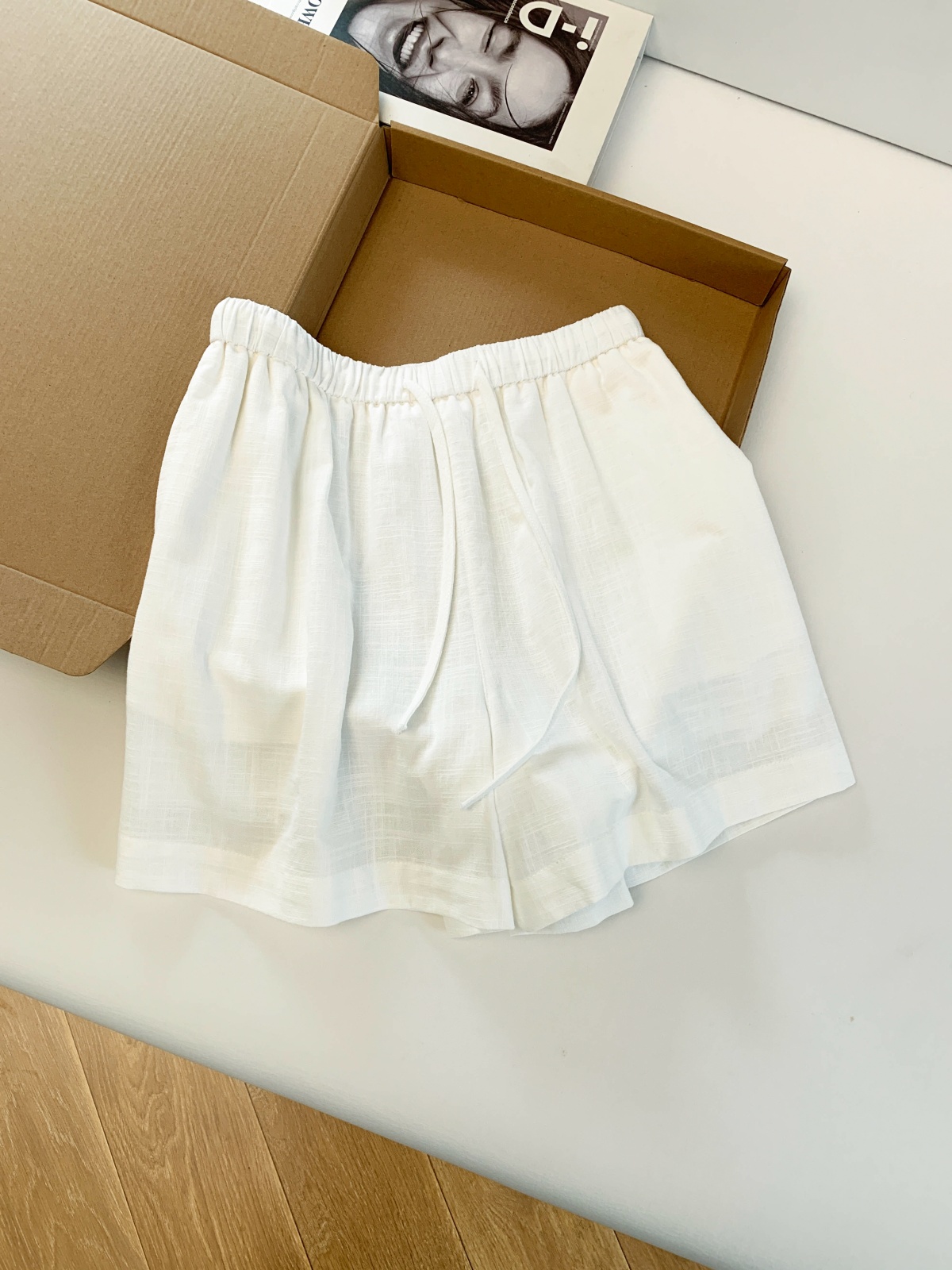 화이트 아마 반바지 여성 여름 2026 새로운 작은 키 루즈핏 슬림해 보이는 허리밴드 한 마디 캐주얼 와이드 레그 팬츠