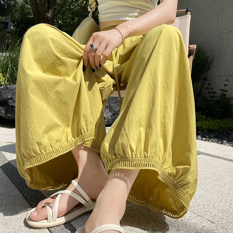 여름 새로운 루즈핏 풍선 바지 와이드 레깅스 바지 한국 스타일 느긋한 바람 하이웨이스트 패치워크 캐주얼 바지 바지