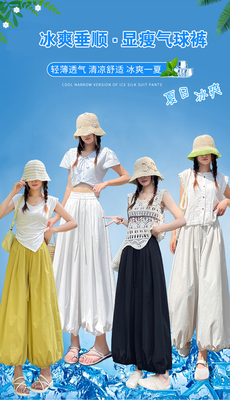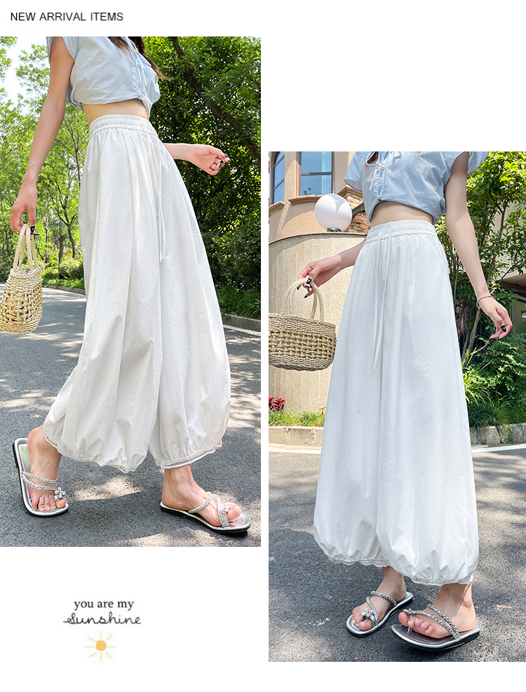 화이트 야마모토 바지 아이들 여름 얇은 스타일 도루 센스 자외선 차단 루즈핏 와이드 레그 팬츠 스트레이트 캐주얼 긴 바지