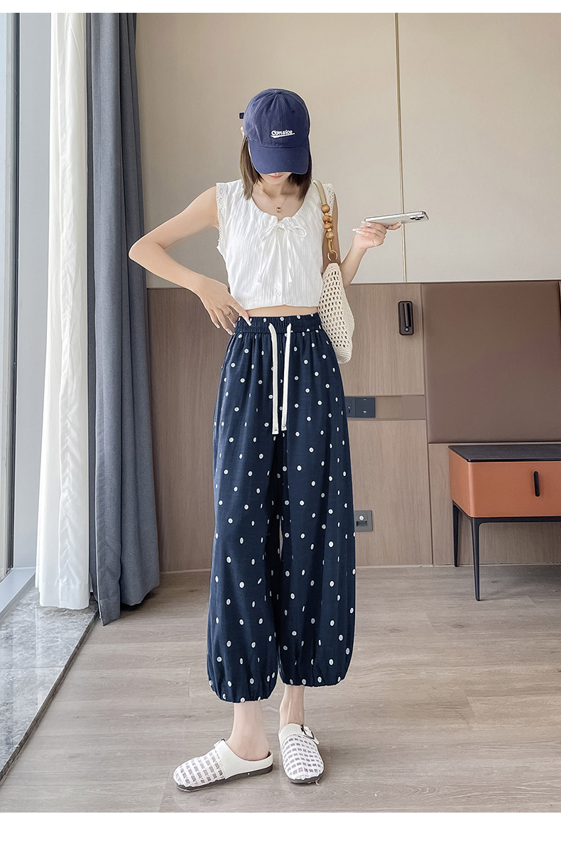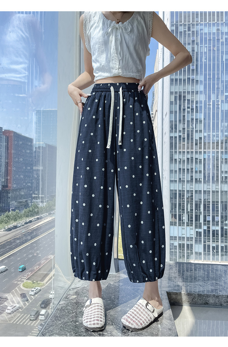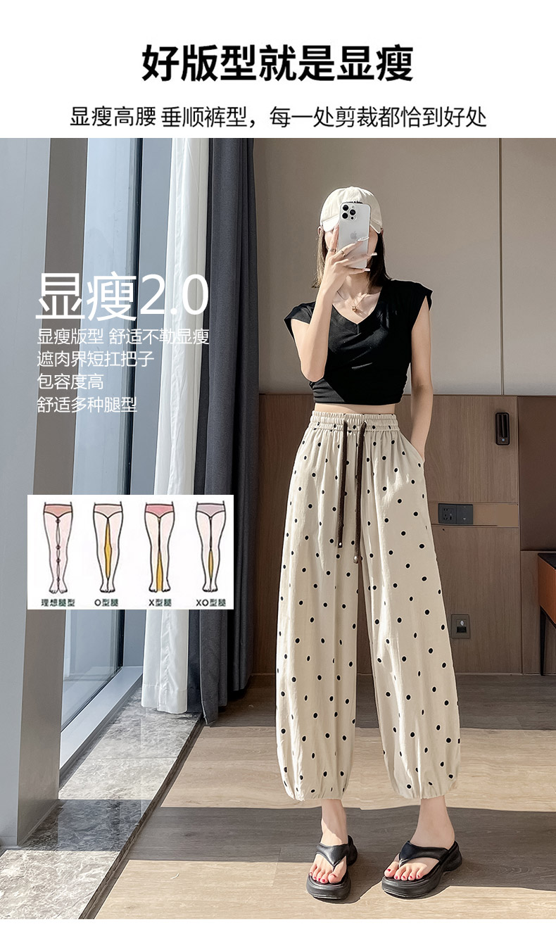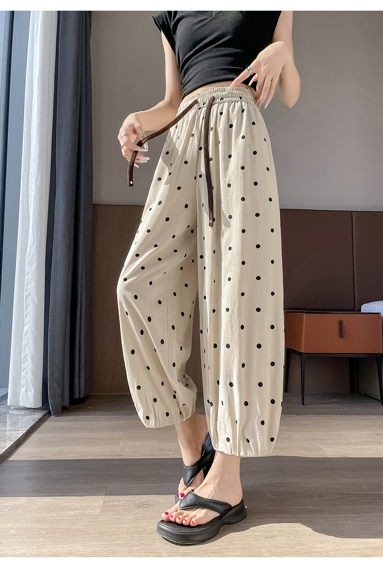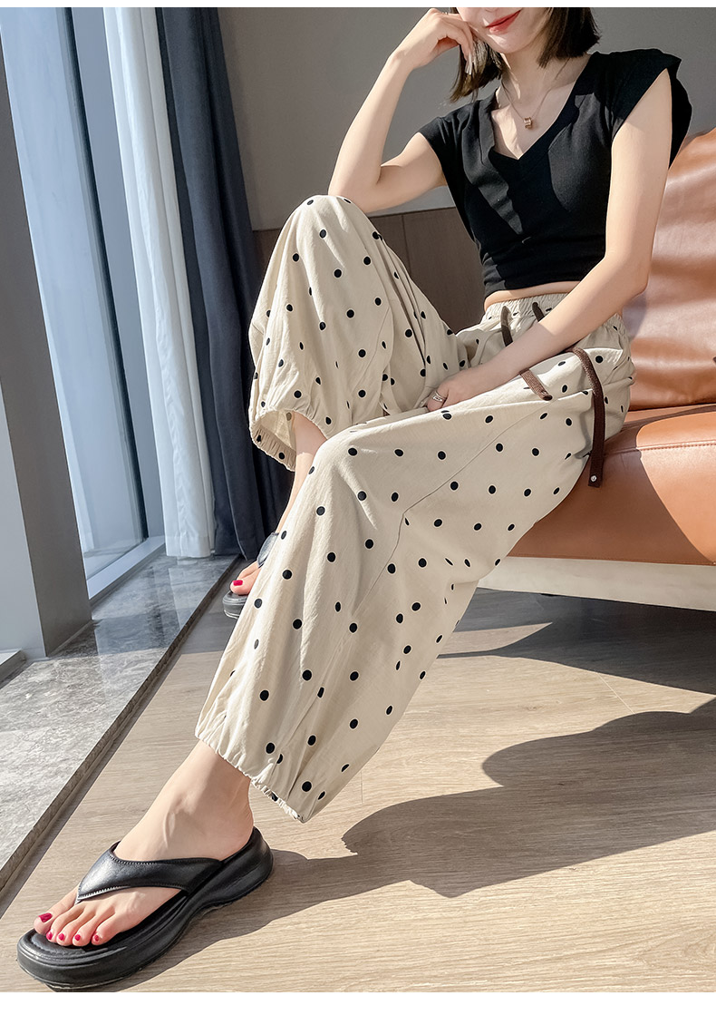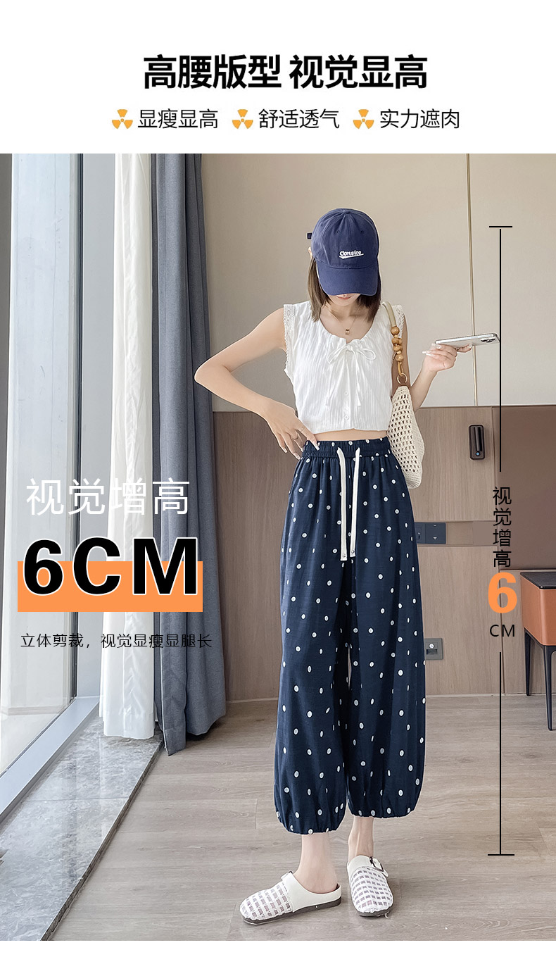 루즈핏 표지 넓적 다리 와이드 레깅스 바지 도트 무늬 통기성 캐주얼 바지 여름 작은 키 하이웨이스트 슬림해 보이는 얇은 스타일 9 포인트 스트레이트 팬츠