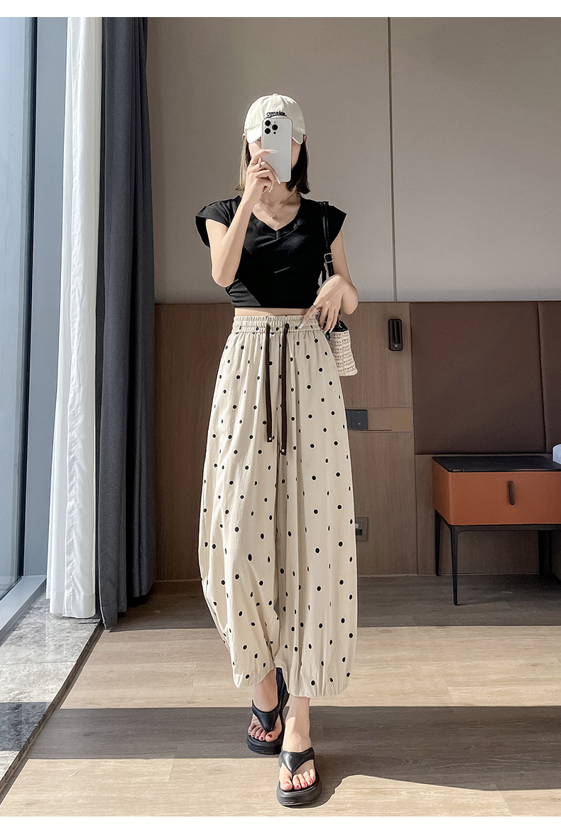 도트 무늬 와이드 레그 팬츠 치마 여성 느긋한 바람 캐주얼 바지 여름 얇은 스타일 도루 센스 루즈핏 스트레이트 롱 바지