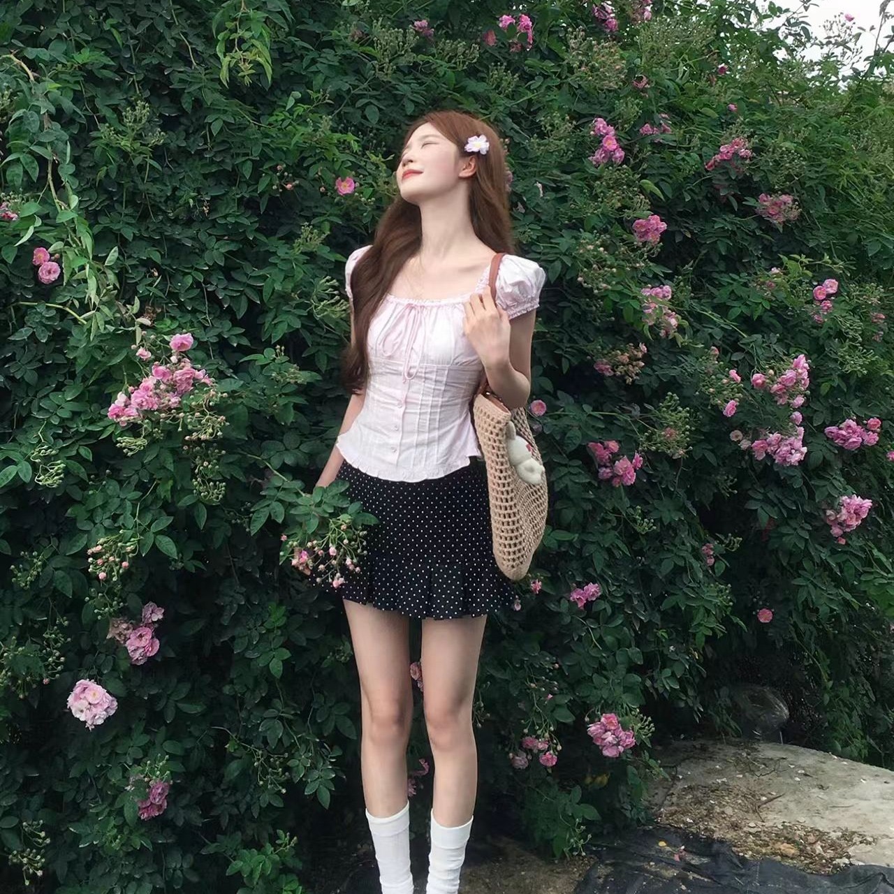 초기 꿈 pokemeng4 29 봄 티 장미 클리어 부서 허리 수축 꽃무늬 일본식 부드러운 드레스 롱 스커트
