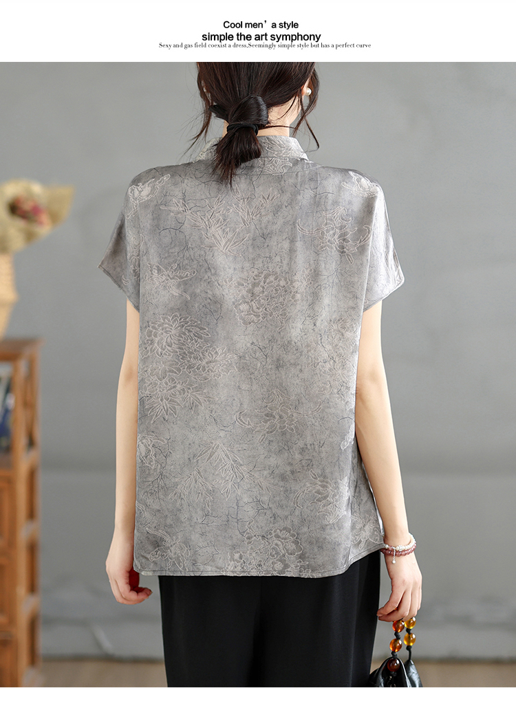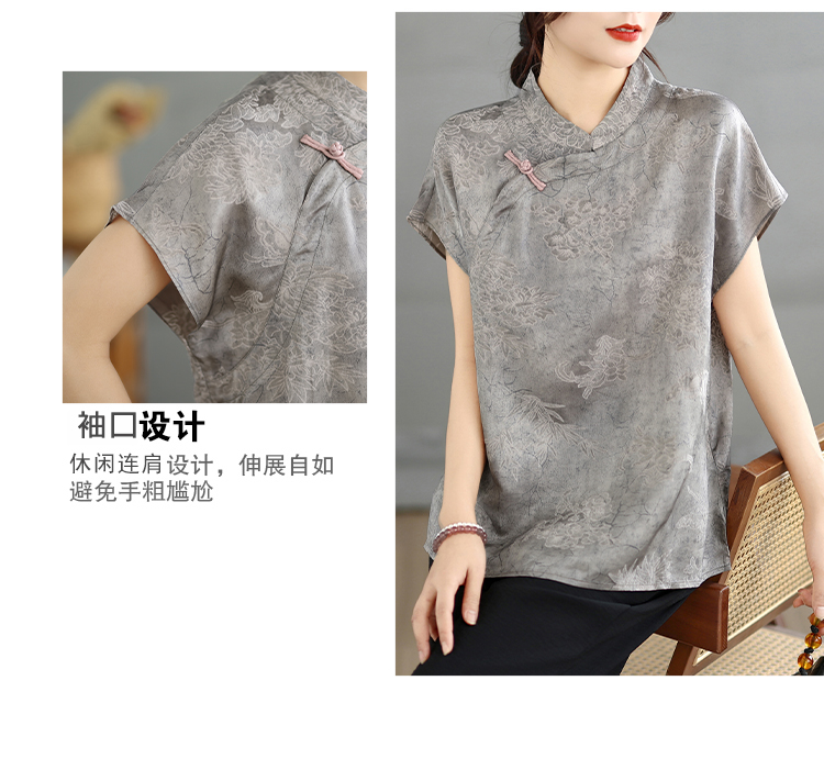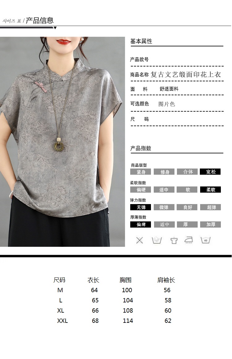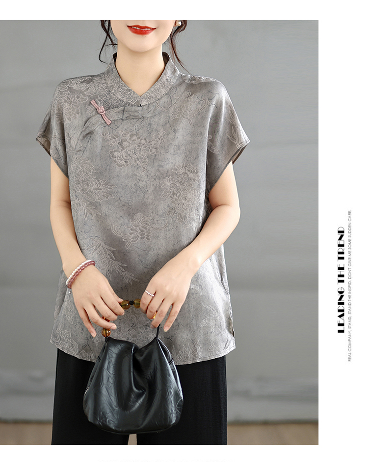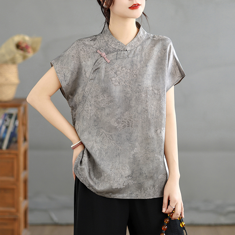 자카드 새틴 비스듬한 襟 단추 Feifei 소매 스탠드 칼라 작은 셔츠 맨위 여성 빅 사이즈