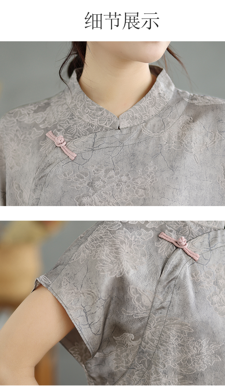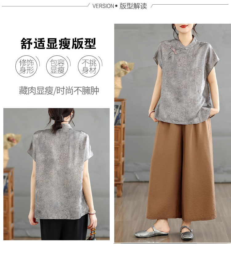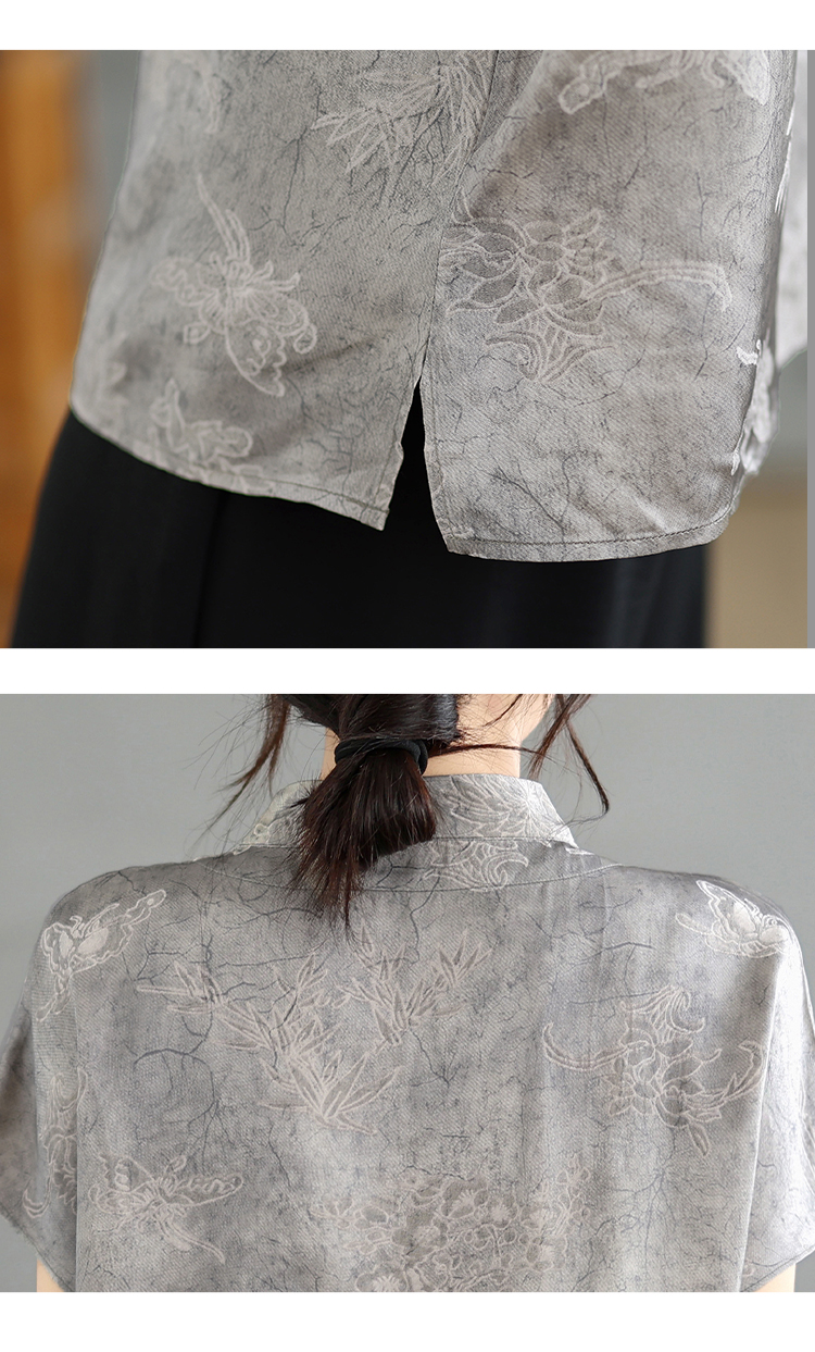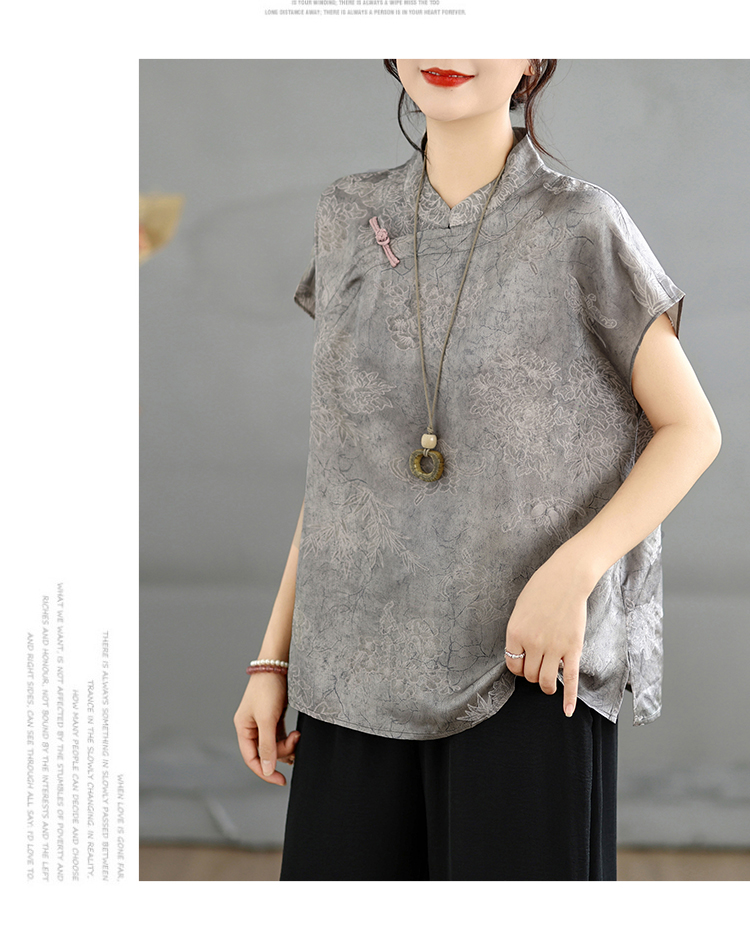 자카드 새틴 비스듬한 襟 단추 Feifei 소매 스탠드 칼라 작은 셔츠 맨위 여성 빅 사이즈
