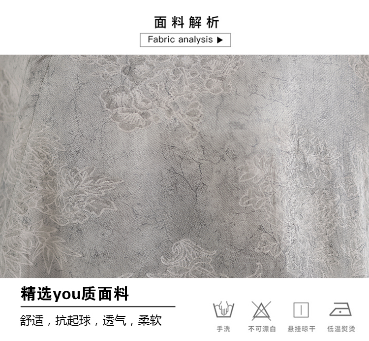 3928 일본식 좋은 제직 면 꽃무늬 셔츠 칼라 드레스 부드러운 품격 루즈핏 가을 어깨 소매 꽃무늬 중간 길이 스커트