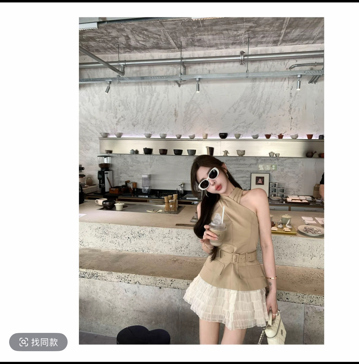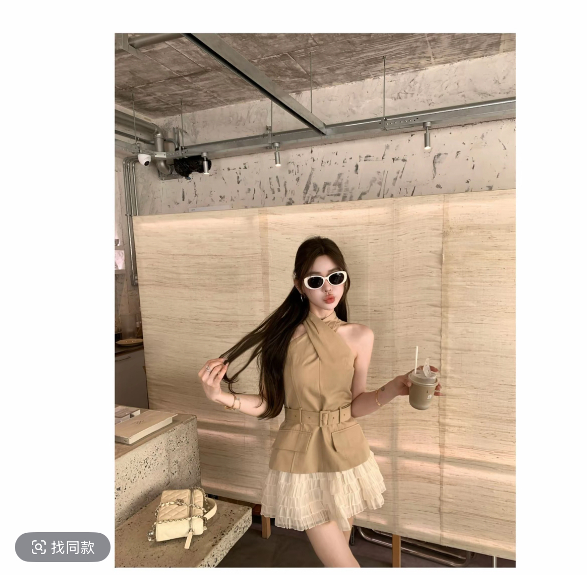 쌀 Na 홈 감기 원 웨이 카키 색 십자가 벨트 조끼 베이지 색 쉬폰 무거운 작업 층 반 스커트