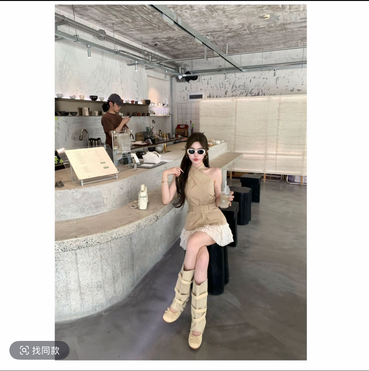 miu 부서 아름다움 세트 그룹 V넥 캐미솔 레이스 여성 드레스 여름 감기 바람 구덩이 기사 맨위 오픈 가디건
