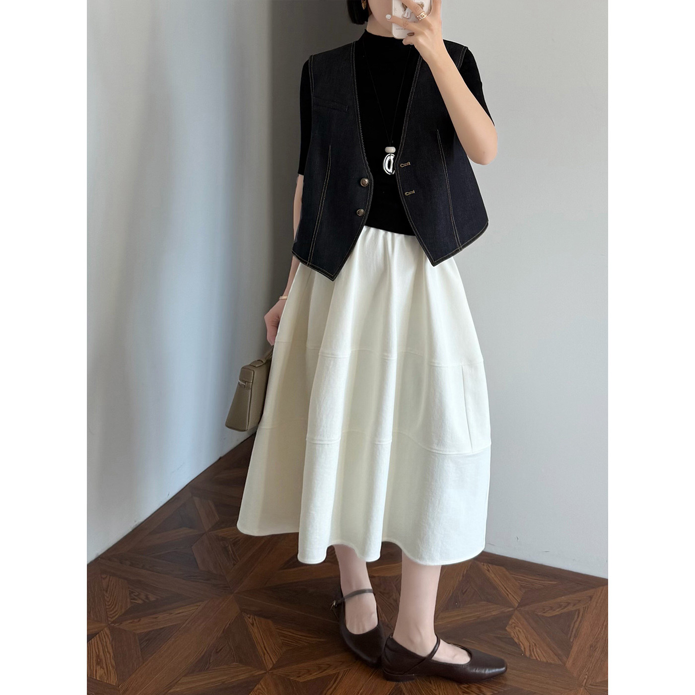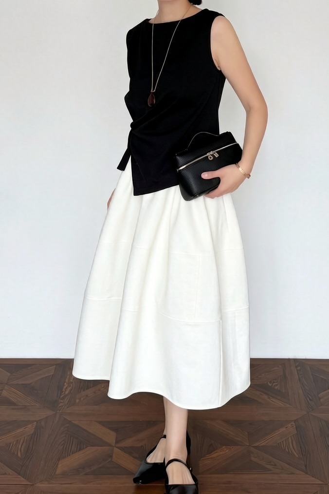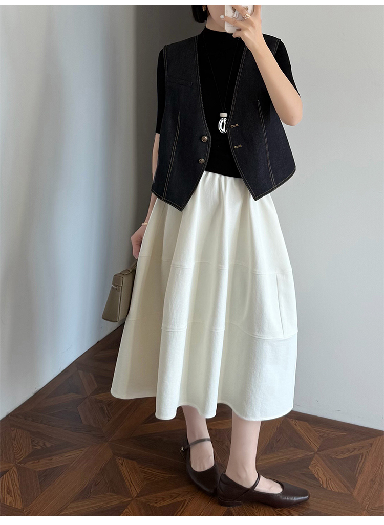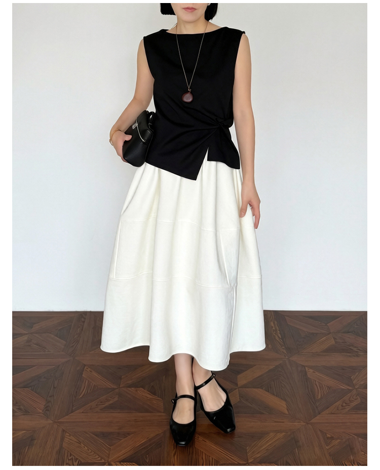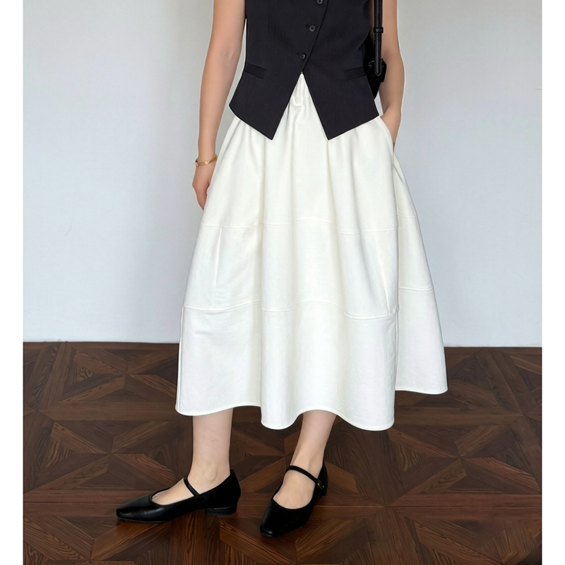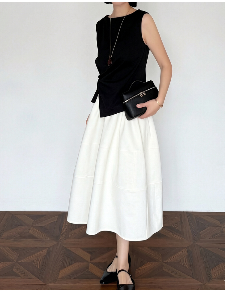 실사 2026 면사 통기성 드레스 문예 레트로 불규칙 중간 길이 스커트
