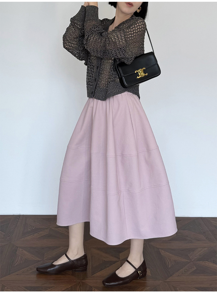 프랑스식 부드러운 바람 딱딱한 꽃밭 반신 스커트 여성 하이웨이스트 중간 길이 가져 오기 중공 실 한 마디 우산 치마