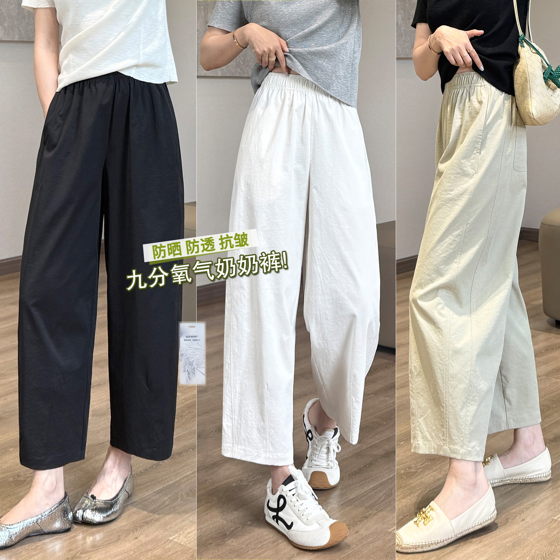 저항 주름 산소 할머니 바지 서있는 자르다 마이크로 아크 느슨함 9 분 캐주얼 바지 자외선 차단 무료 뜨거운 게으른 바지