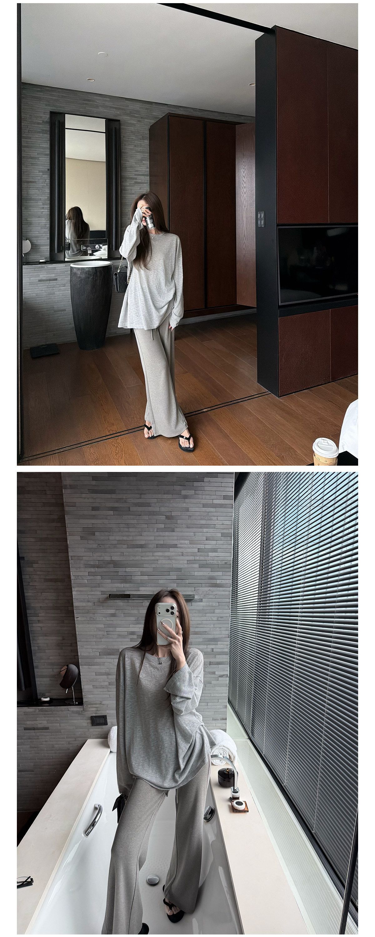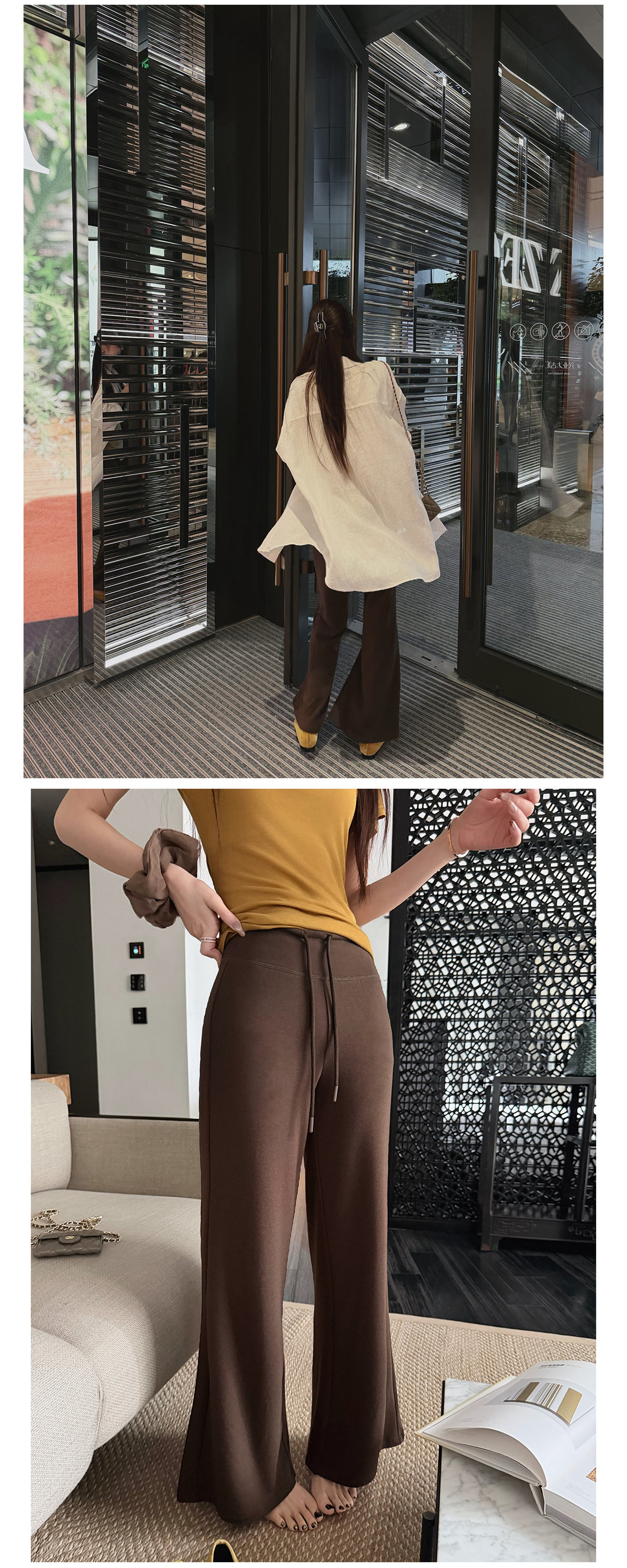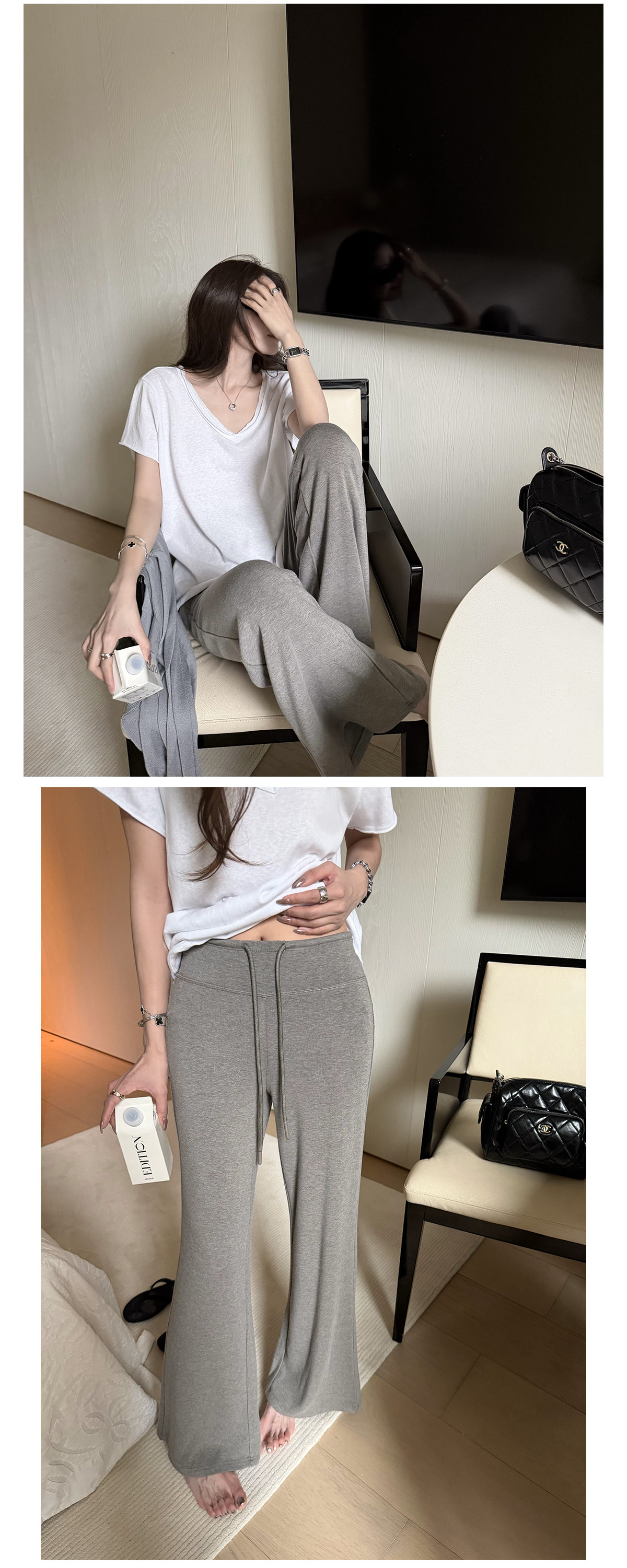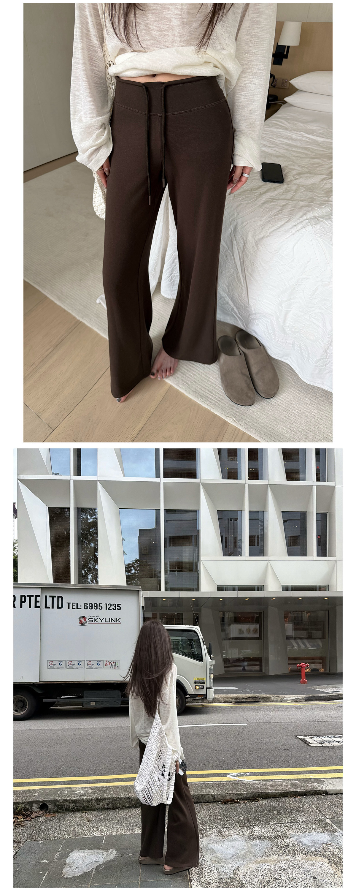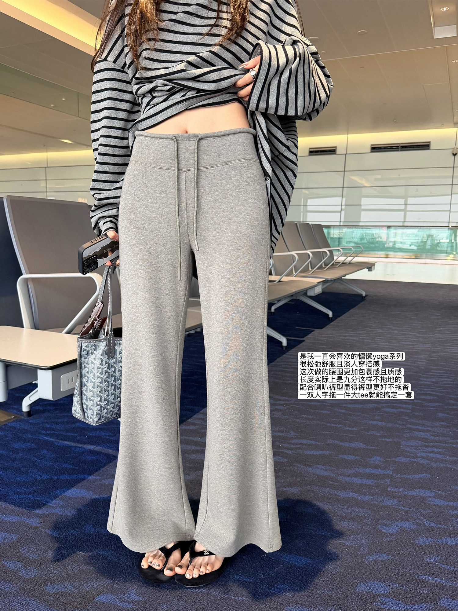 찹쌀 센스 yoga 바지 빛 사람들 착용 가져 가라. 워싱 높음 그램 무거운 모달 슬림해 보이는 중간 허리 부츠컷 느슨함 센스 매우 바지
