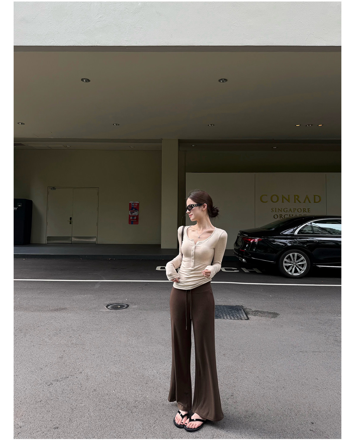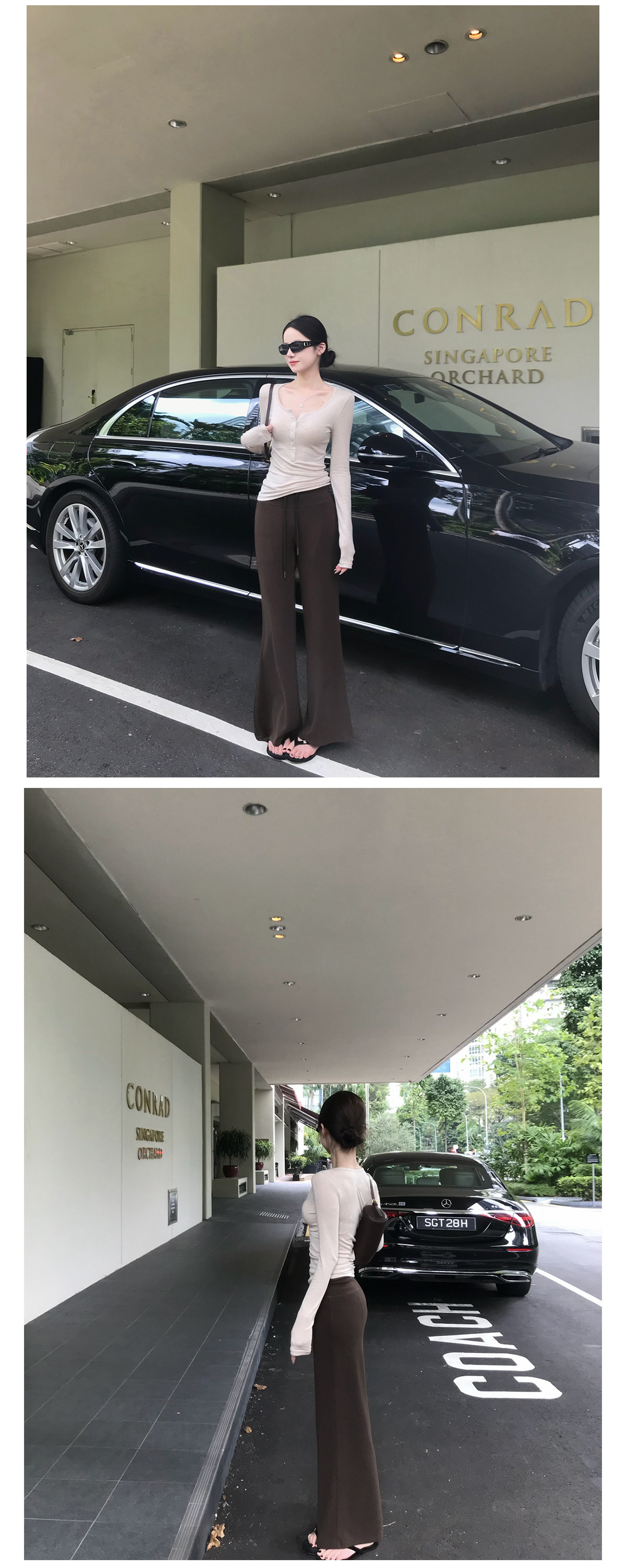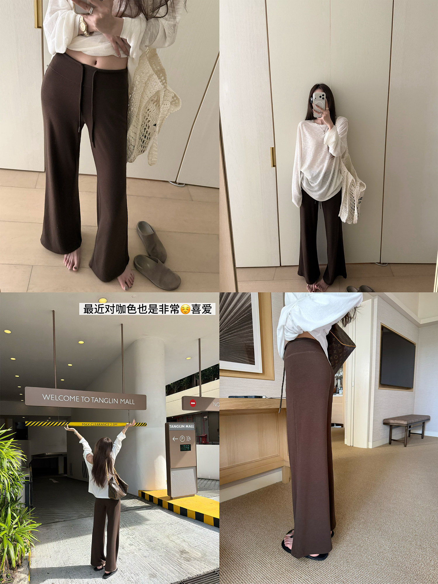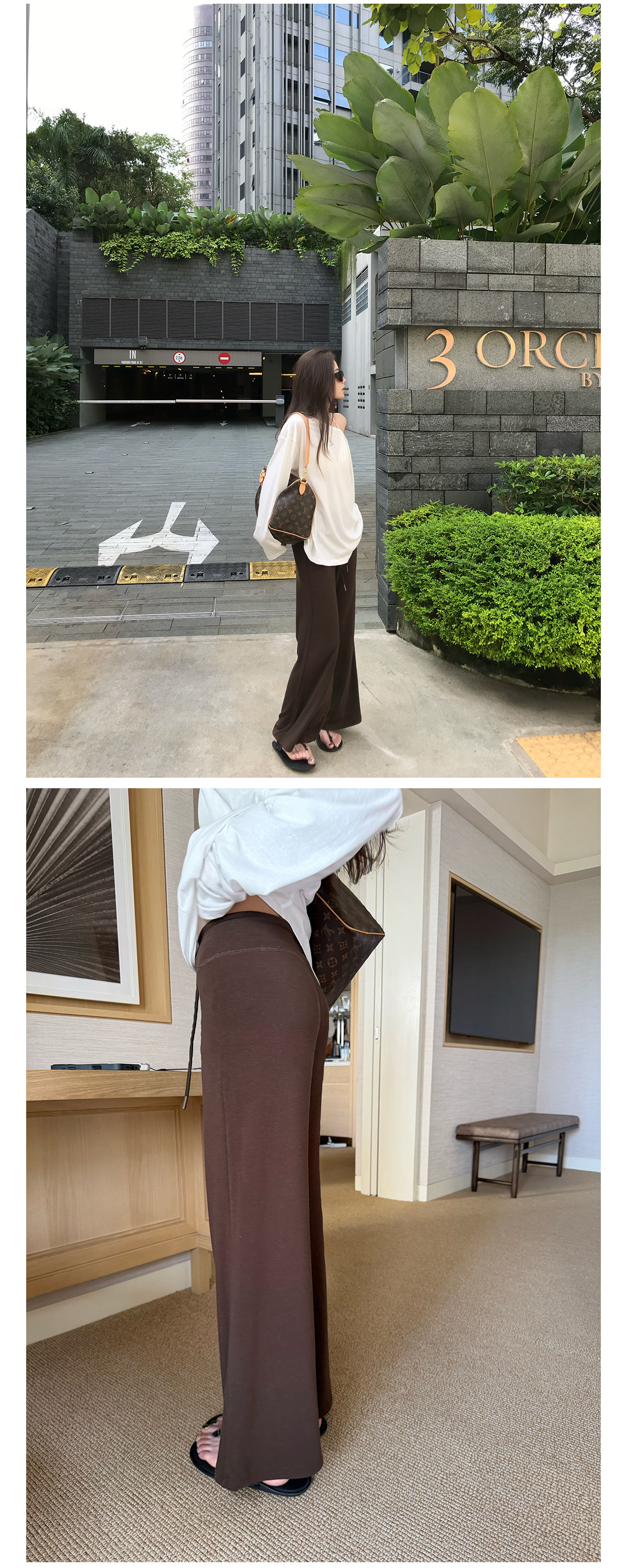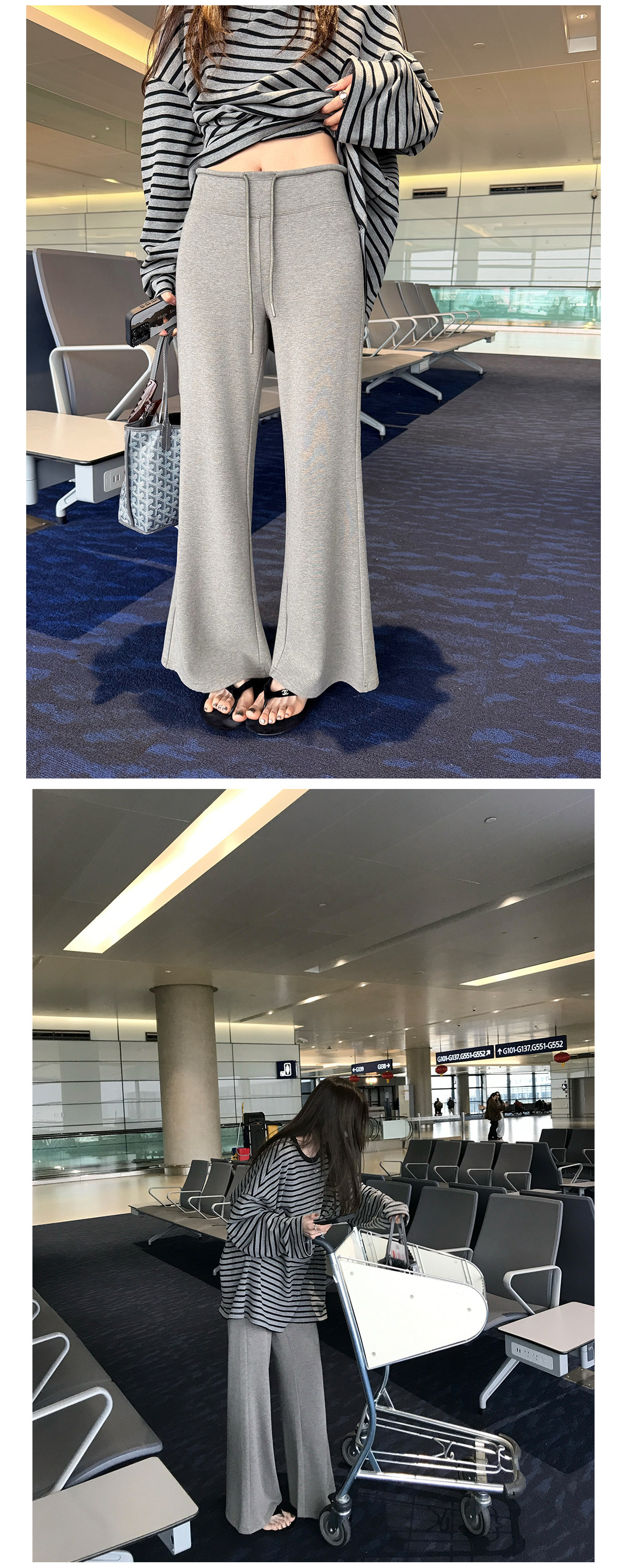 찹쌀 센스 yoga 바지 빛 사람들 착용 가져 가라. 워싱 높음 그램 무거운 모달 슬림해 보이는 중간 허리 부츠컷 느슨함 센스 매우 바지