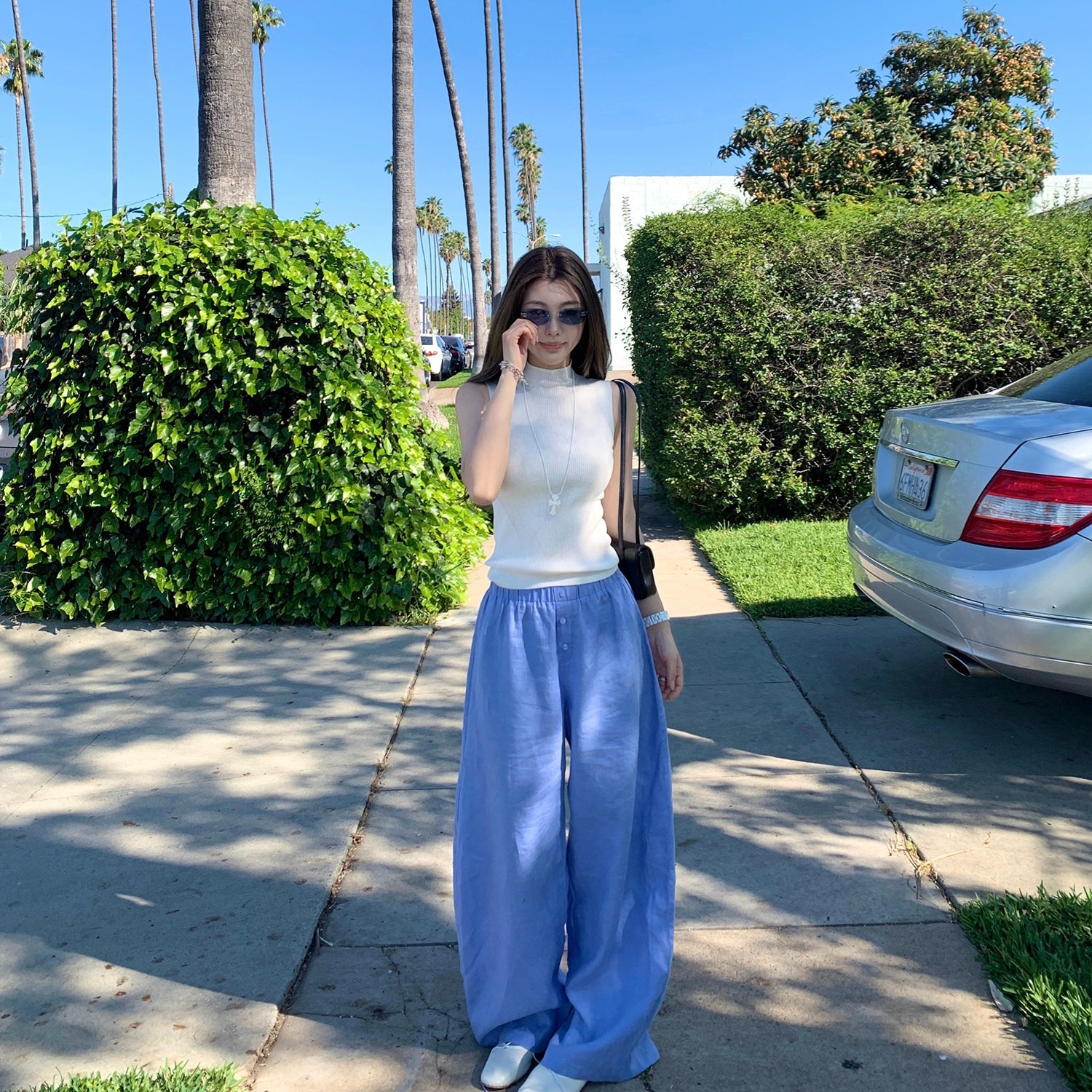 도루 센스 그것 여름 아마 한 부서 여름 새로운 도루 센스 루즈핏 슬림해 보이는 하이웨이스트 넓은 다리 길이 바지