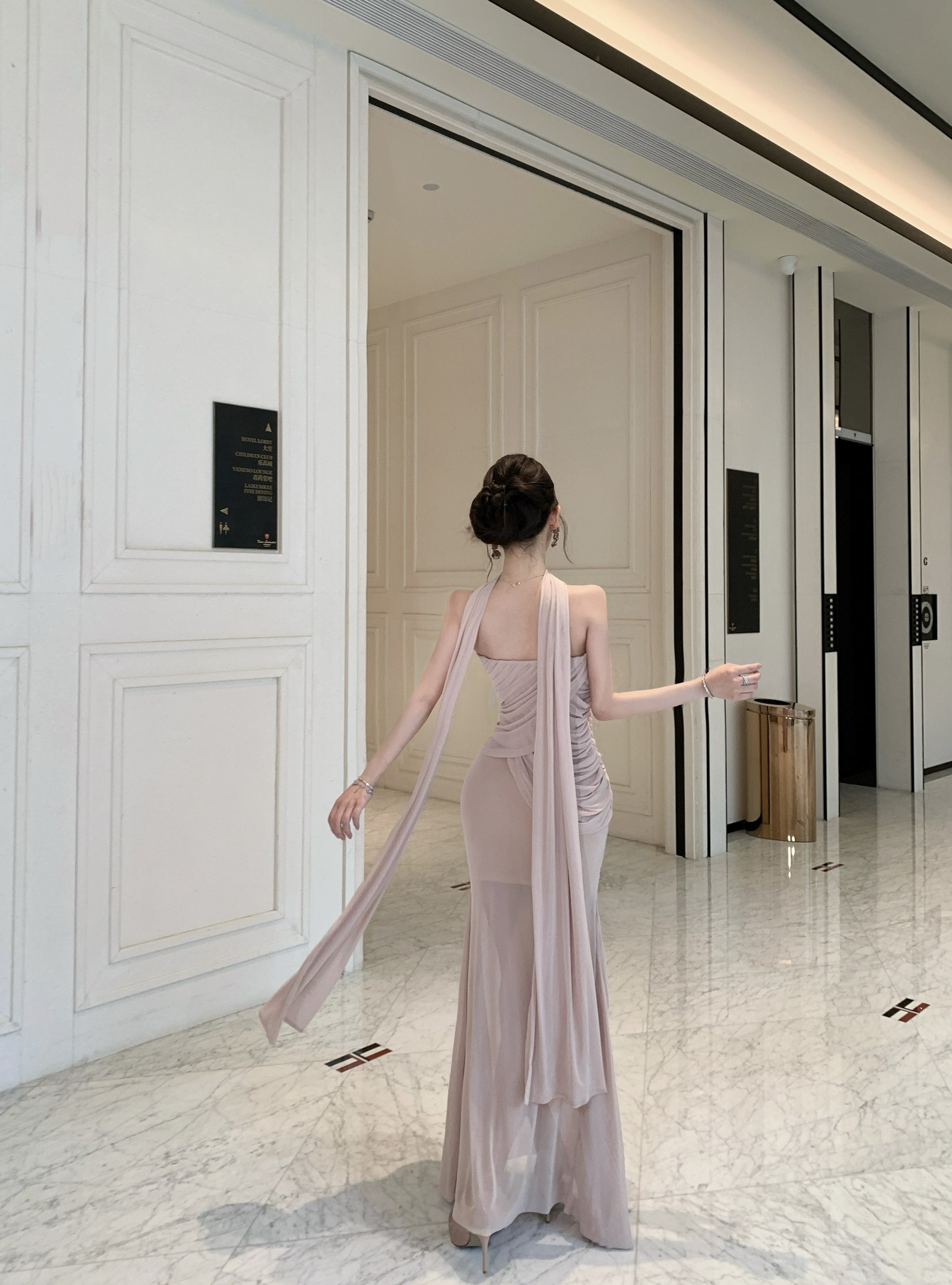 실사 정가 핫걸 고급 센스 무거운 작업 체인 행침 목 이브닝 드레스
