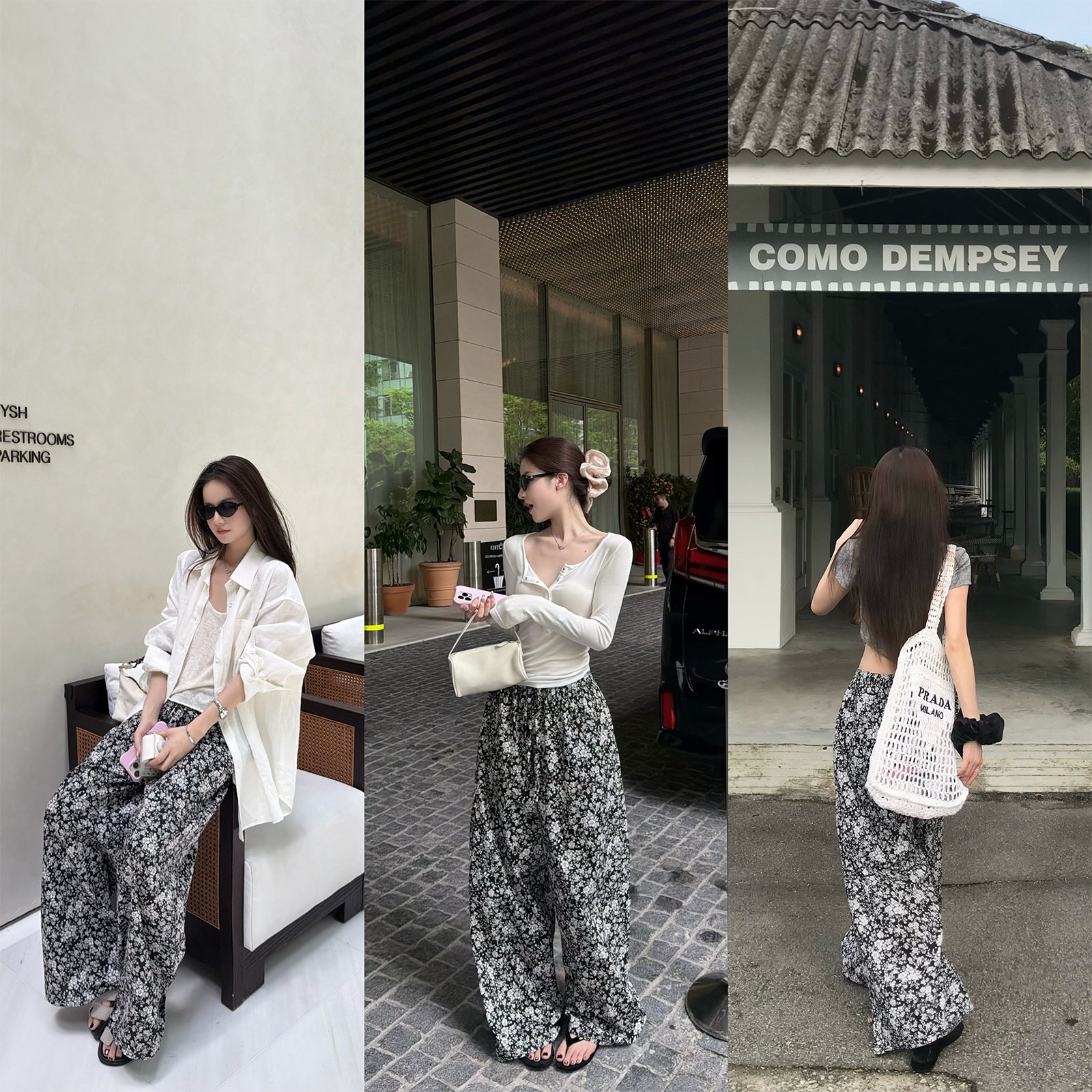 차가운 와이드 레그 팬츠 여름 섹션 캐주얼 얇은 스타일 루즈핏 느긋한 운동 긴 바지