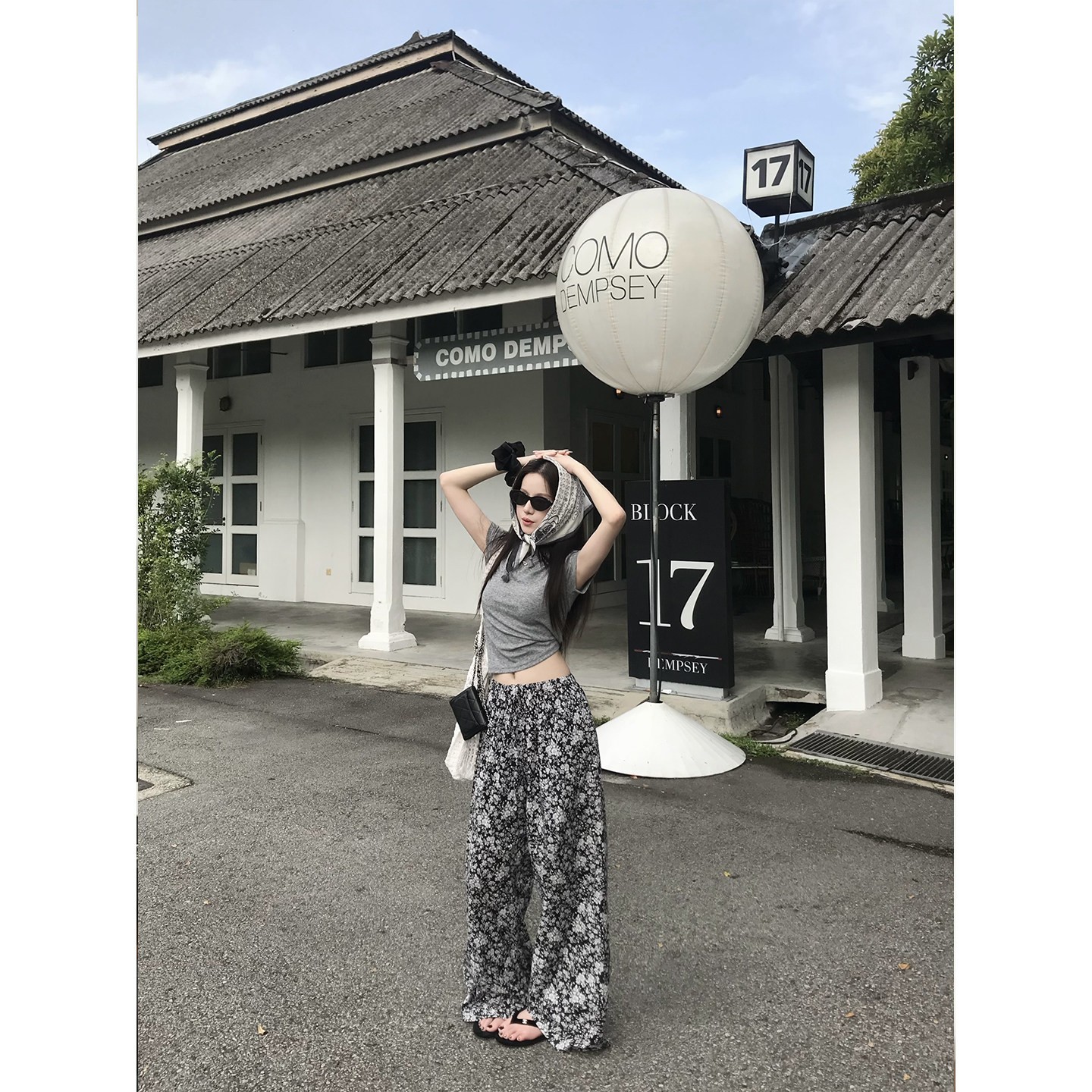 아메리칸 느긋한 느슨함 센스 회색 바지 아이들 여름 얇은 스타일 2026 새로운 하이웨이스트 도루 센스 루즈핏 모통이 칼 와이드 레그 팬츠