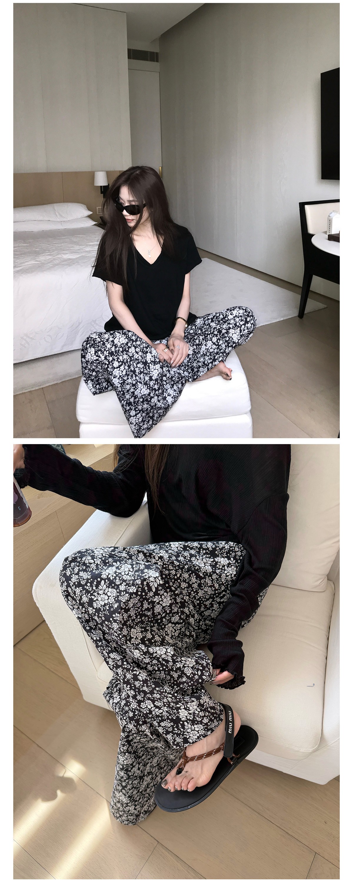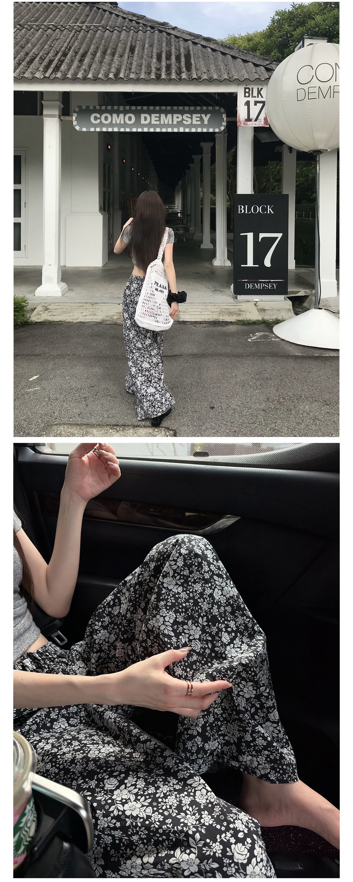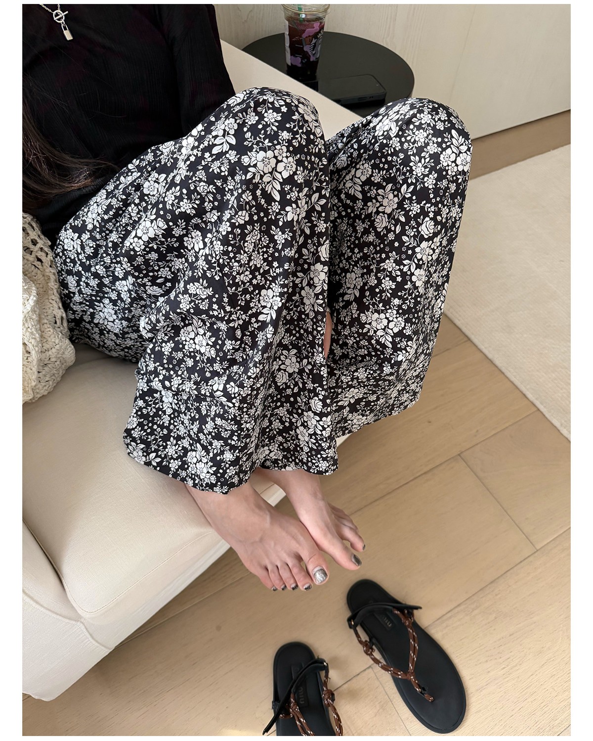 오래된 밖으로 조각 ~ 중 할머니 꽃무늬 바지 흑인과 백인 색상 일치 프린트 익스트림 제인 느슨함 휴가 바람 와이드 레그 팬츠 긴 바지 여성