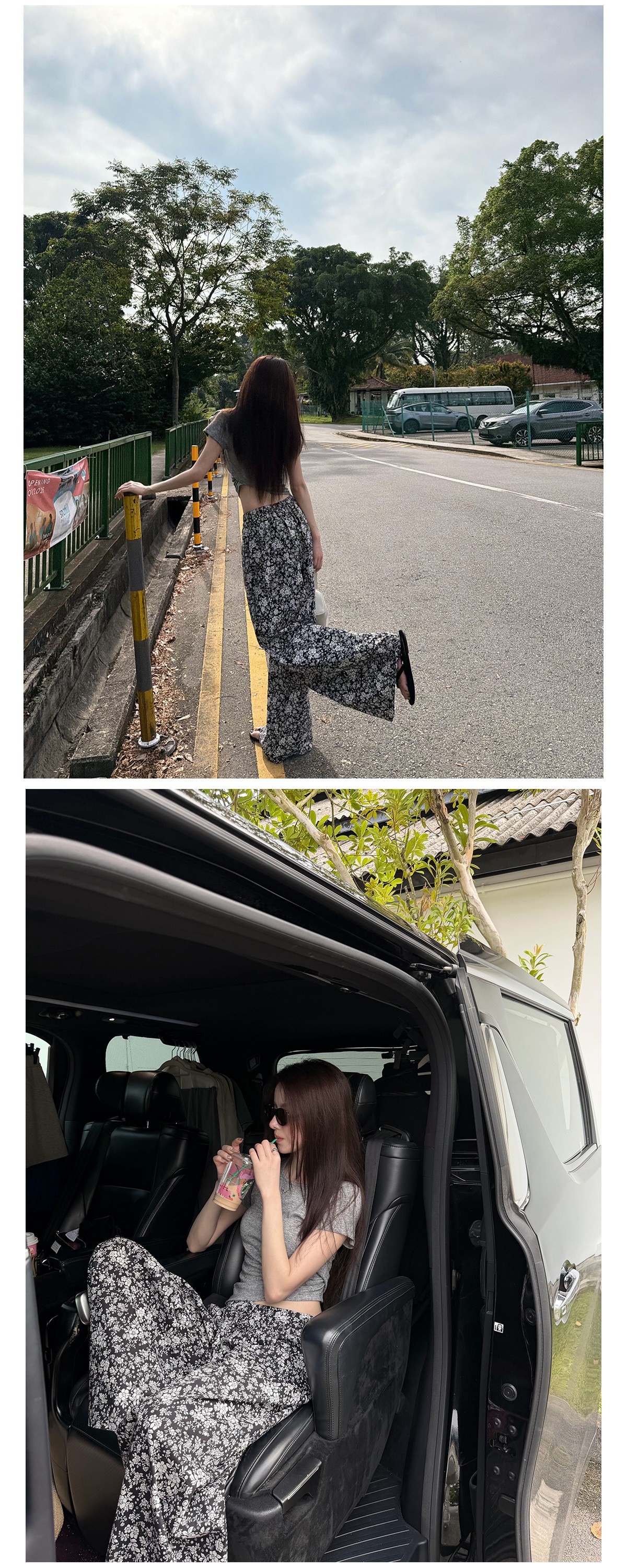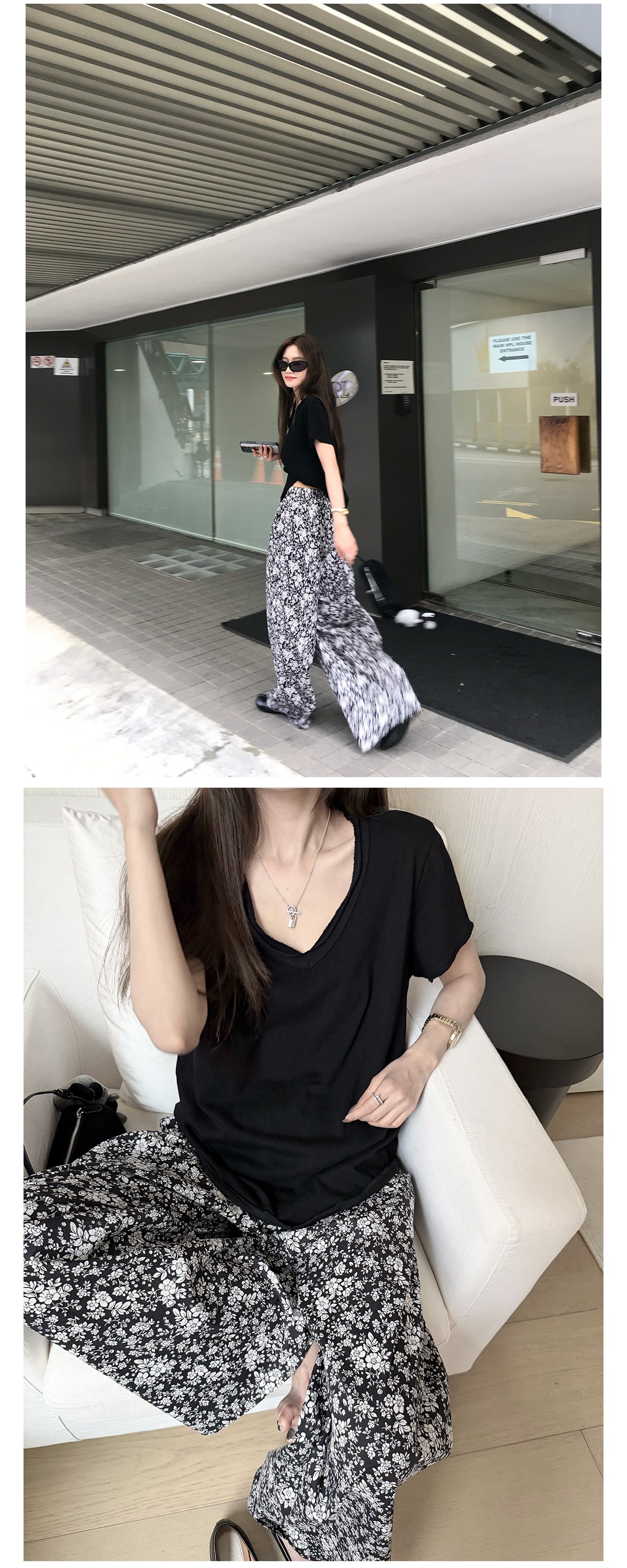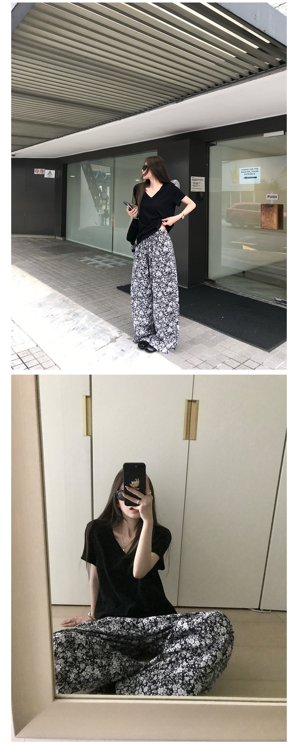 오래된 밖으로 조각 ~ 중 할머니 꽃무늬 바지 흑인과 백인 색상 일치 프린트 익스트림 제인 느슨함 휴가 바람 와이드 레그 팬츠 긴 바지 여성