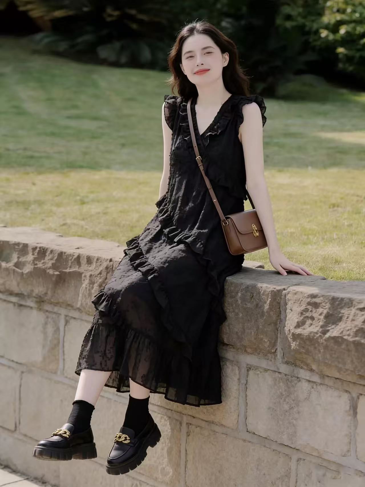 프랑스식 그는 벤 바람 검정색 여성 드레스 여름 자이언트 잘 생긴 ~ 중 작은 키 고급 센스 품격 민소매 조끼 스커트