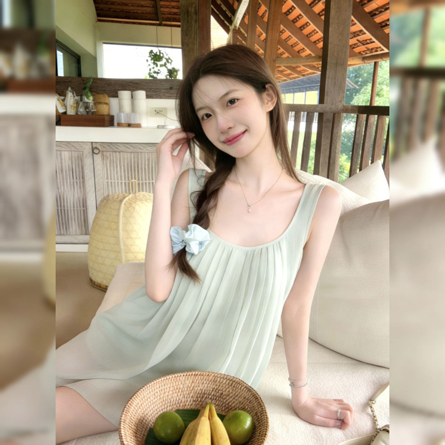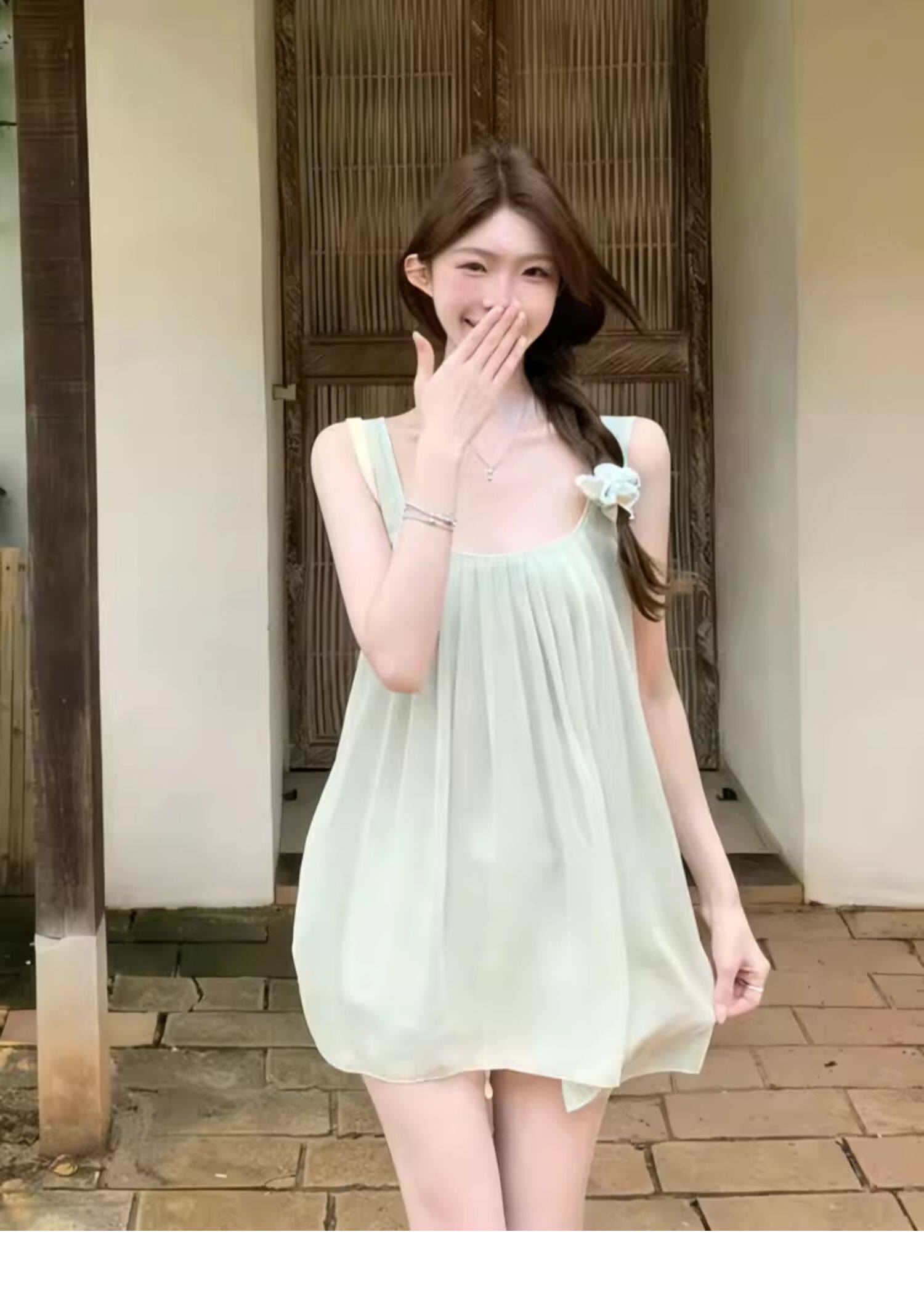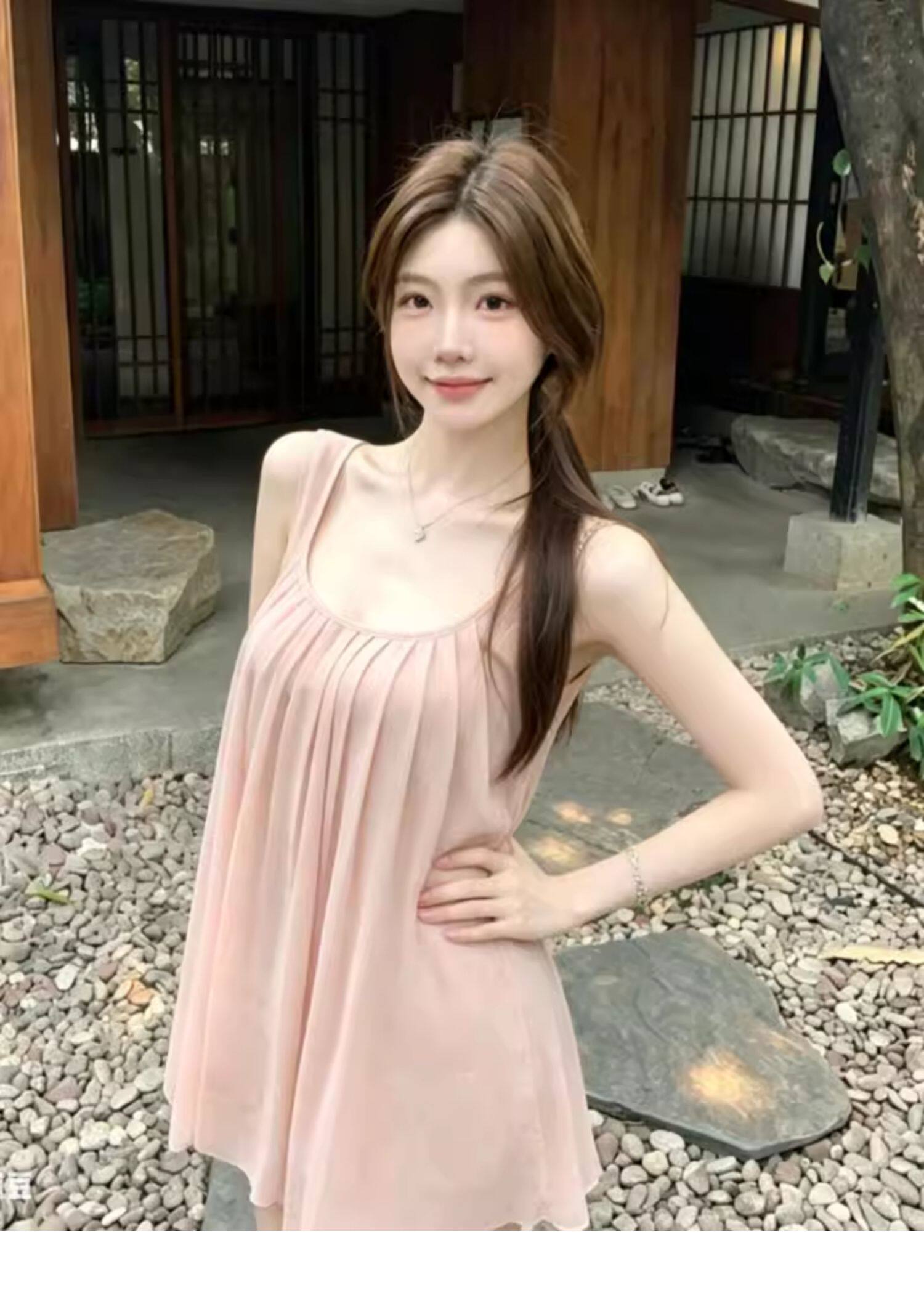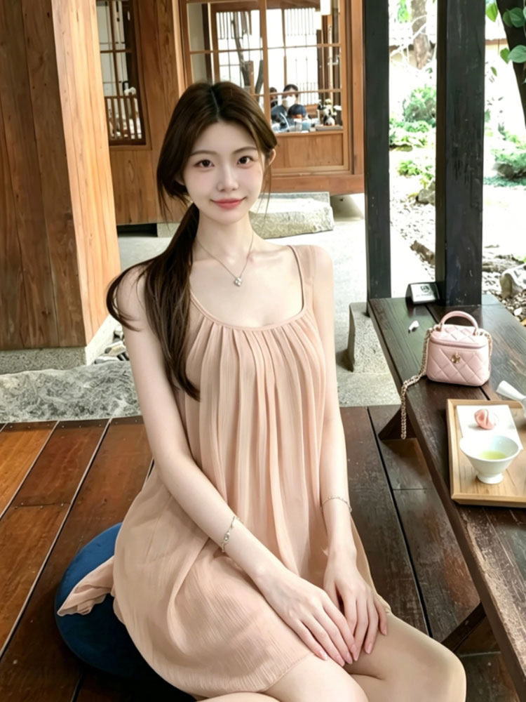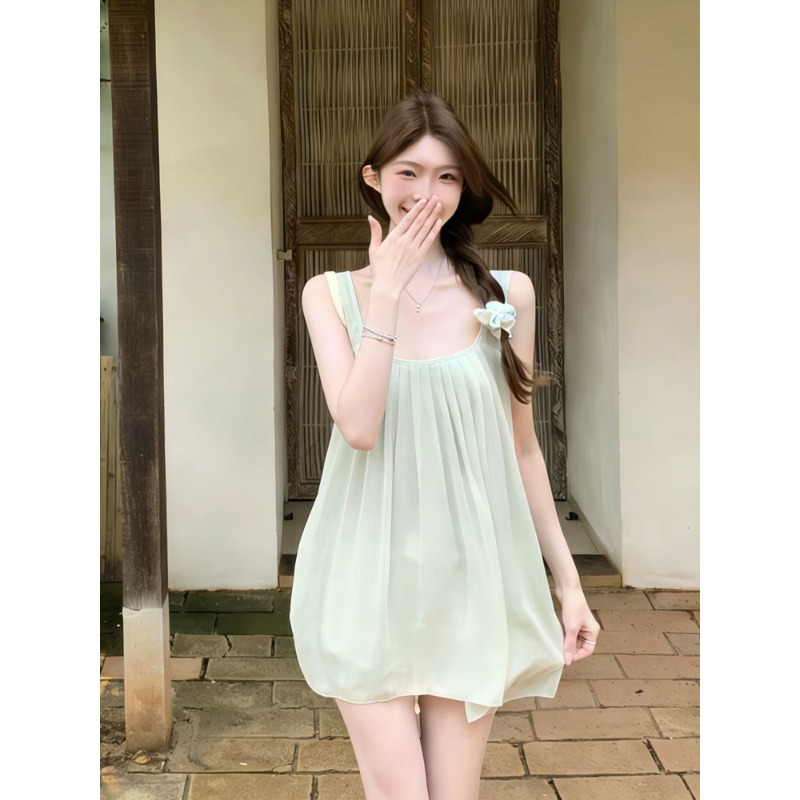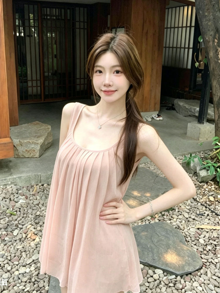 작은 키 해변가 휴가 슬립 여성 드레스 프랑스식 순수한 욕망 바람 달콤함 루즈핏 슬림해 보이는 민소매 조끼 미니 스커트