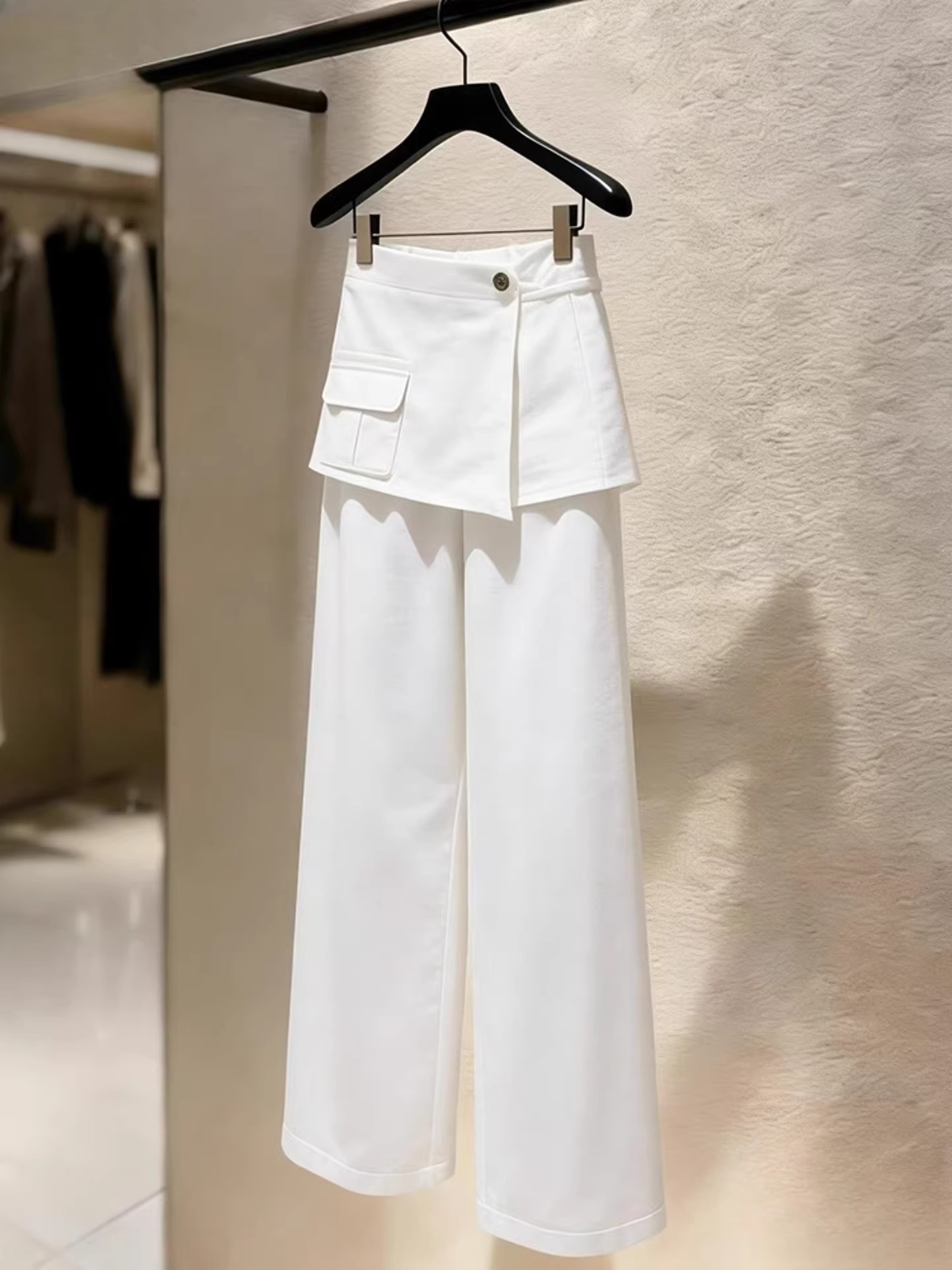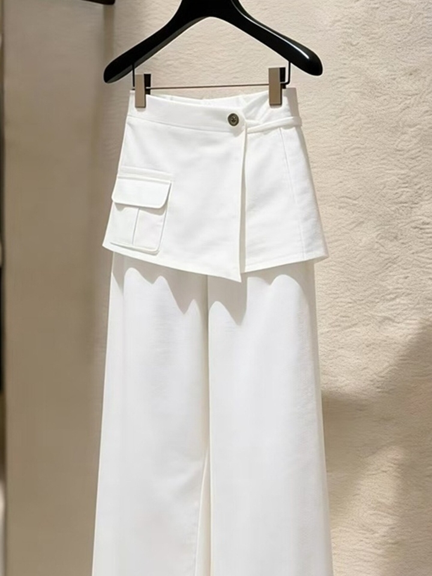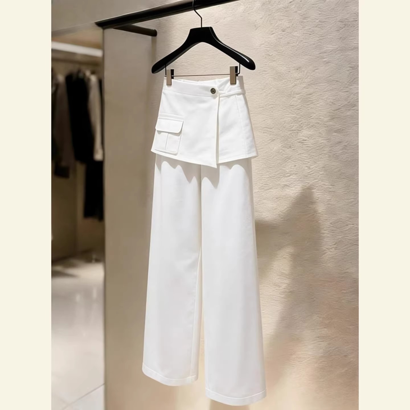 2026 새로운 배 모양 몸 스트레이트 팬츠 패션 외국 가스 빛 럭셔리 고급 센스 화이트 방귀 커튼 캐주얼 바지 여성 봄