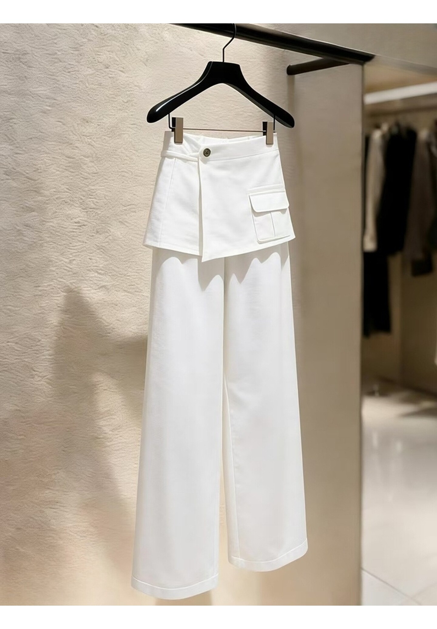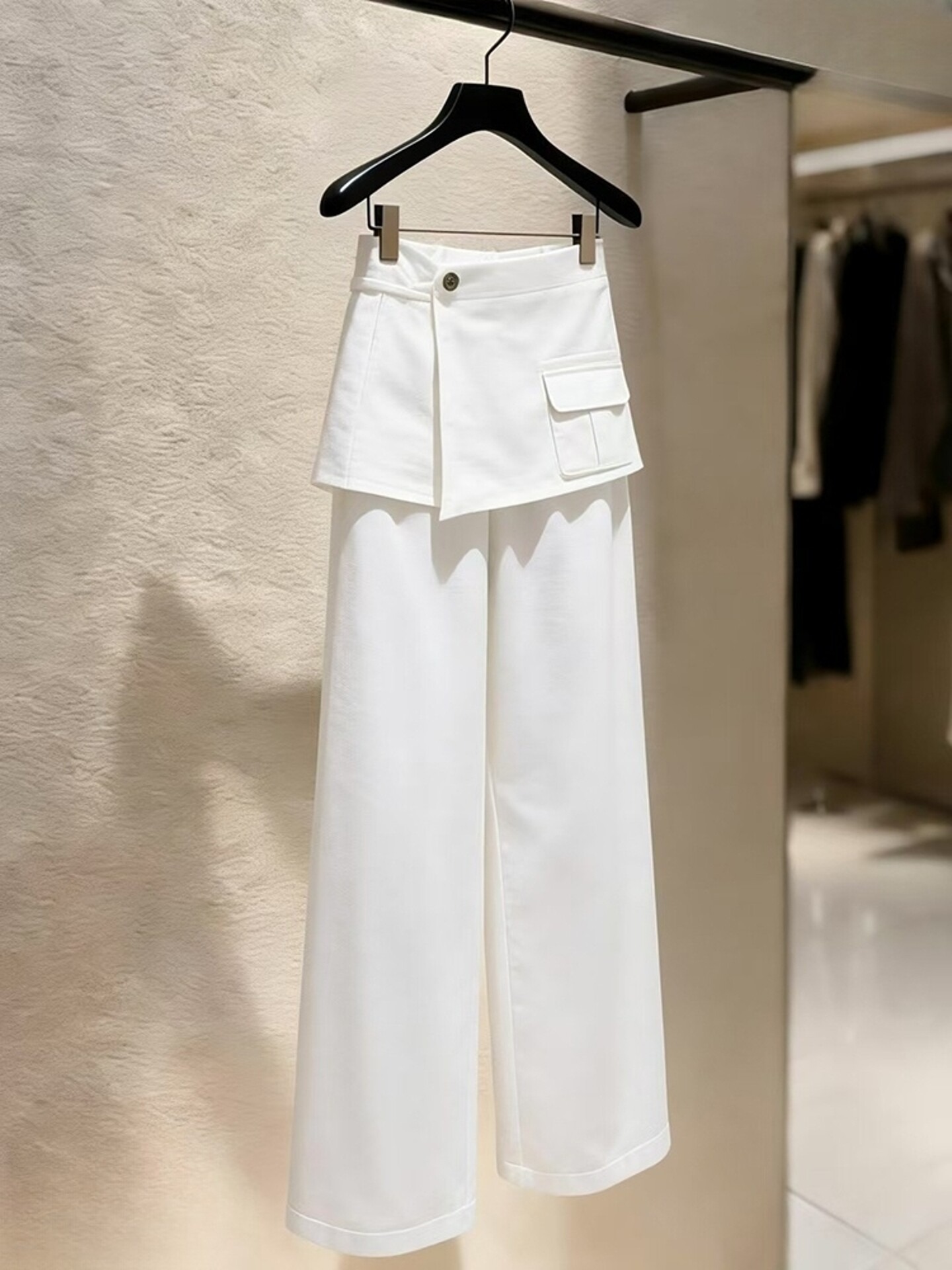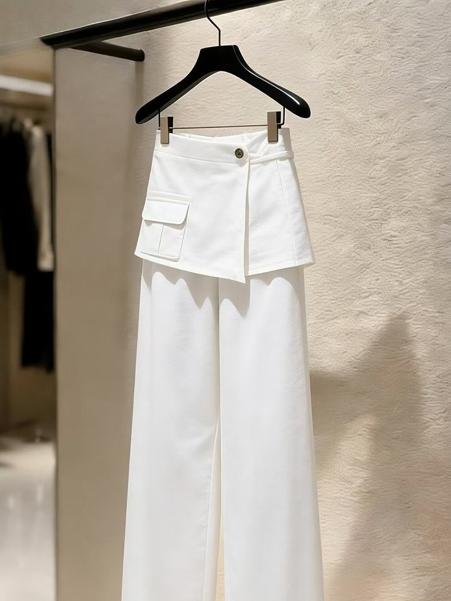 2026 새로운 배 모양 몸 스트레이트 팬츠 패션 외국 가스 빛 럭셔리 고급 센스 화이트 방귀 커튼 캐주얼 바지 여성 봄